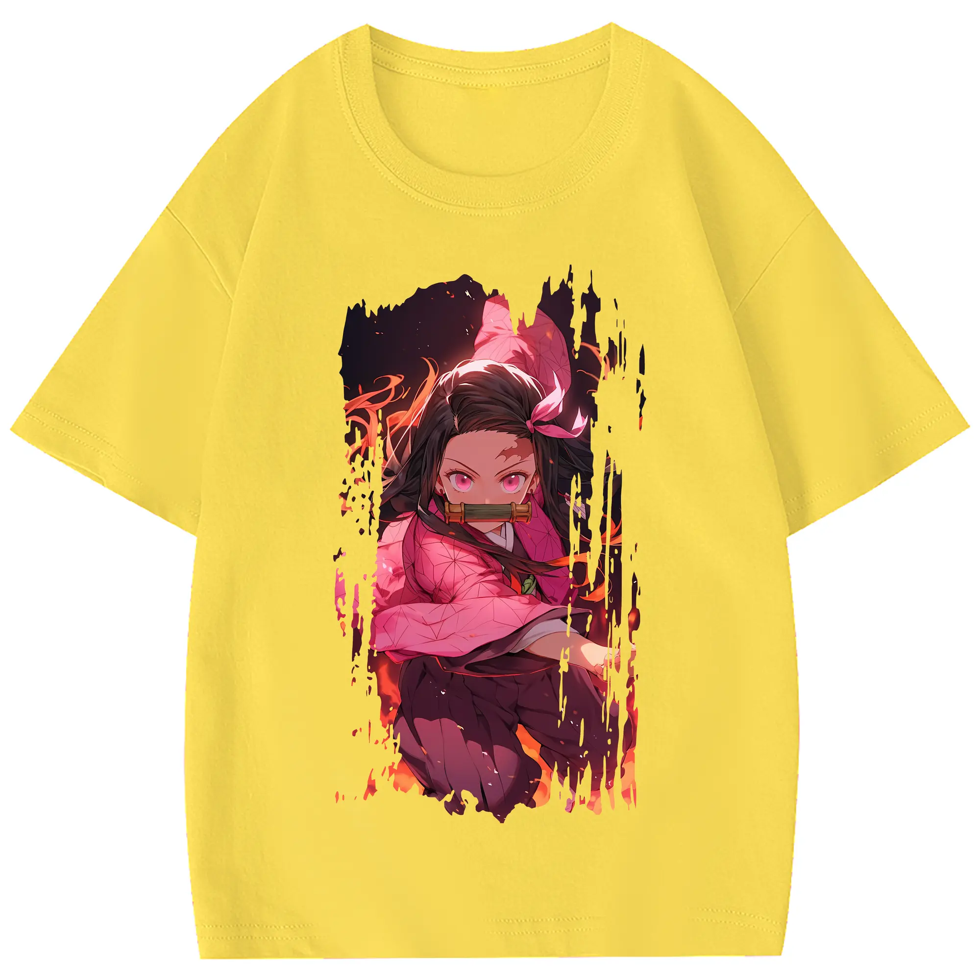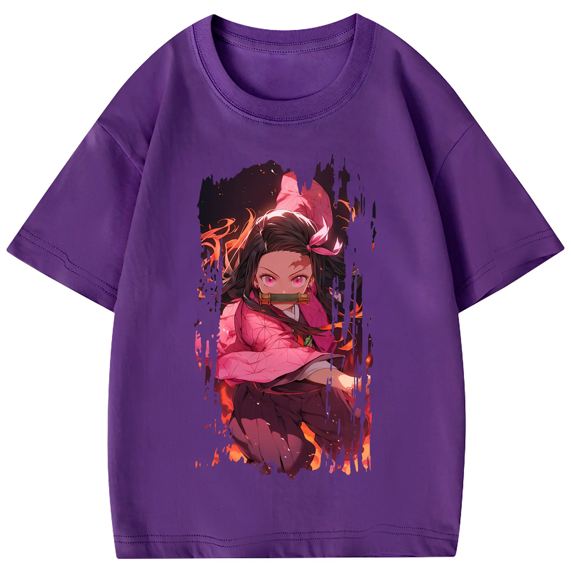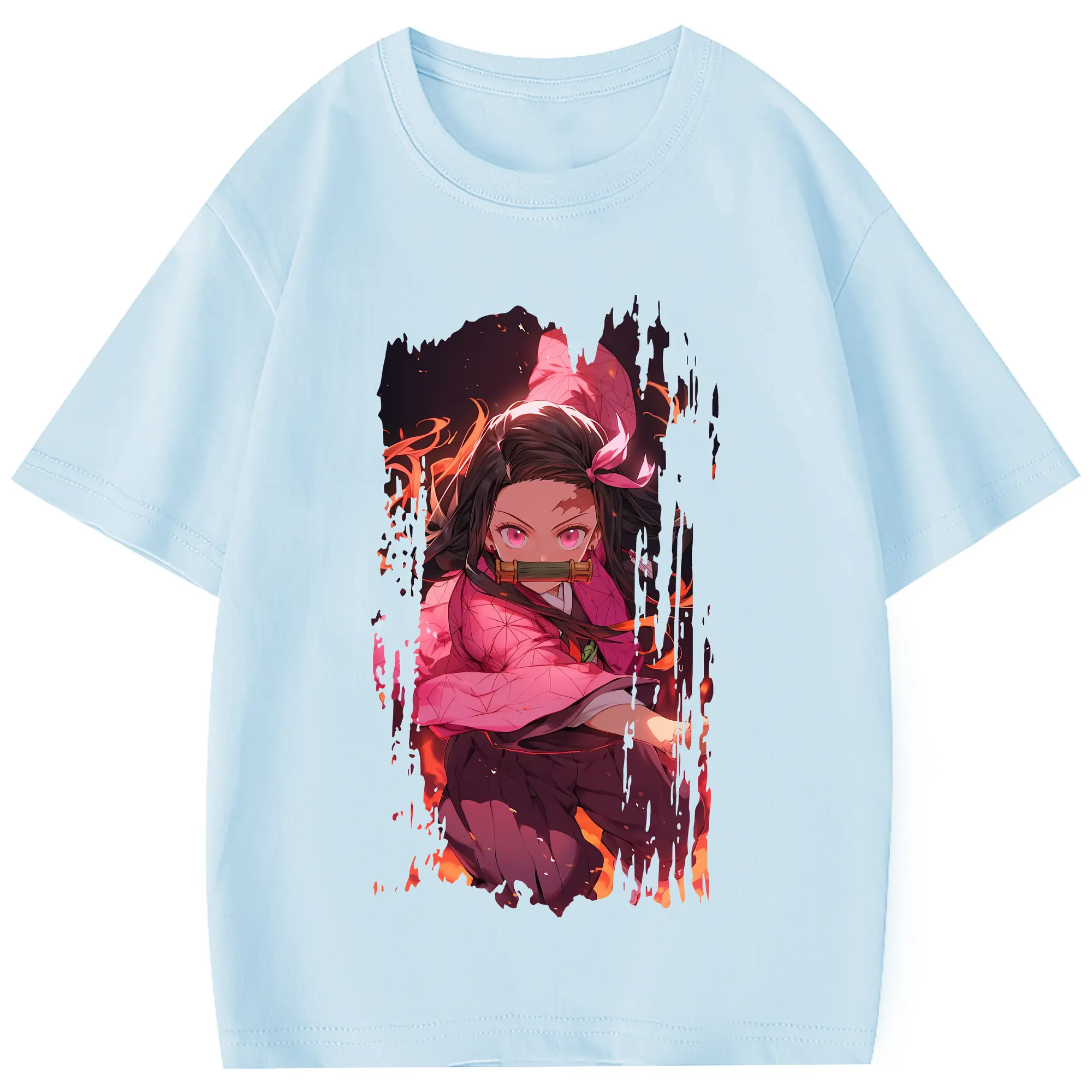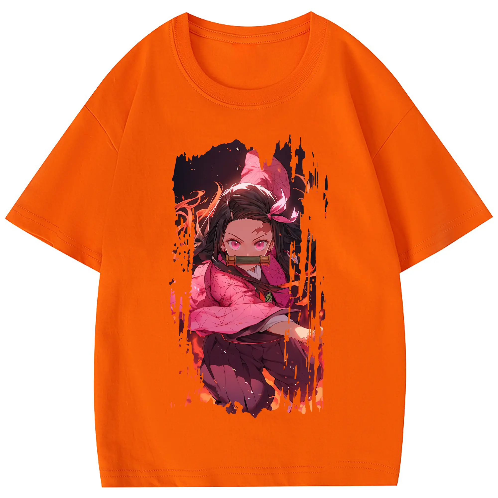 鬼滅の刃 グッズ,竈門 禰豆子 - 綿100% 半袖Tシャツ ・ フロントプリント ・ 快適 通気性 ・ 日常使い 散歩 スポーツ用