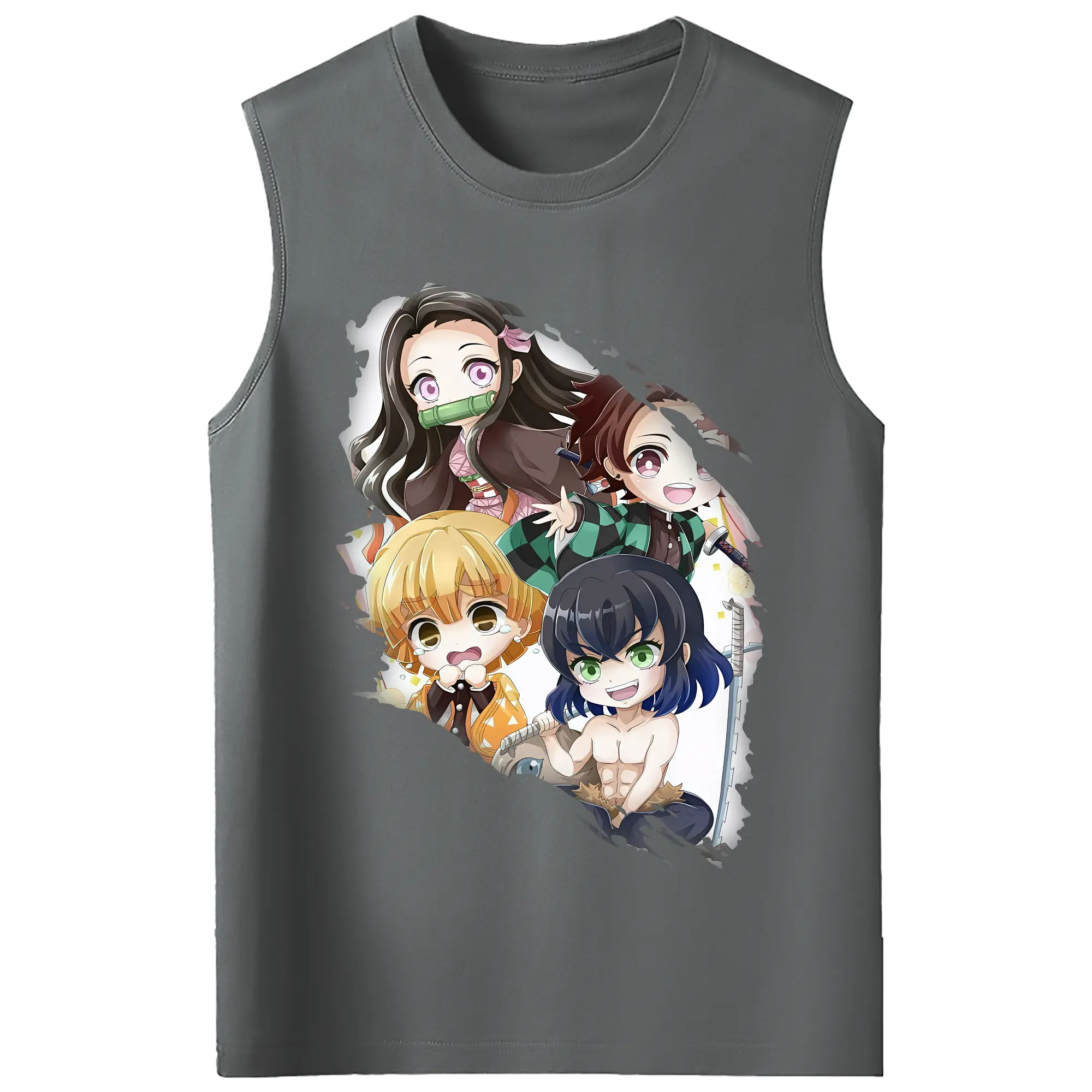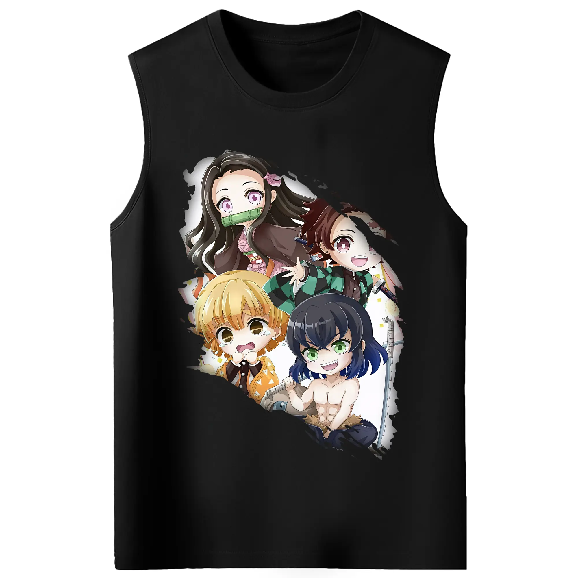 鬼滅の刃 グッズ,竈門 禰豆子 - コットン100% タンクトップ ・ フロントプリント ・ タイトフィット ・ 快適 通気性 ・ スポーツ カジュアル 散歩用