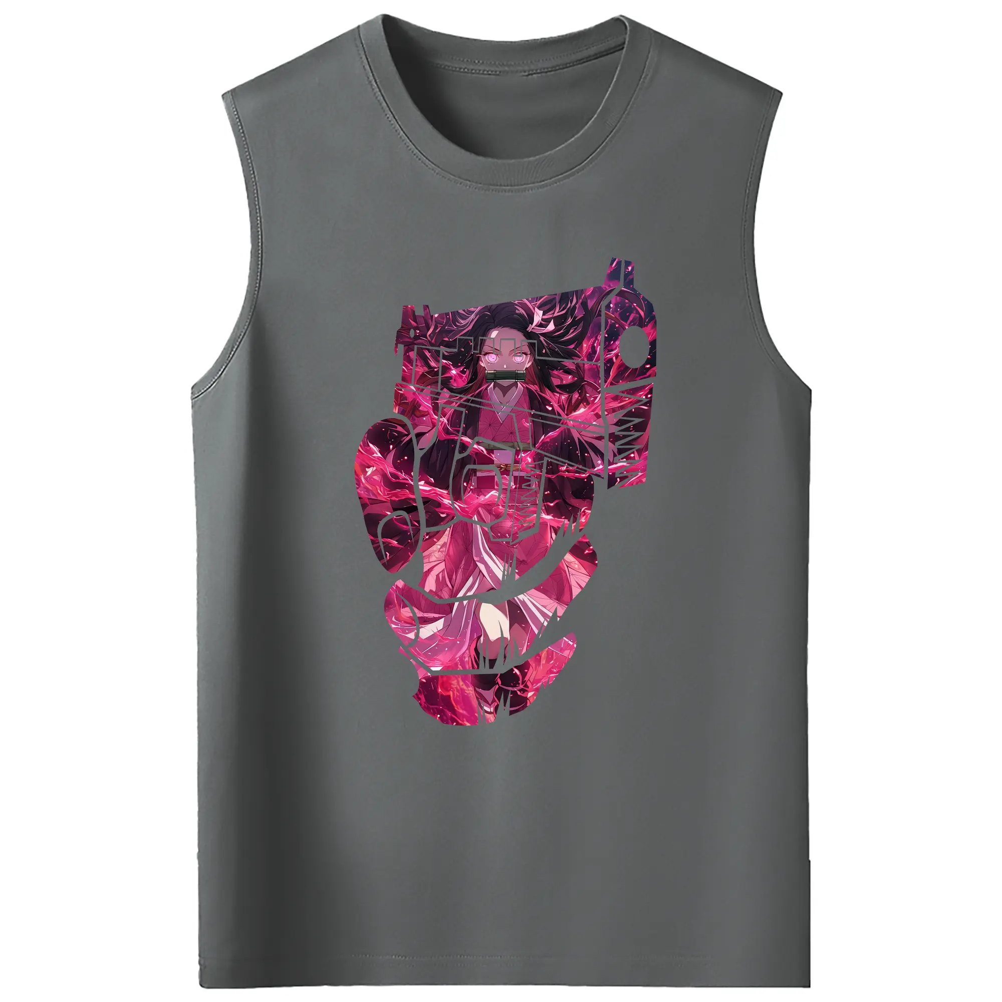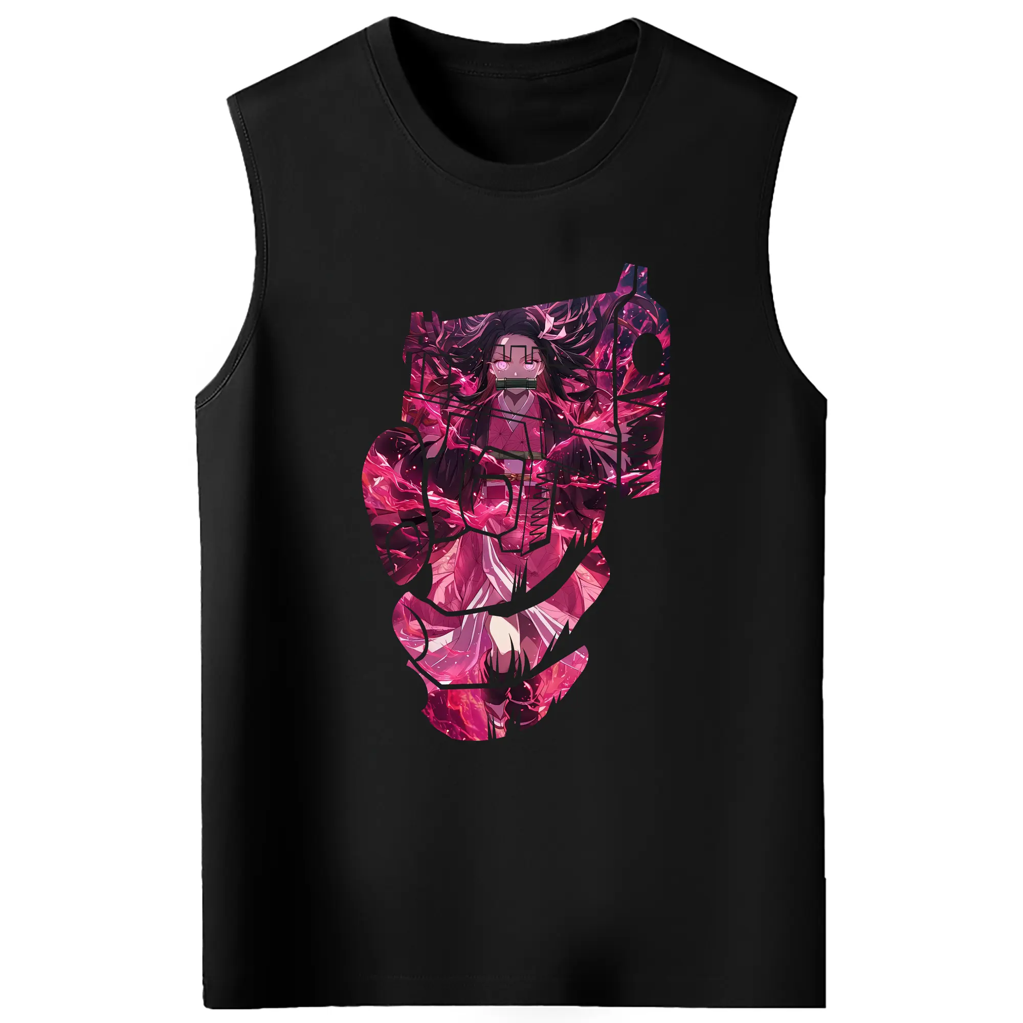 鬼滅の刃 グッズ,竈門 禰豆子 - コットン100% タンクトップ ・ フロントプリント ・ タイトフィット ・ 快適 通気性 ・ スポーツ カジュアル 散歩用