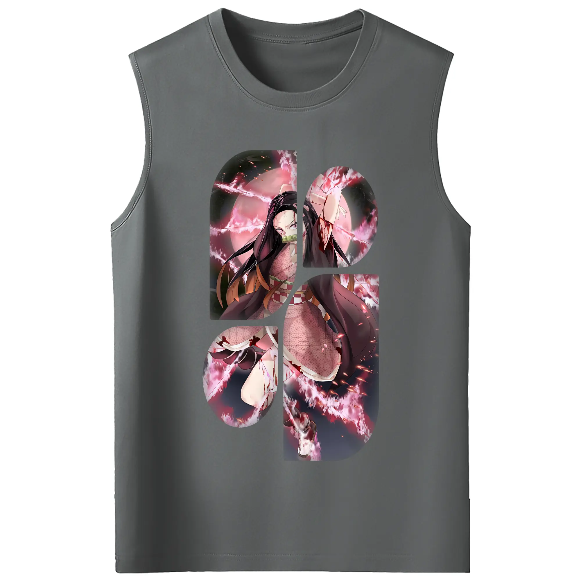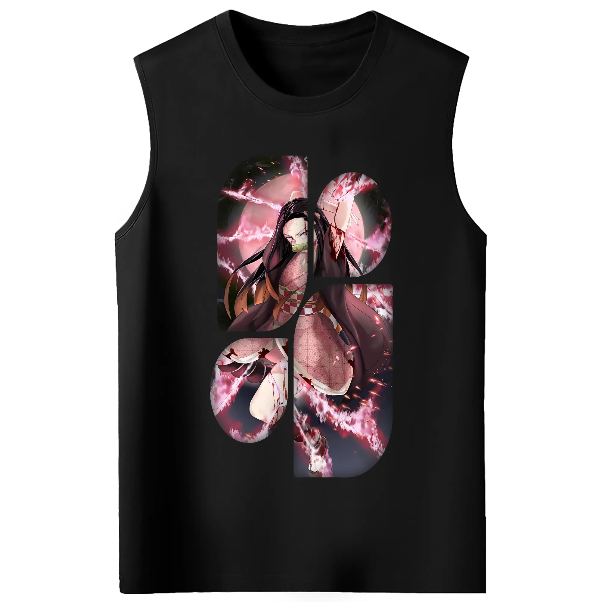鬼滅の刃 グッズ,竈門 禰豆子 - コットン100% タンクトップ ・ フロントプリント ・ タイトフィット ・ 快適 通気性 ・ スポーツ カジュアル 散歩用