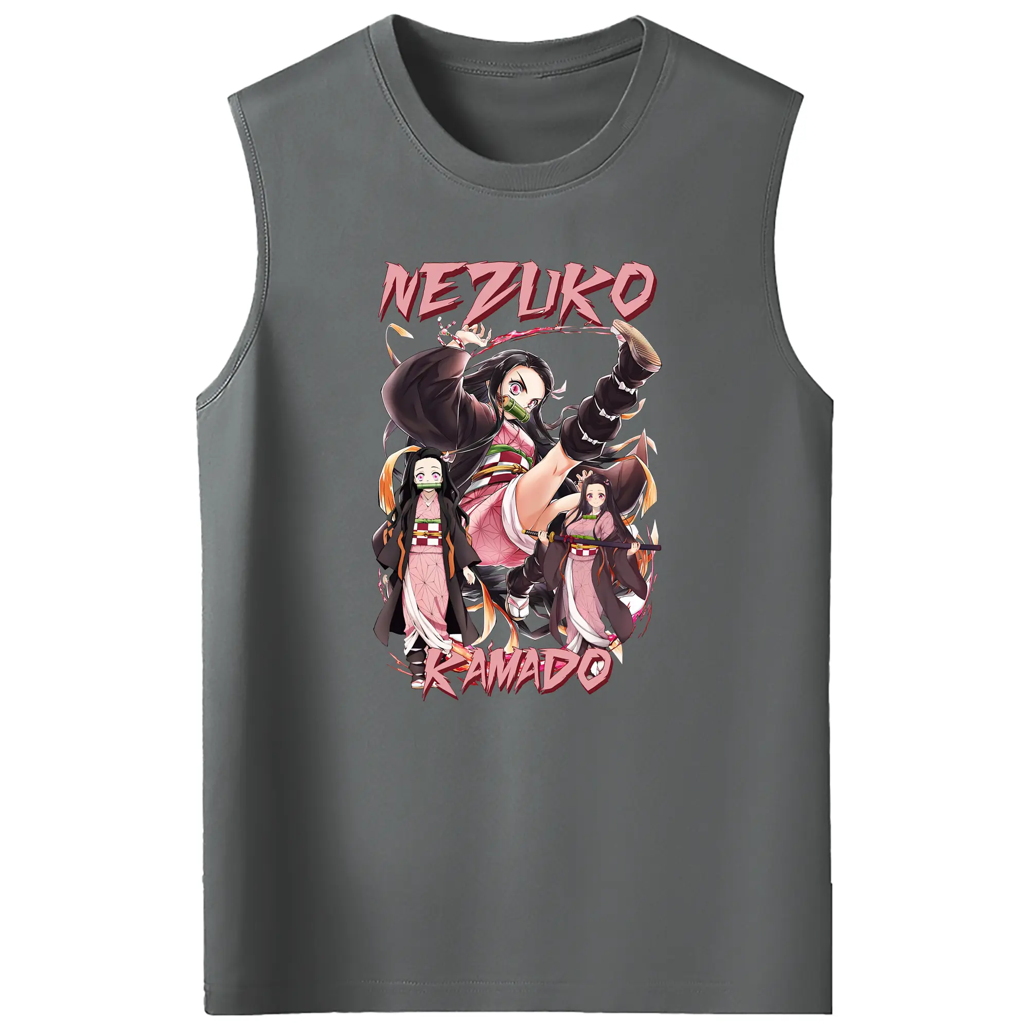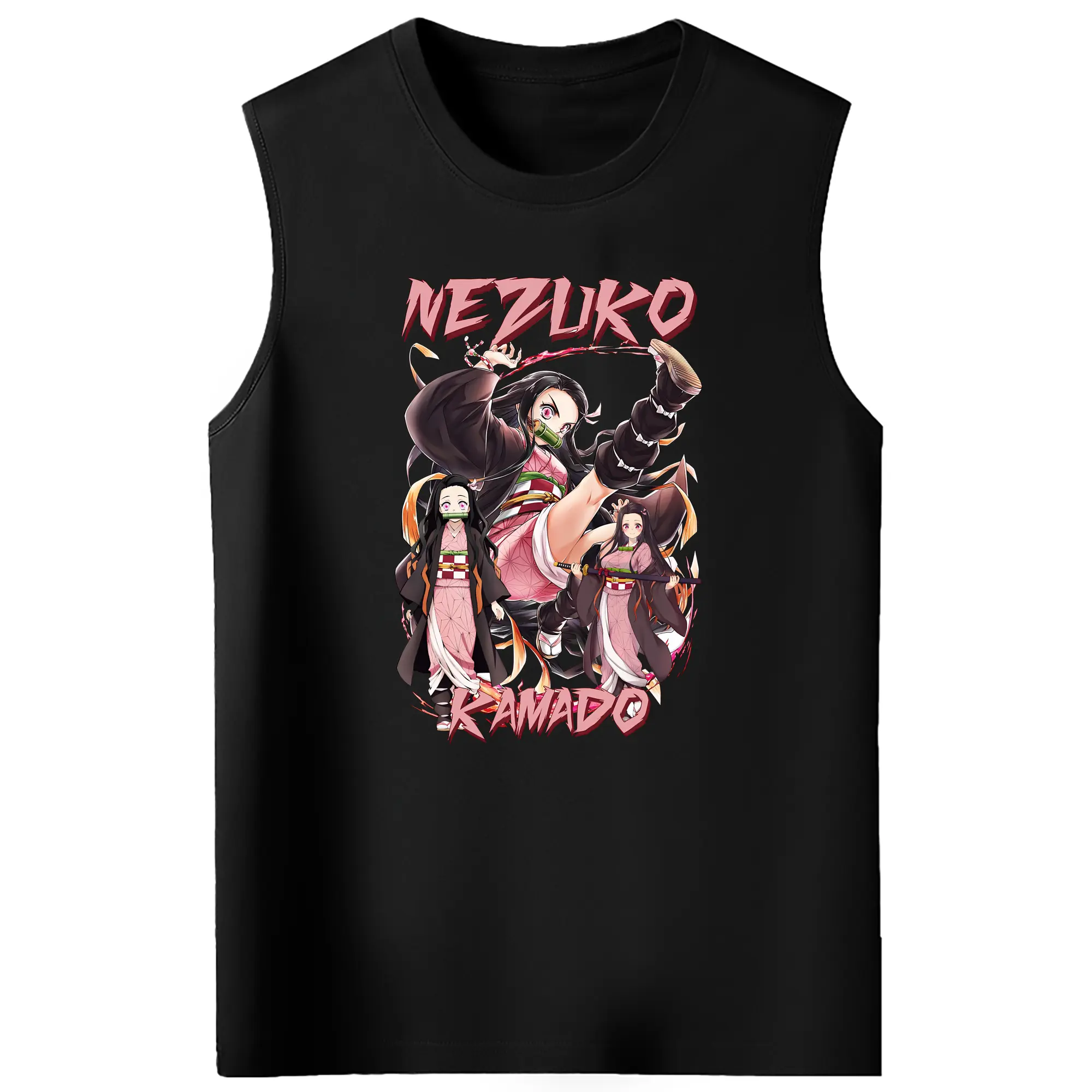 鬼滅の刃 グッズ,竈門 禰豆子 - コットン100% タンクトップ ・ フロントプリント ・ タイトフィット ・ 快適 通気性 ・ スポーツ カジュアル 散歩用