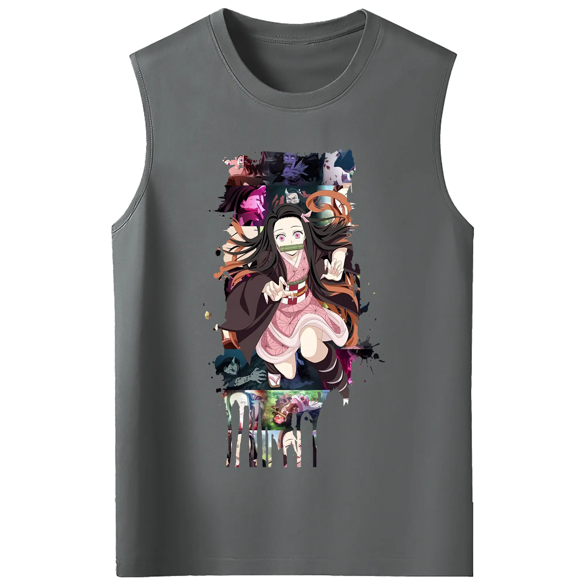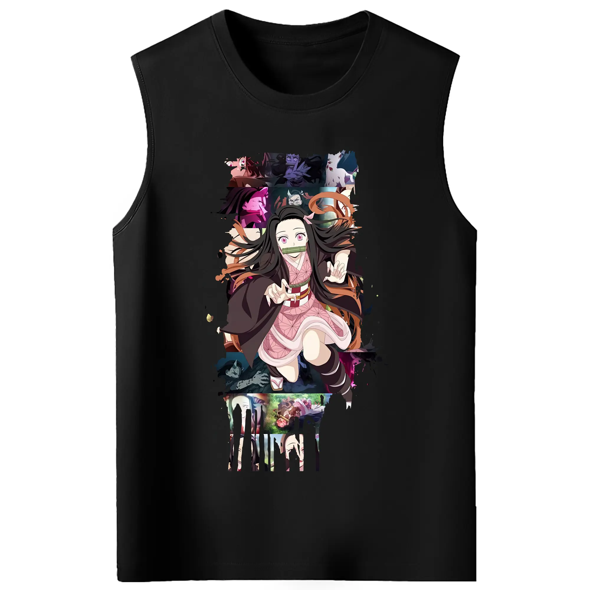 鬼滅の刃 グッズ,竈門 禰豆子 - コットン100% タンクトップ ・ フロントプリント ・ タイトフィット ・ 快適 通気性 ・ スポーツ カジュアル 散歩用