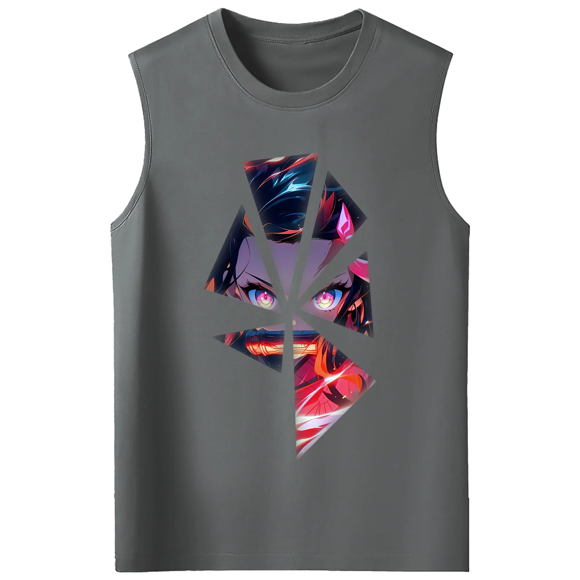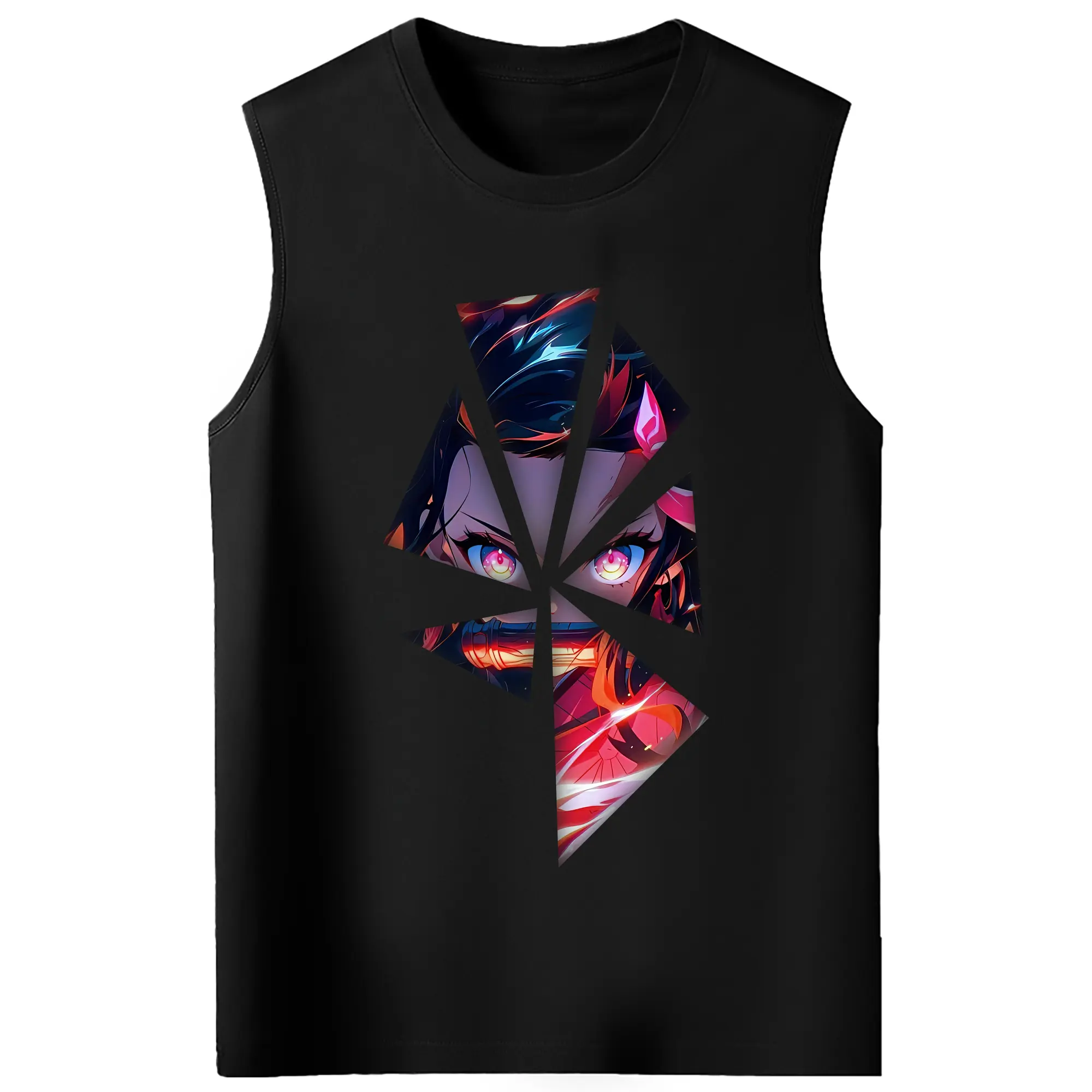 鬼滅の刃 グッズ,竈門 禰豆子 - コットン100% タンクトップ ・ フロントプリント ・ タイトフィット ・ 快適 通気性 ・ スポーツ カジュアル 散歩用