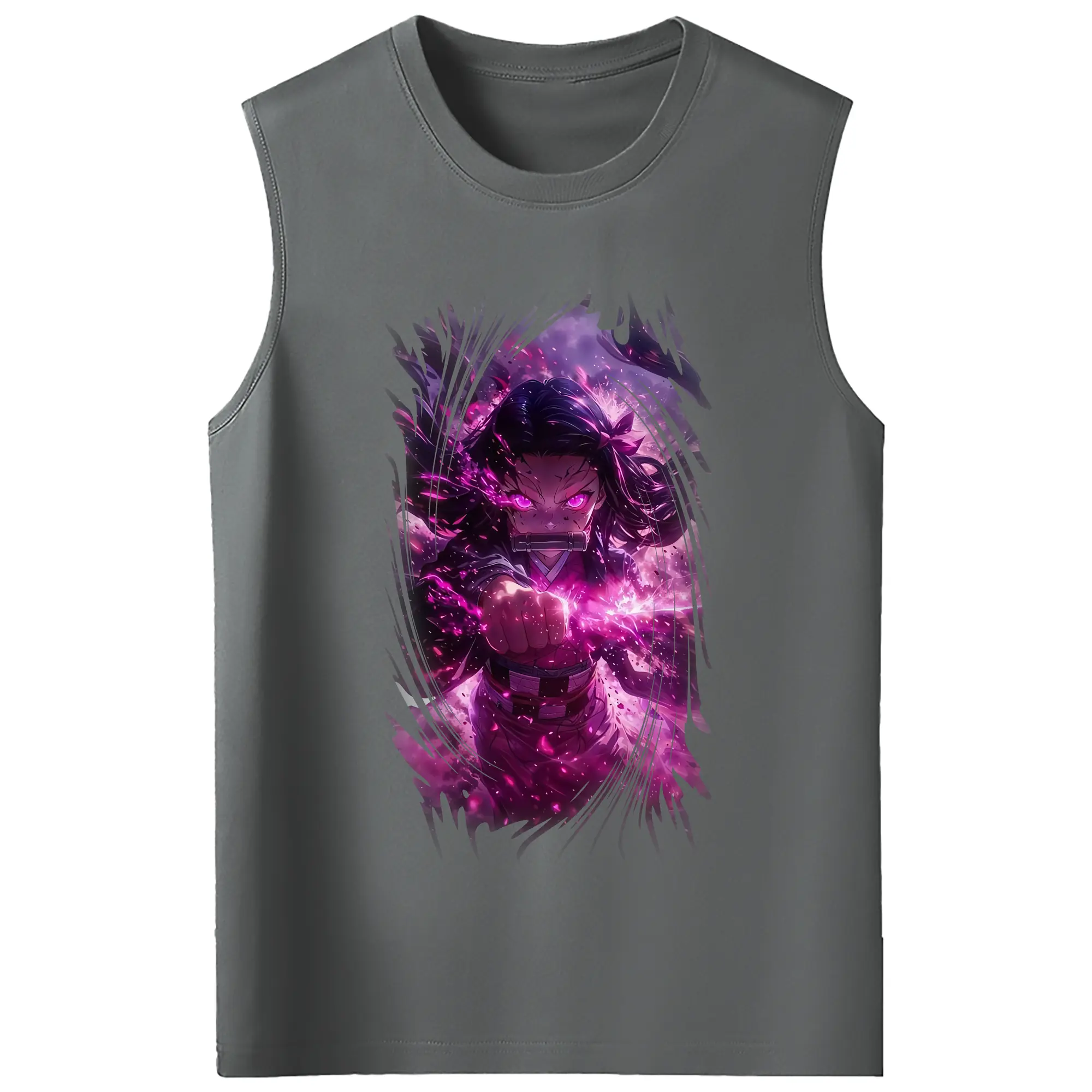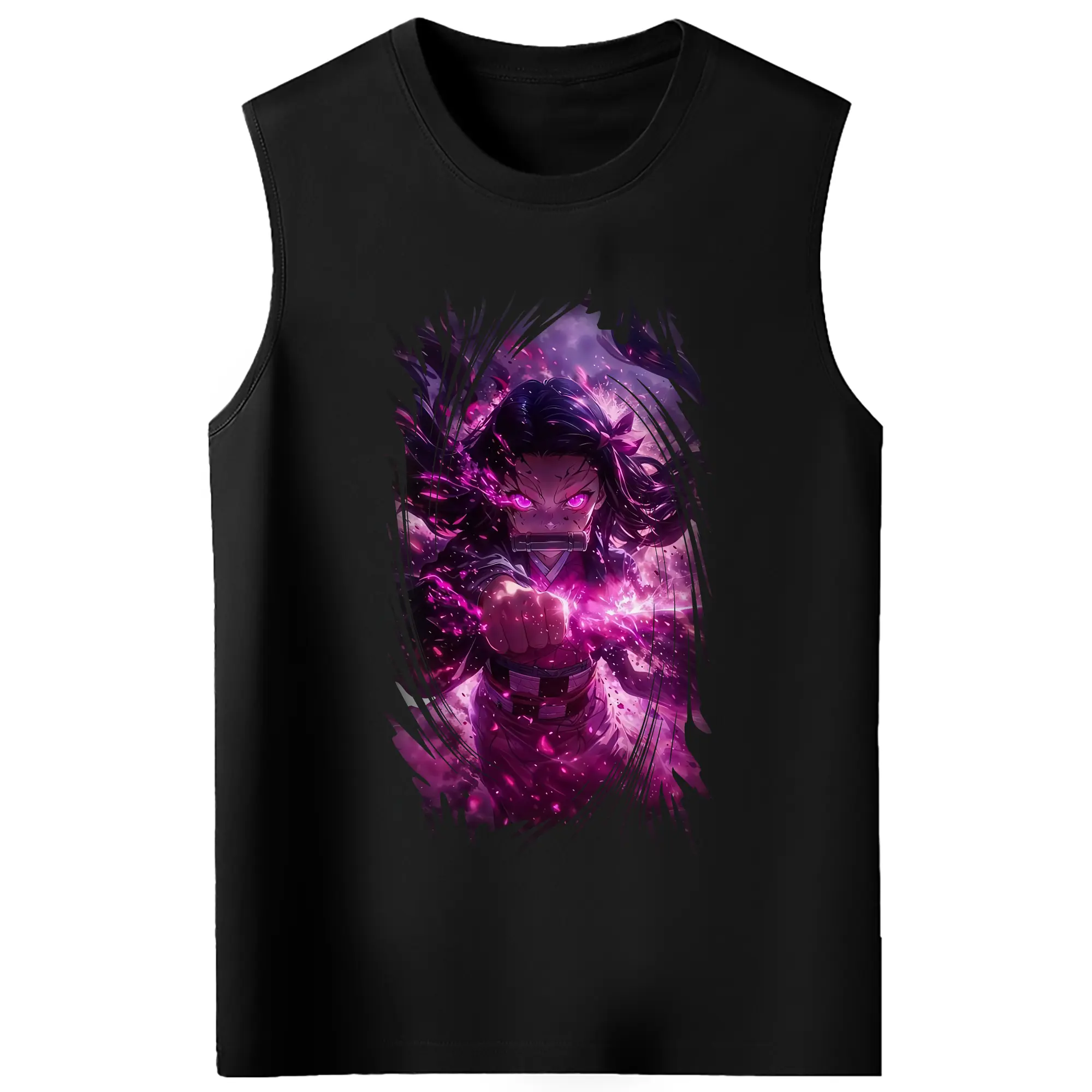 鬼滅の刃 グッズ,竈門 禰豆子 - コットン100% タンクトップ ・ フロントプリント ・ タイトフィット ・ 快適 通気性 ・ スポーツ カジュアル 散歩用