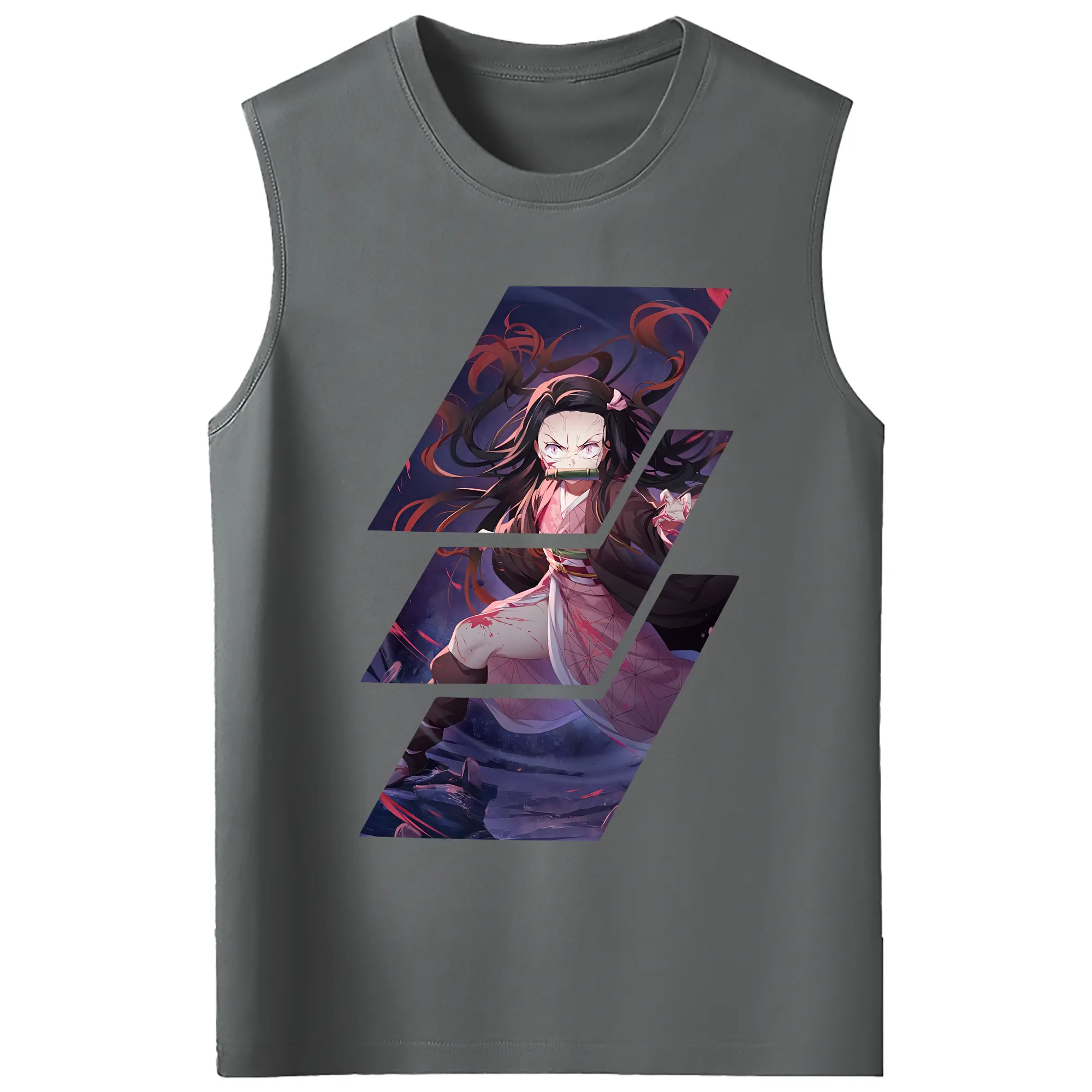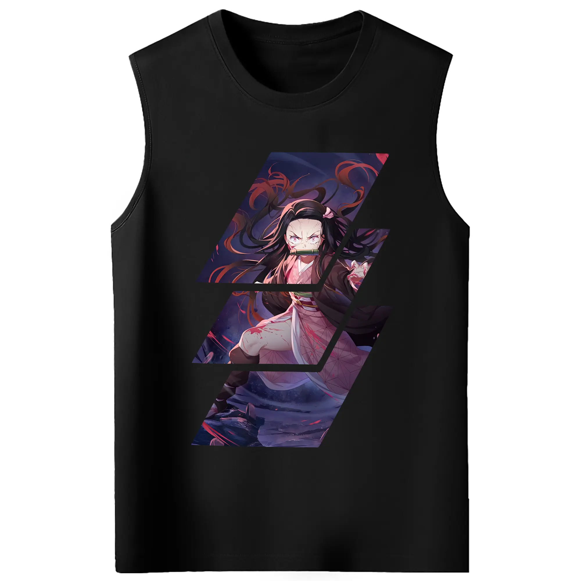 鬼滅の刃 グッズ,竈門 禰豆子 - コットン100% タンクトップ ・ フロントプリント ・ タイトフィット ・ 快適 通気性 ・ スポーツ カジュアル 散歩用