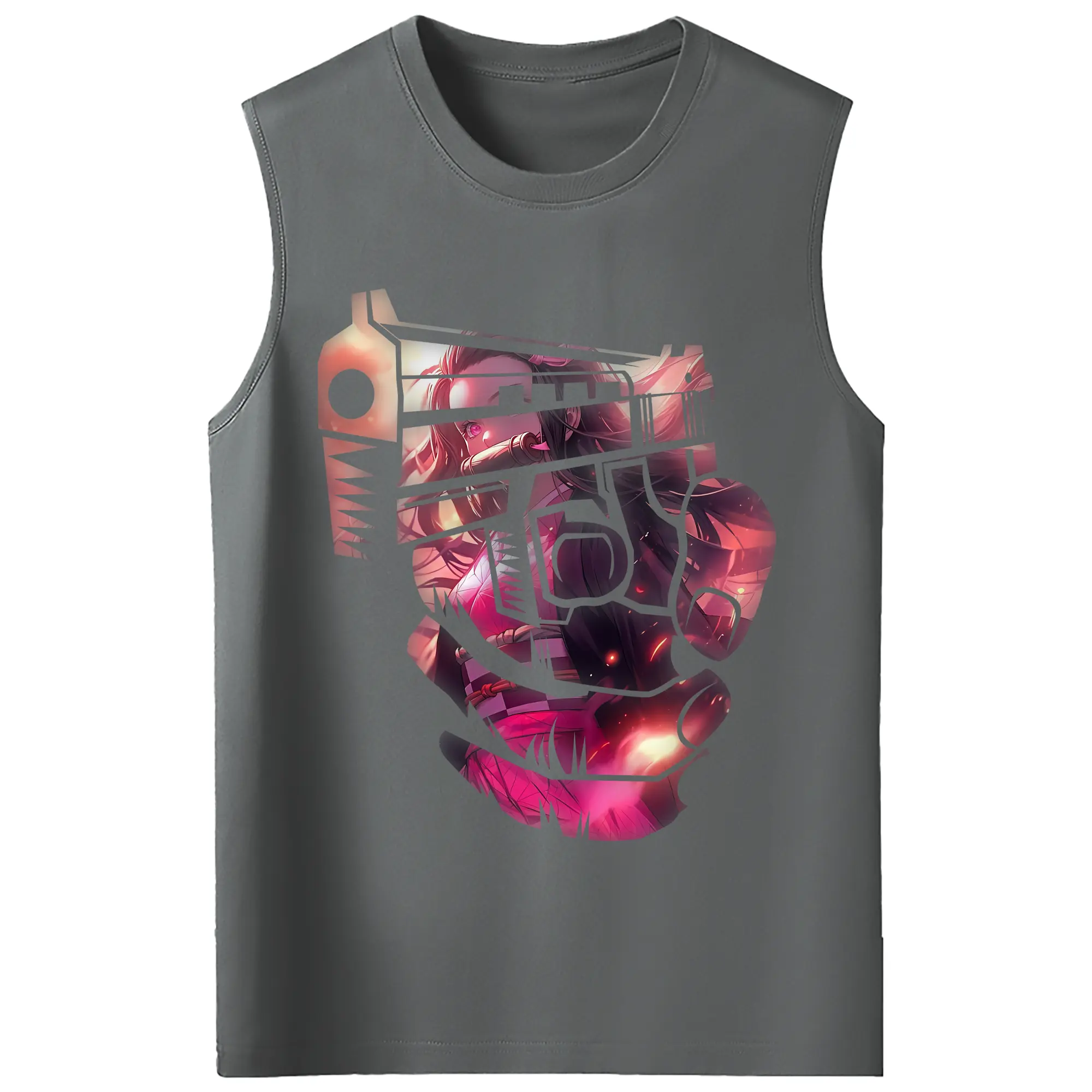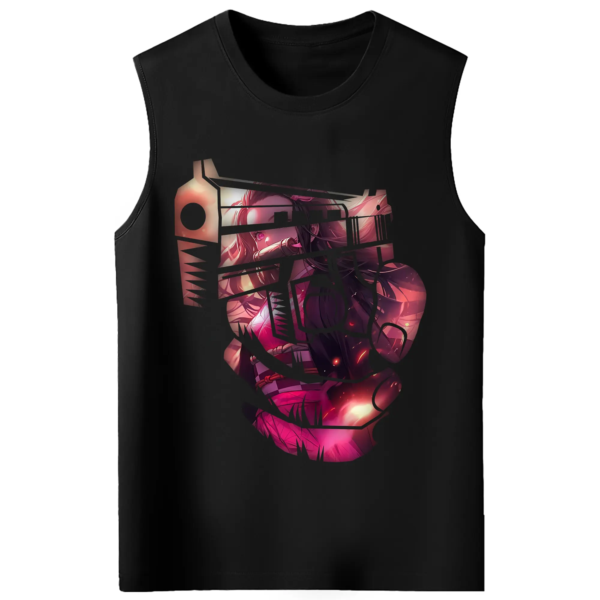 鬼滅の刃 グッズ,竈門 禰豆子 - コットン100% タンクトップ ・ フロントプリント ・ タイトフィット ・ 快適 通気性 ・ スポーツ カジュアル 散歩用