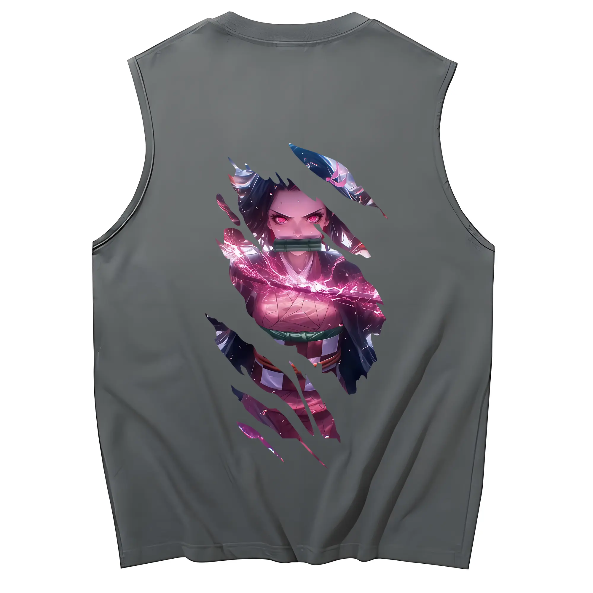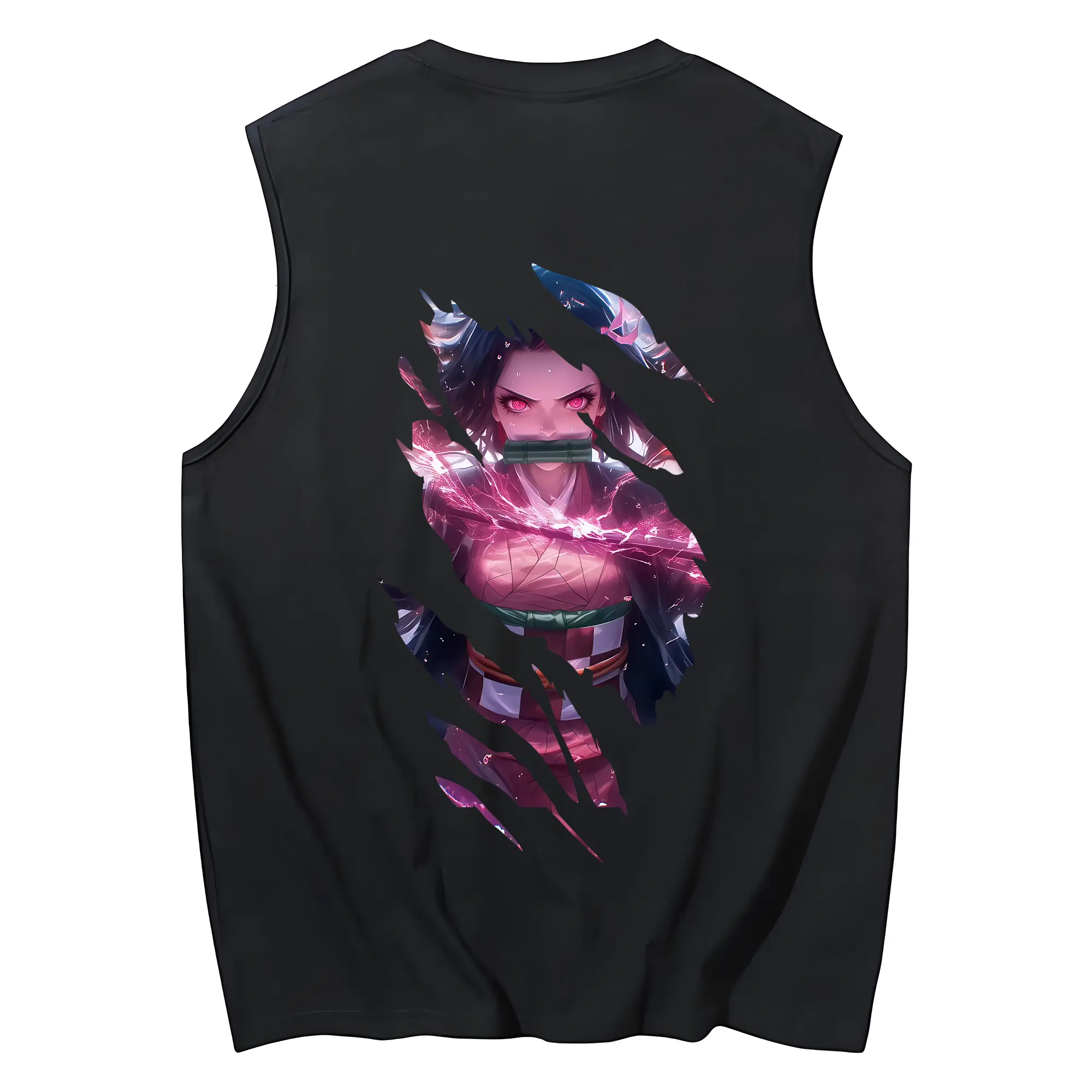 鬼滅の刃 グッズ,竈門 禰豆子 - コットン100% タンクトップ ・ 背面プリント ・ タイトシルエット ・ 快適 通気性 ・ スポーツ カジュアル 散歩用