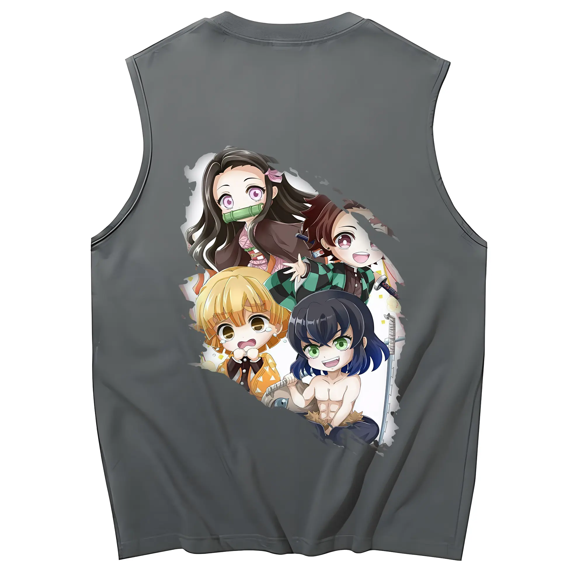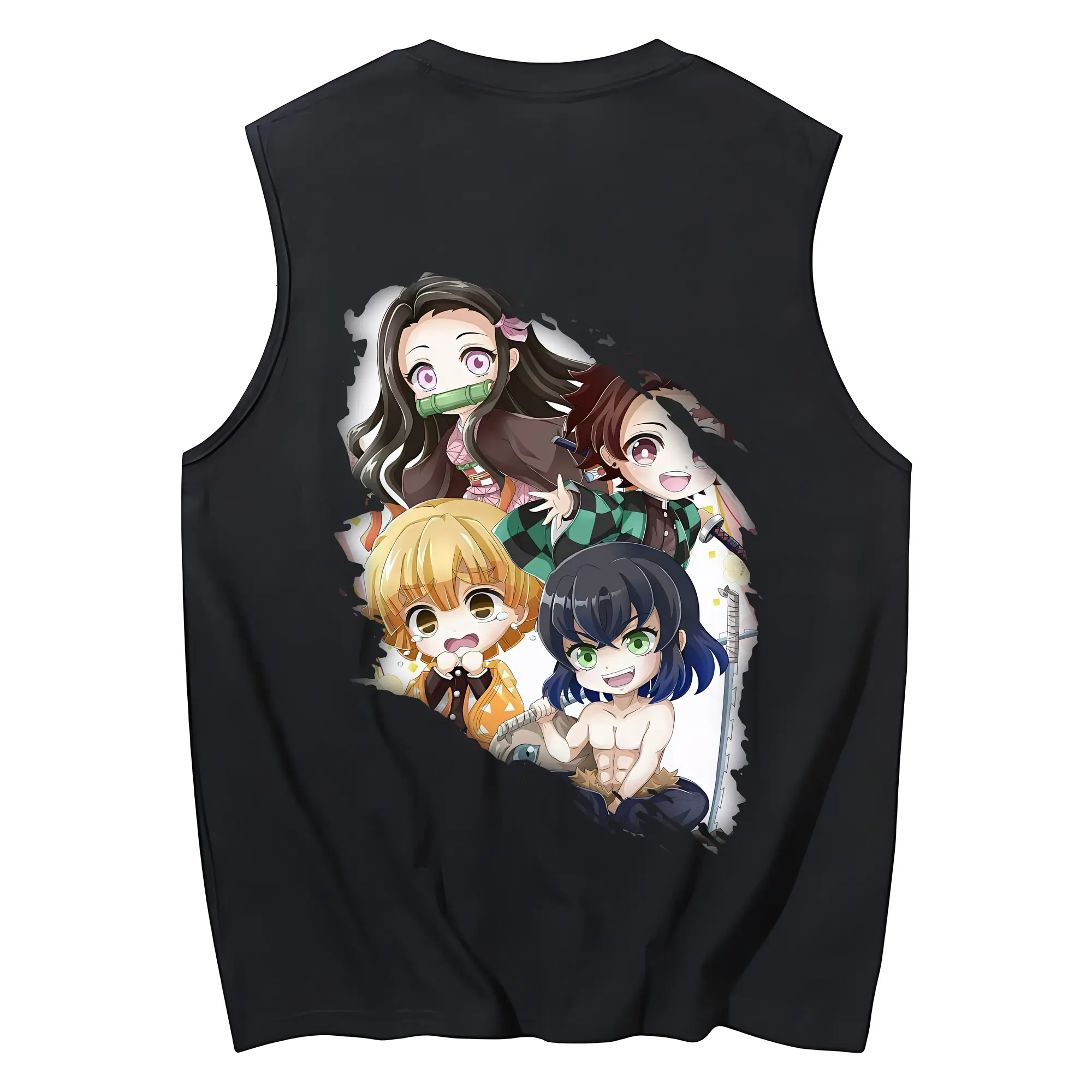 鬼滅の刃 グッズ,竈門 禰豆子 - コットン100% タンクトップ ・ 背面プリント ・ タイトシルエット ・ 快適 通気性 ・ スポーツ カジュアル 散歩用