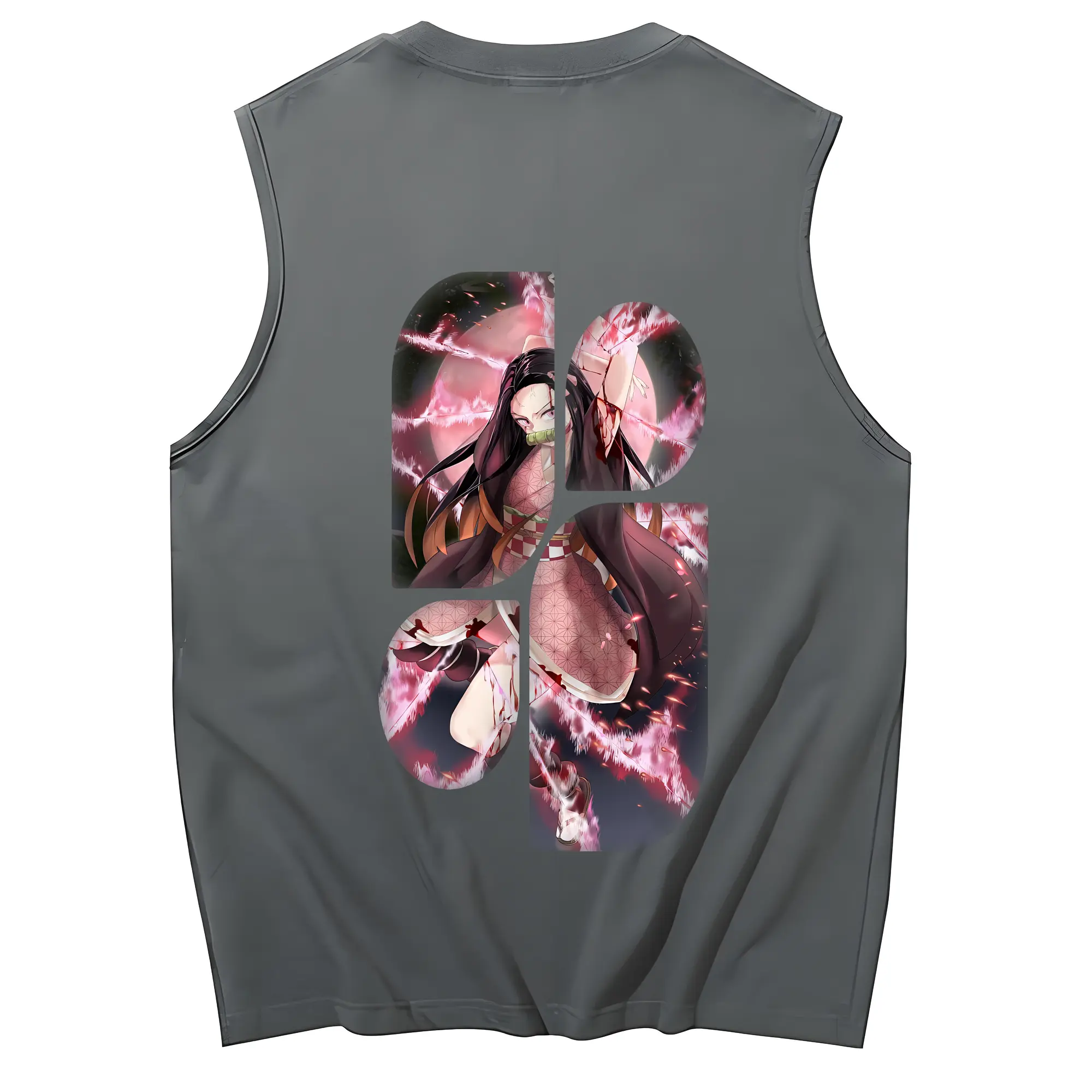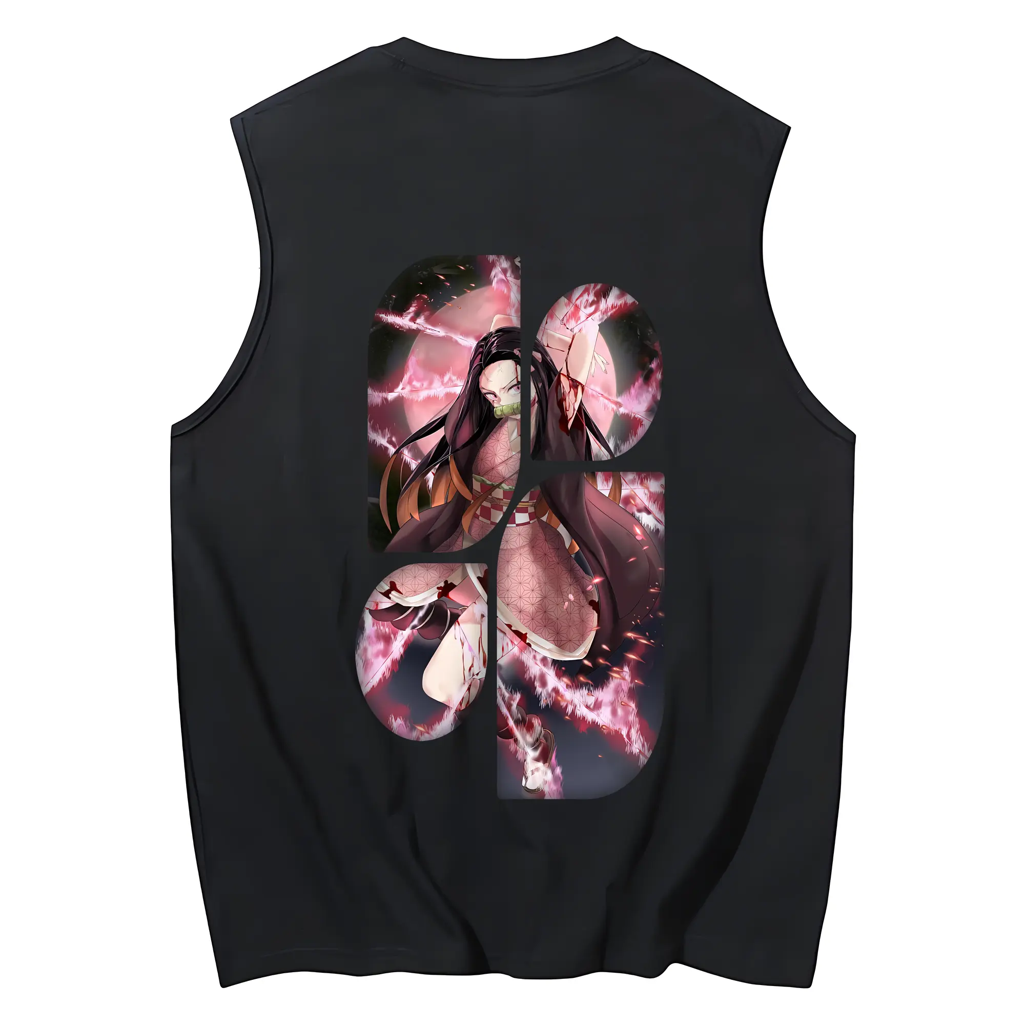 鬼滅の刃 グッズ,竈門 禰豆子 - コットン100% タンクトップ ・ 背面プリント ・ タイトシルエット ・ 快適 通気性 ・ スポーツ カジュアル 散歩用