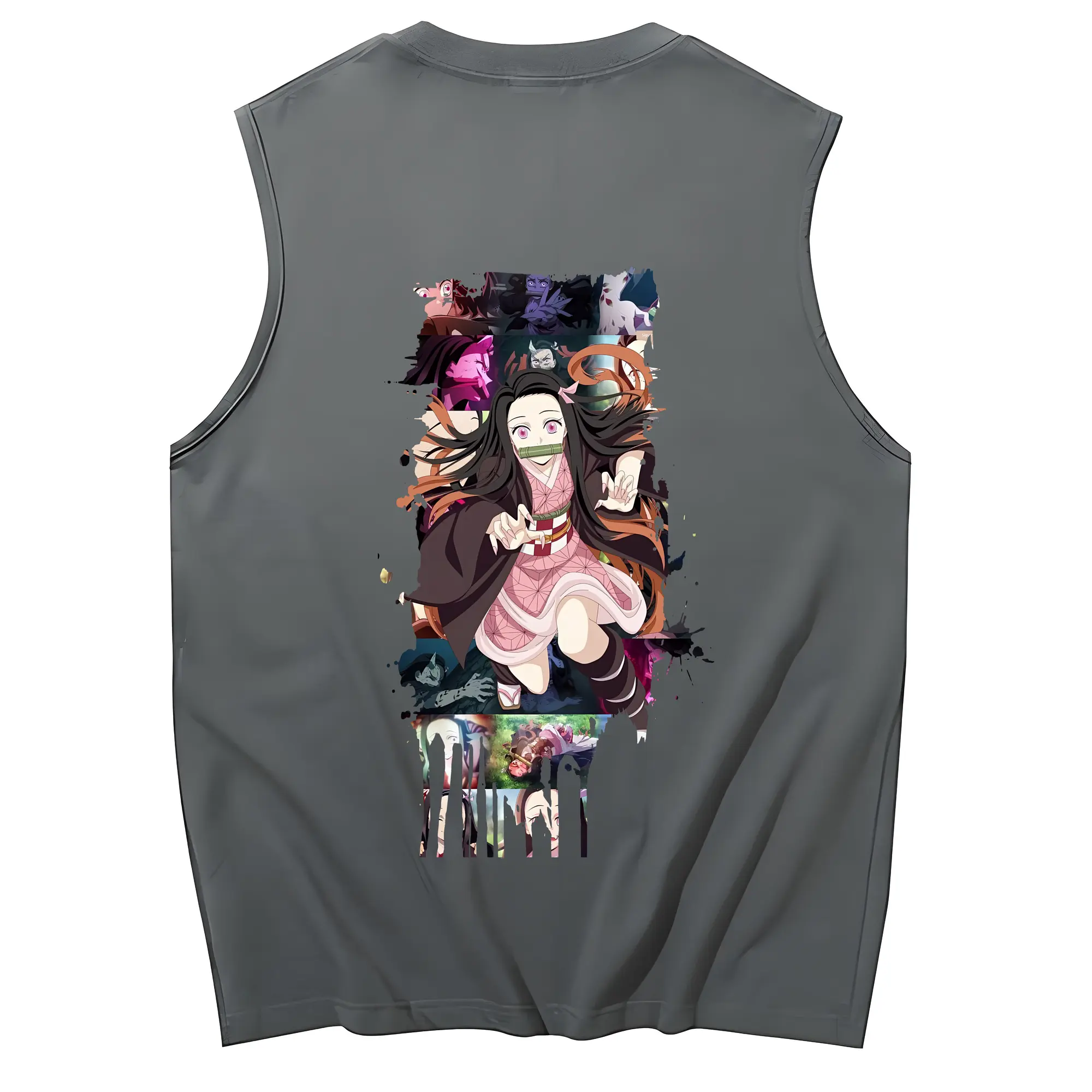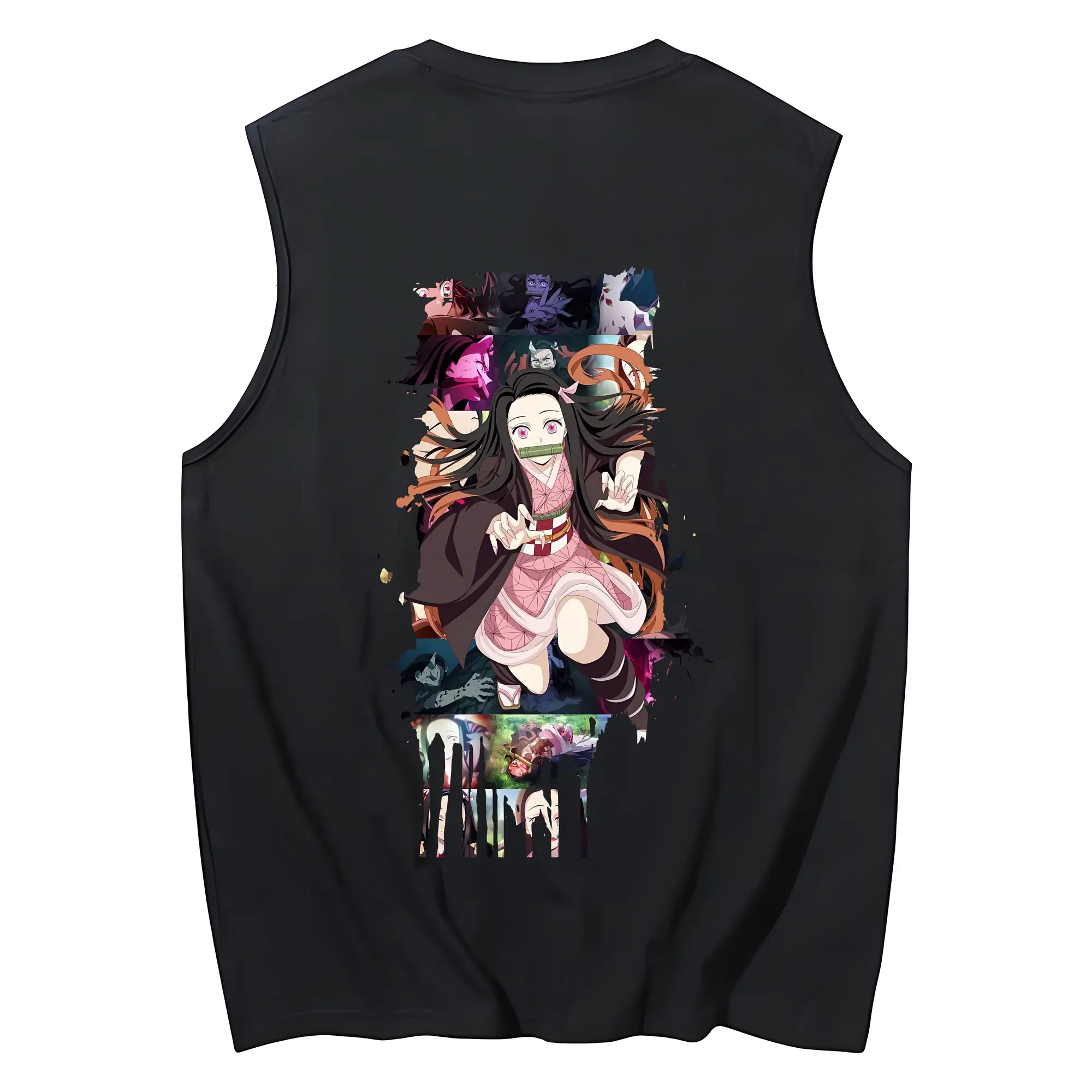 鬼滅の刃 グッズ,竈門 禰豆子 - コットン100% タンクトップ ・ 背面プリント ・ タイトシルエット ・ 快適 通気性 ・ スポーツ カジュアル 散歩用
