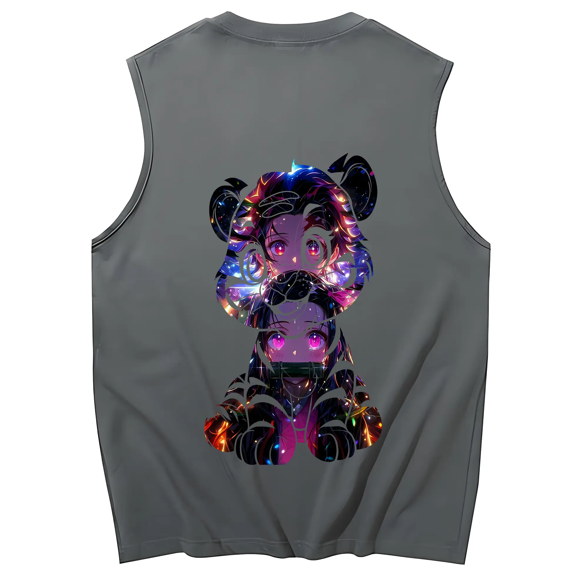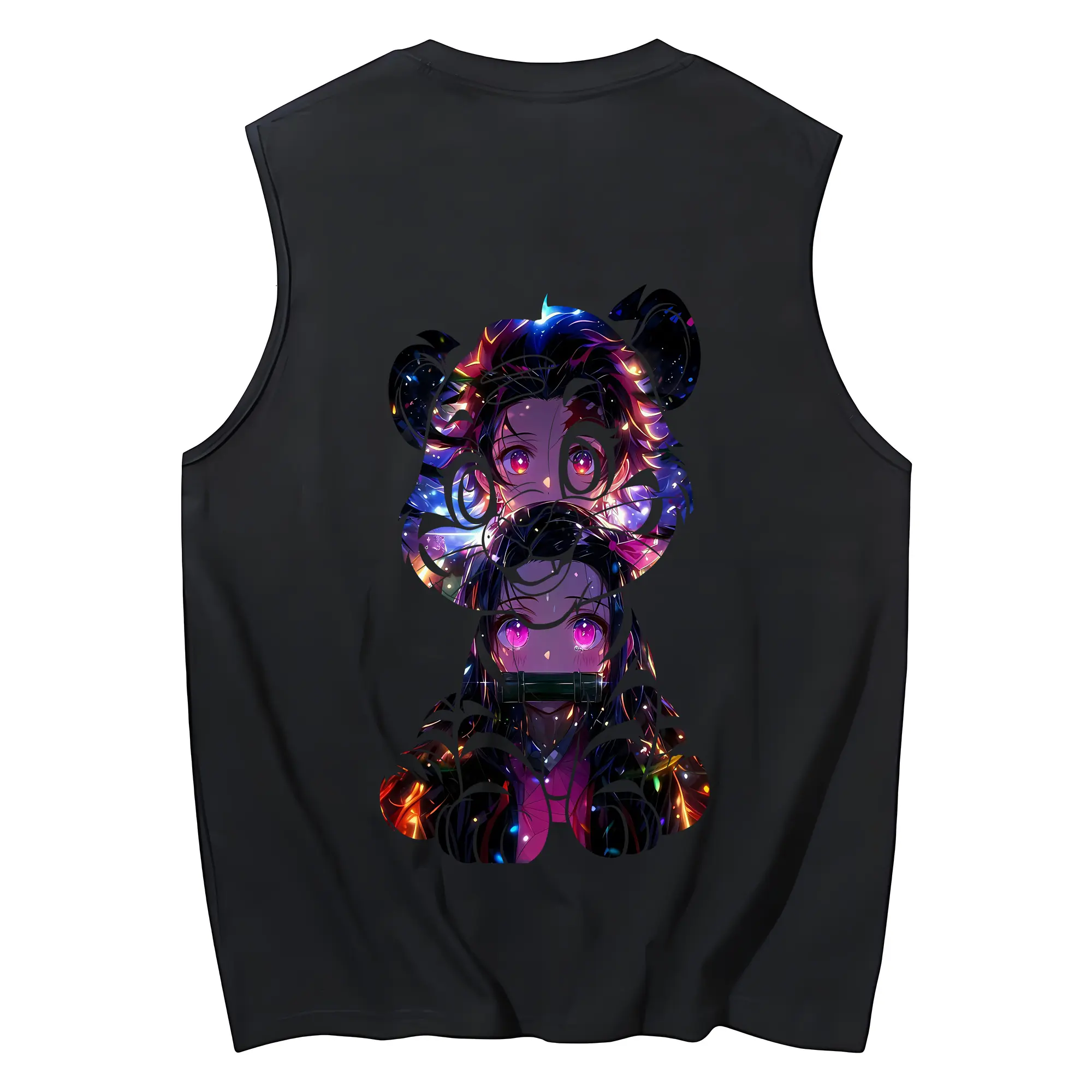 鬼滅の刃 グッズ,竈門 禰豆子 - コットン100% タンクトップ ・ 背面プリント ・ タイトシルエット ・ 快適 通気性 ・ スポーツ カジュアル 散歩用
