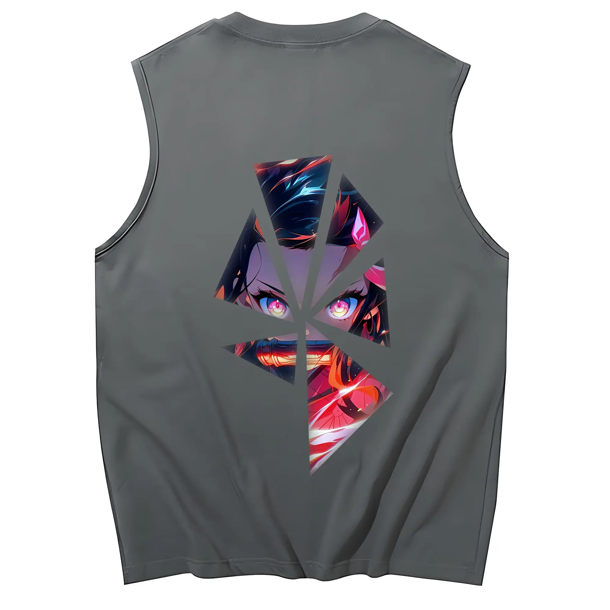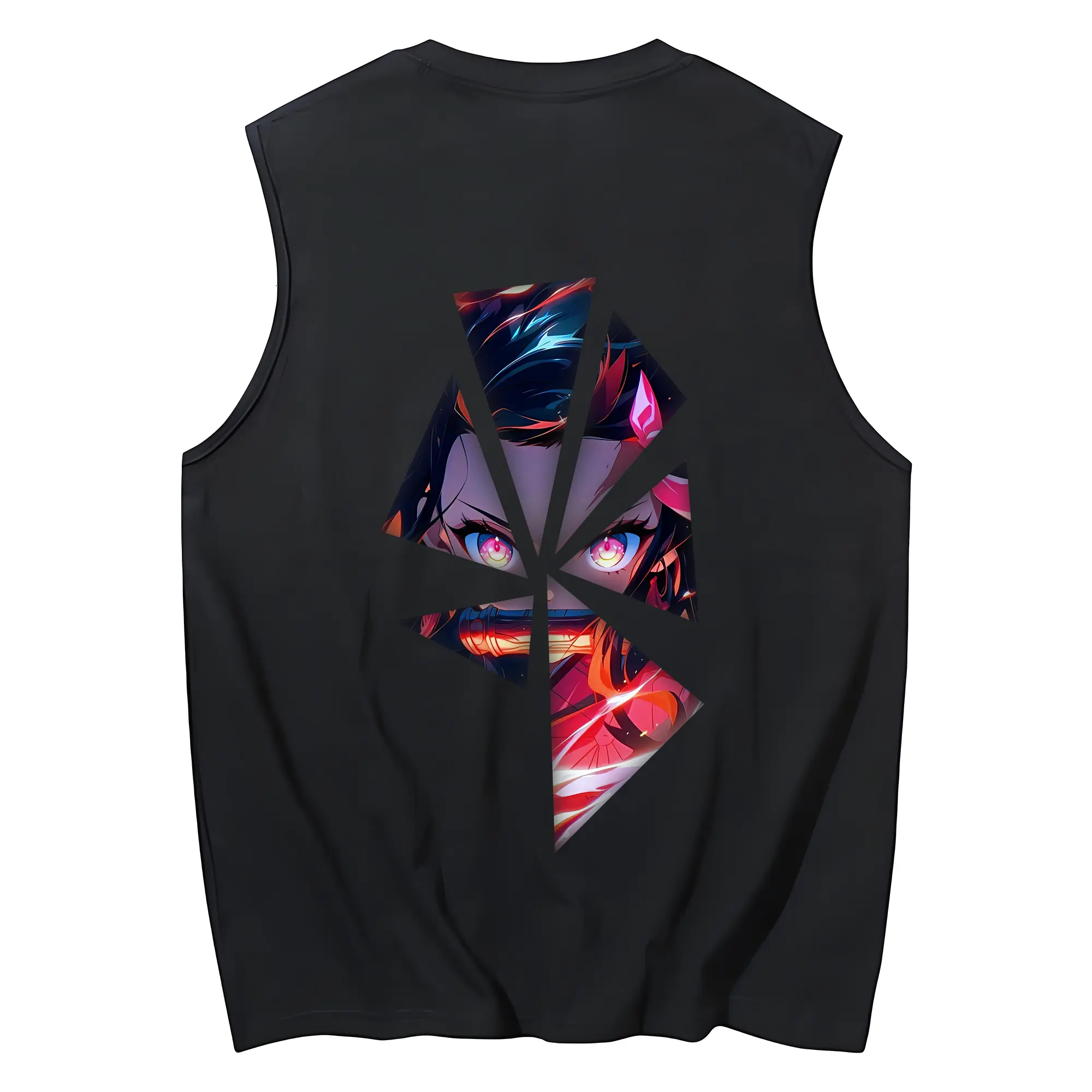 鬼滅の刃 グッズ,竈門 禰豆子 - コットン100% タンクトップ ・ 背面プリント ・ タイトシルエット ・ 快適 通気性 ・ スポーツ カジュアル 散歩用