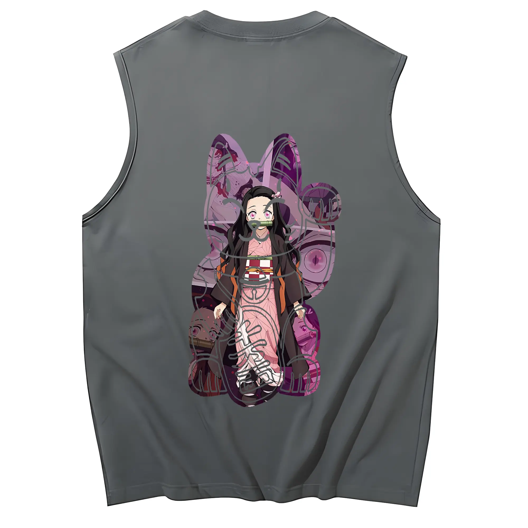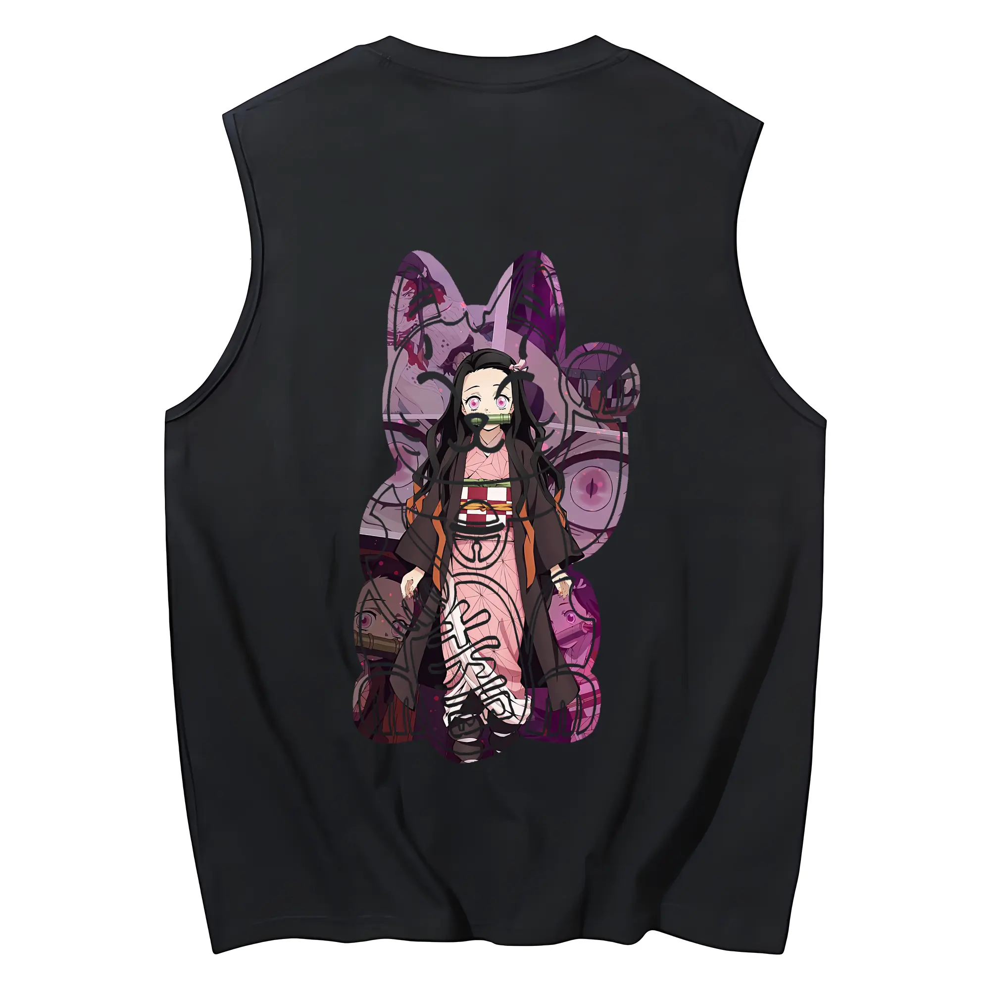 鬼滅の刃 グッズ,竈門 禰豆子 - コットン100% タンクトップ ・ 背面プリント ・ タイトシルエット ・ 快適 通気性 ・ スポーツ カジュアル 散歩用