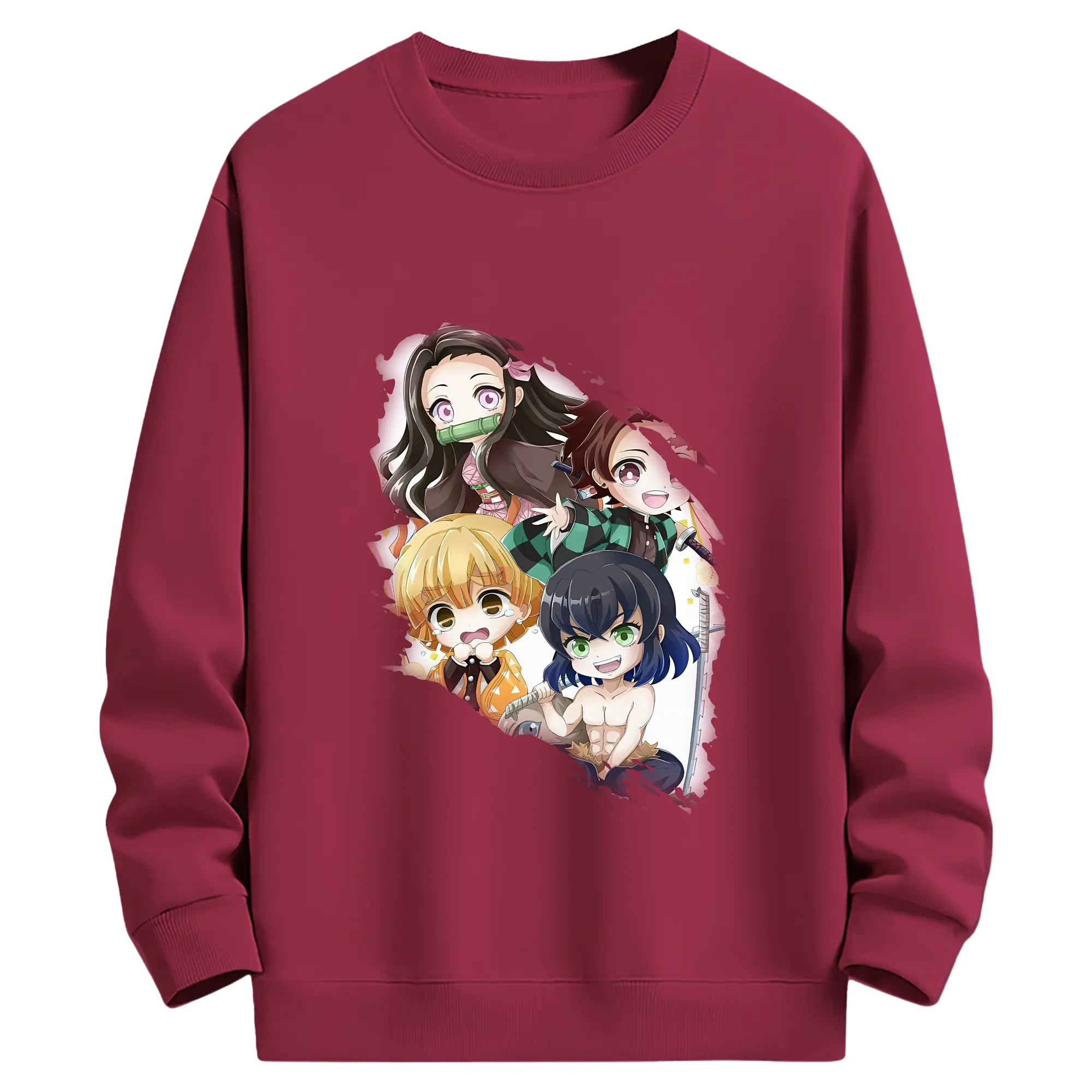 鬼滅の刃 グッズ,竈門 禰豆子 - 薄手 クルーネック スウェット 裏毛260g · ポリエステル 春秋向け カジュアル 男女兼用 · トレーナー デイリー スポーツ 散歩に最適