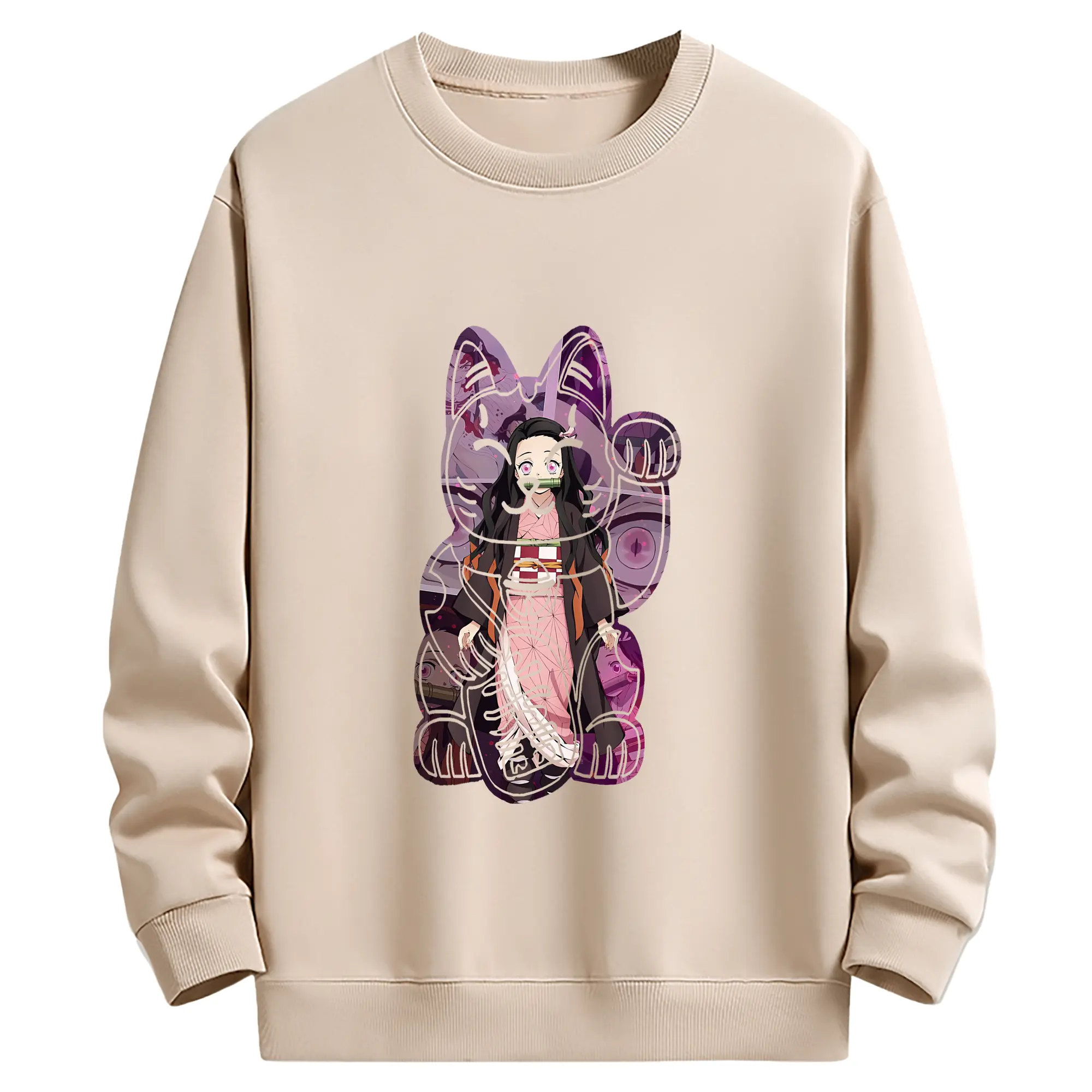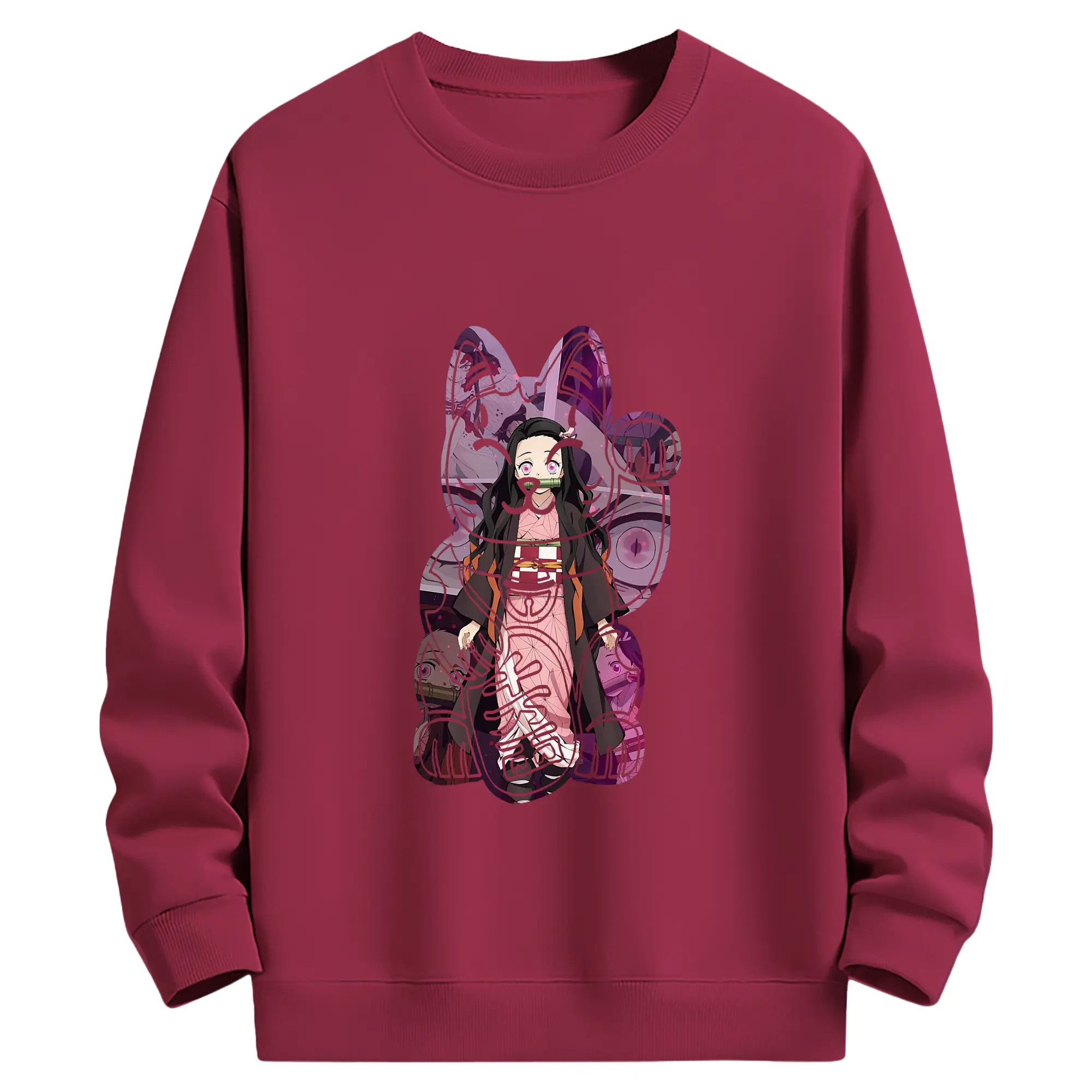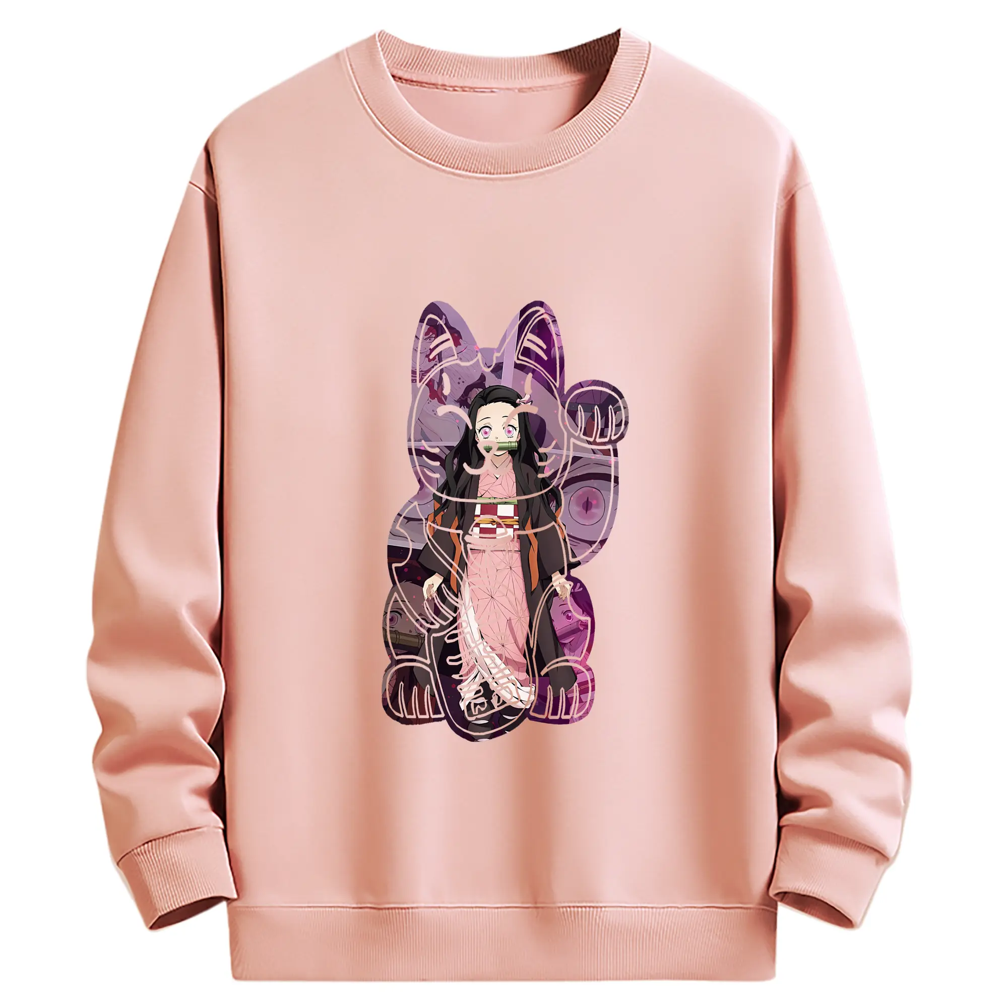鬼滅の刃 グッズ,竈門 禰豆子 - 薄手 クルーネック スウェット 裏毛260g · ポリエステル 春秋向け カジュアル 男女兼用 · トレーナー デイリー スポーツ 散歩に最適