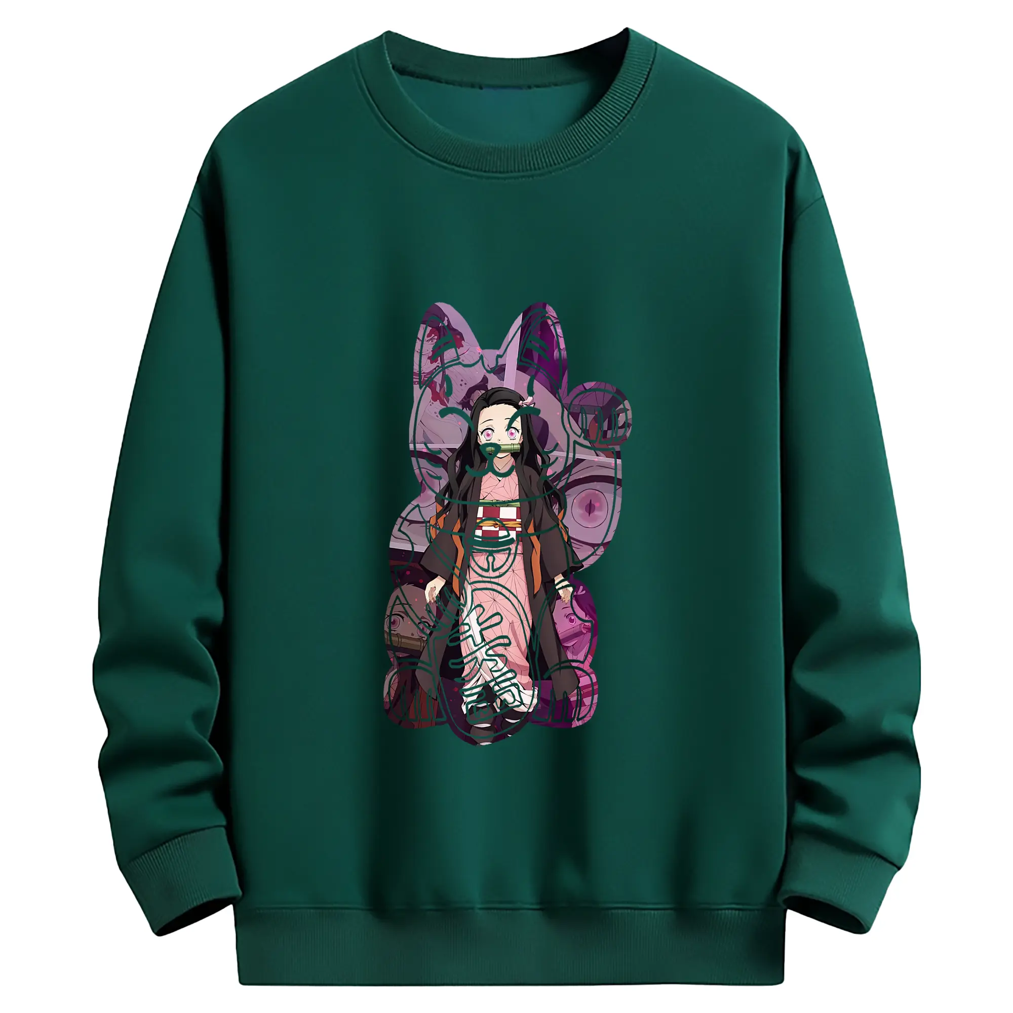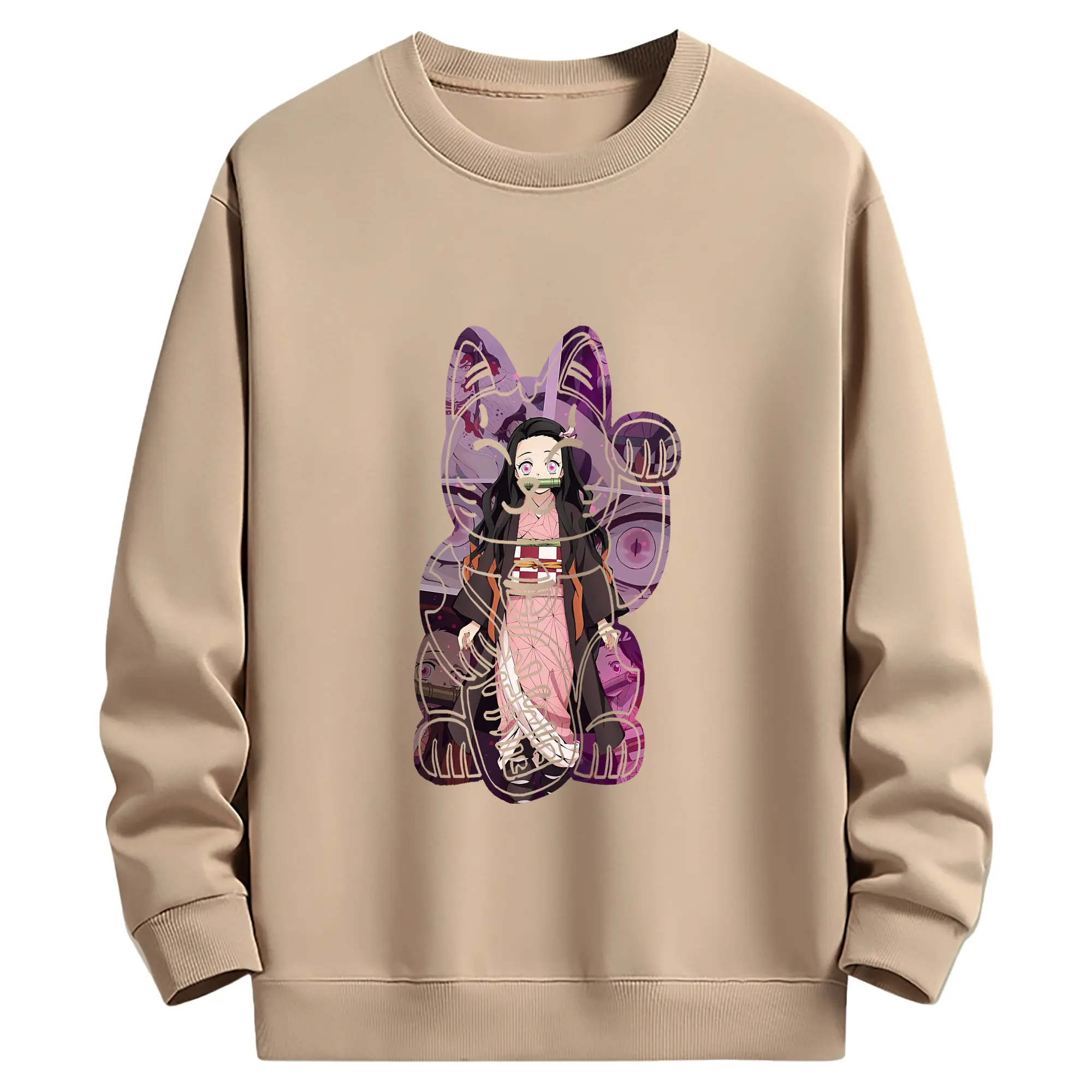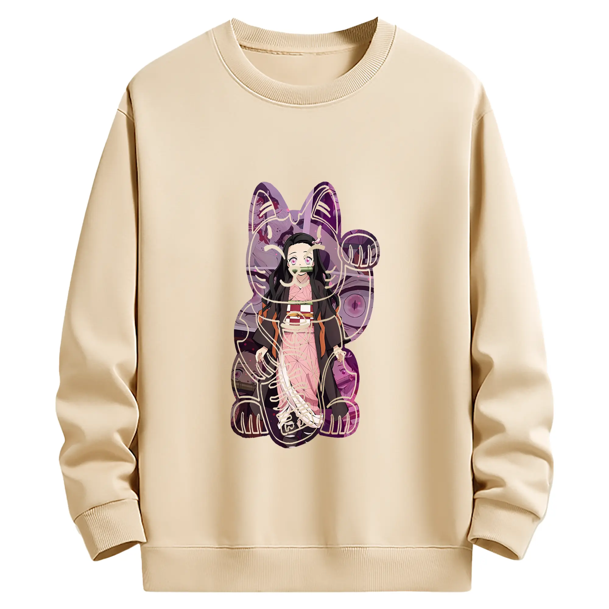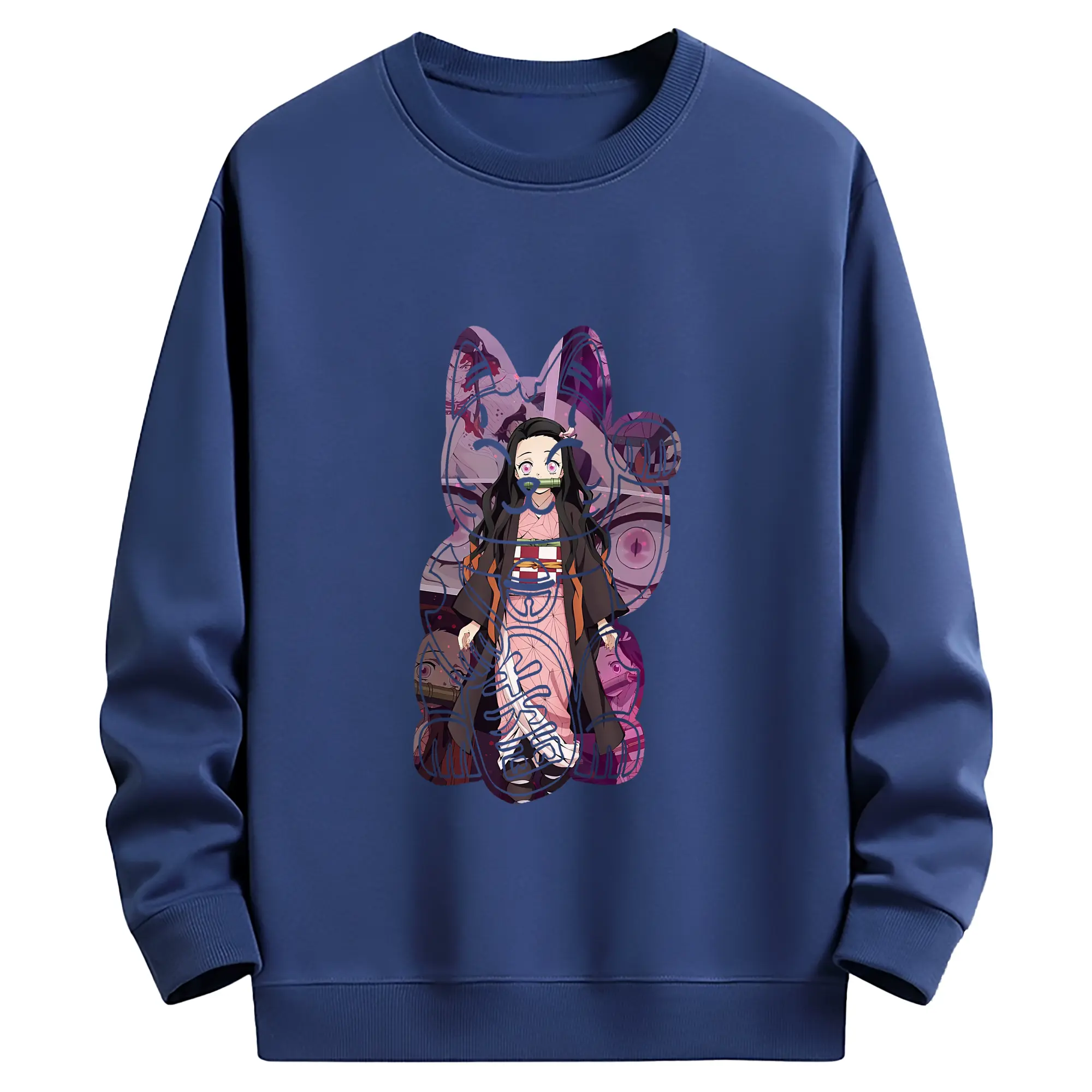 鬼滅の刃 グッズ,竈門 禰豆子 - 薄手 クルーネック スウェット 裏毛260g · ポリエステル 春秋向け カジュアル 男女兼用 · トレーナー デイリー スポーツ 散歩に最適