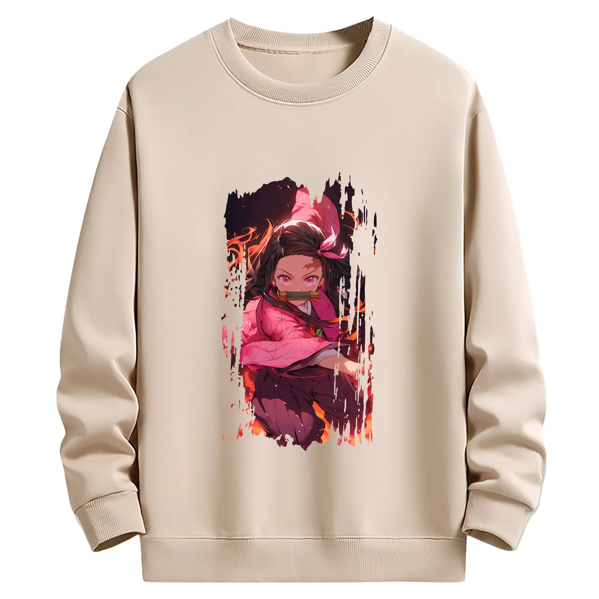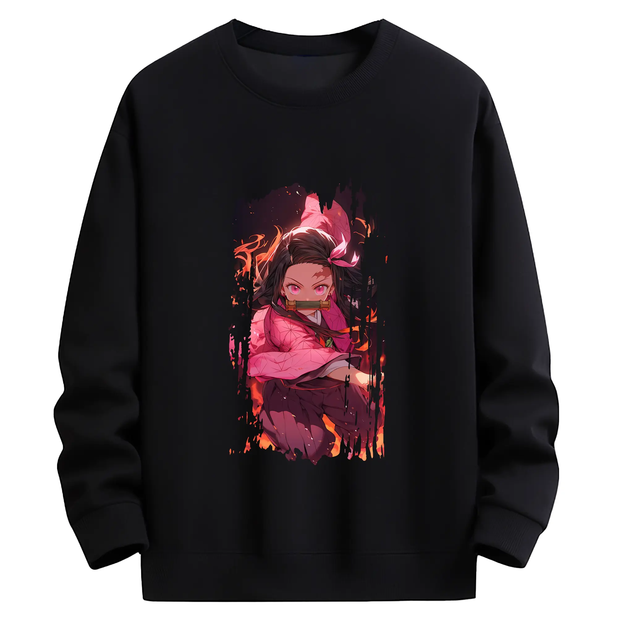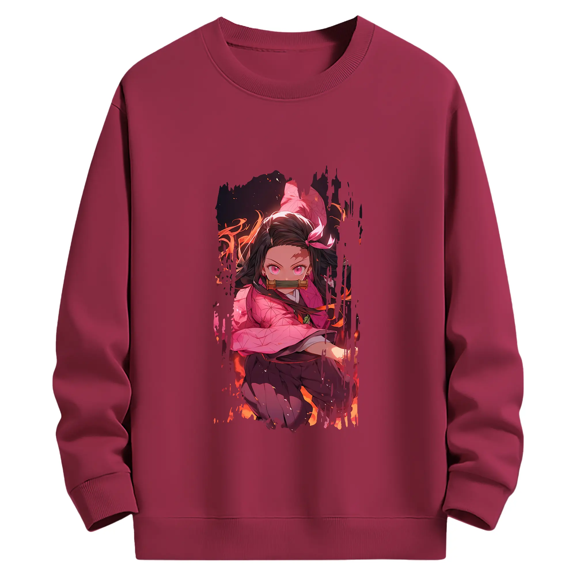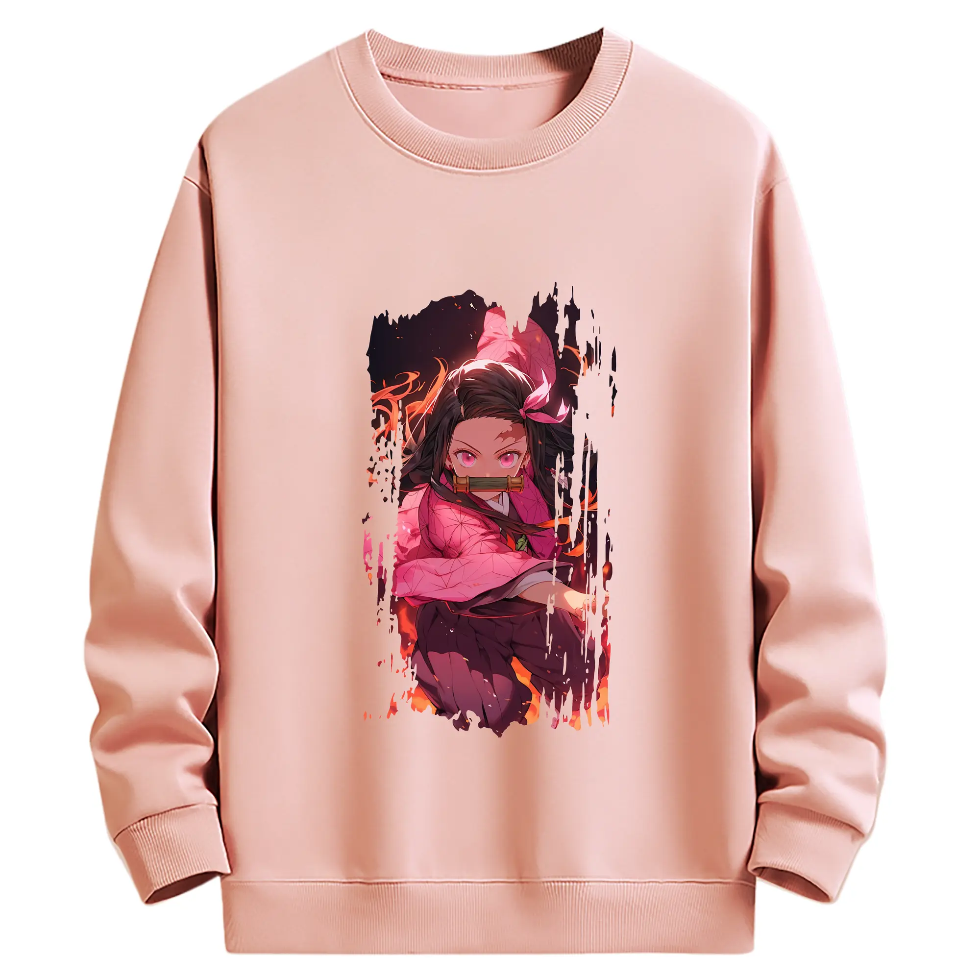 鬼滅の刃 グッズ,竈門 禰豆子 - 薄手 クルーネック スウェット 裏毛260g · ポリエステル 春秋向け カジュアル 男女兼用 · トレーナー デイリー スポーツ 散歩に最適