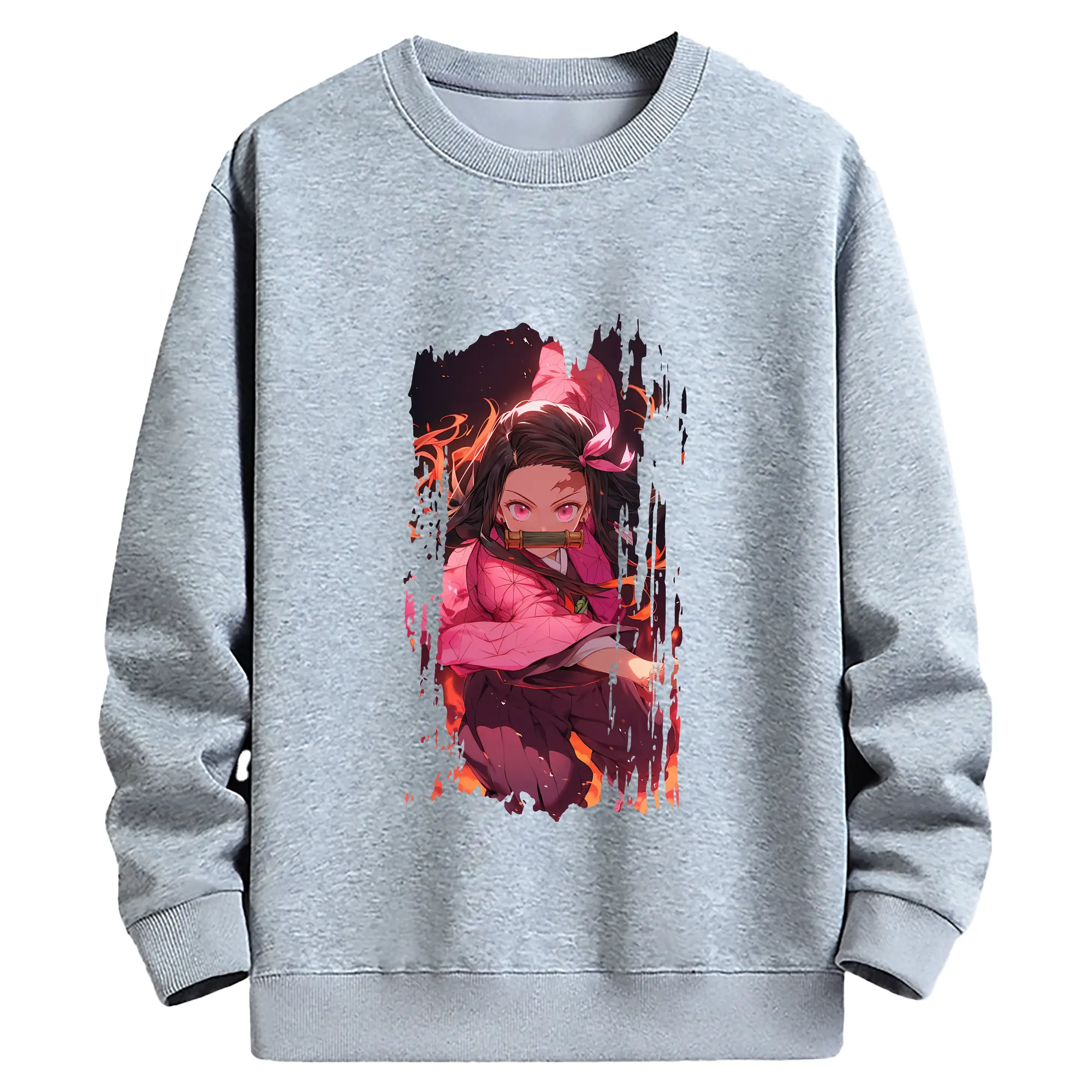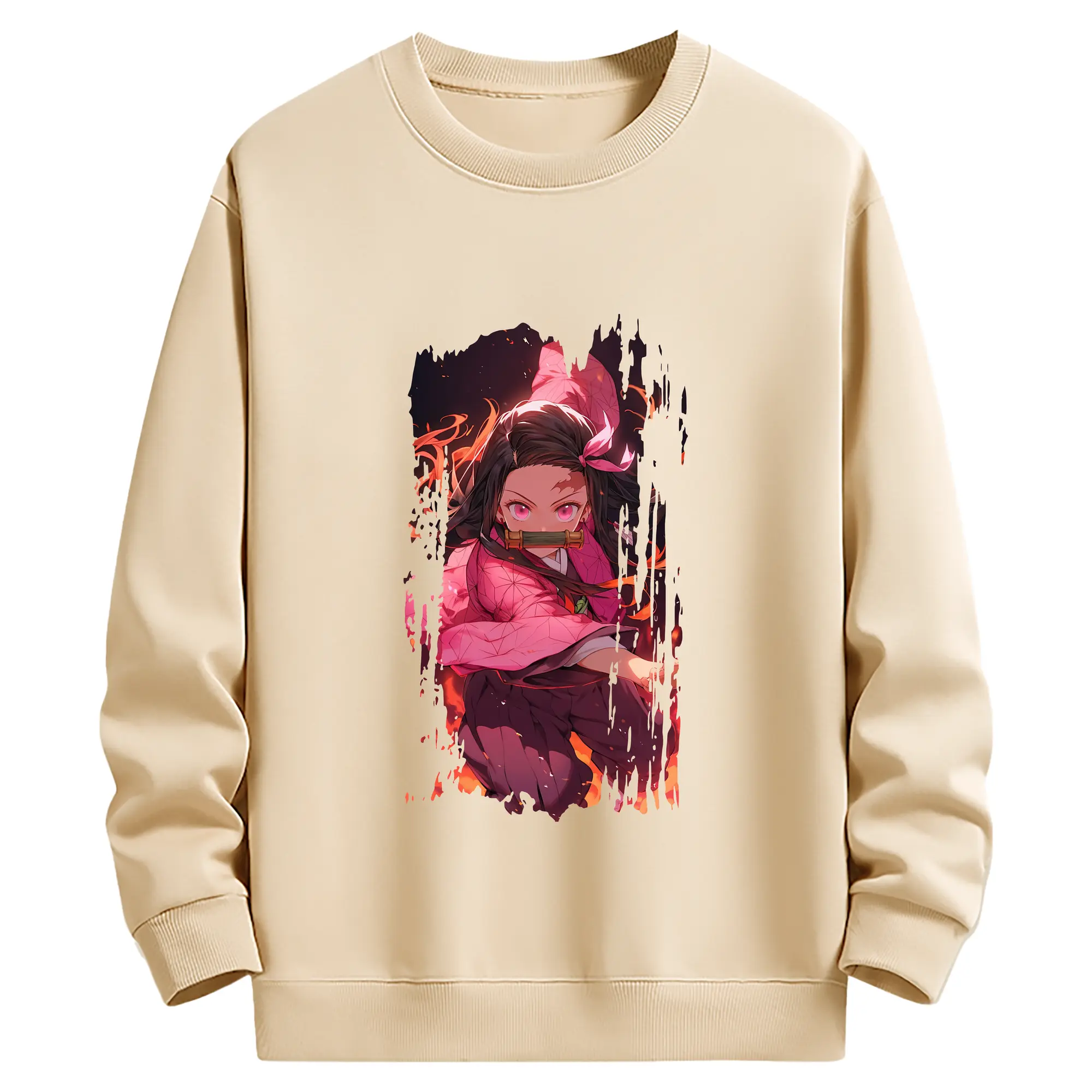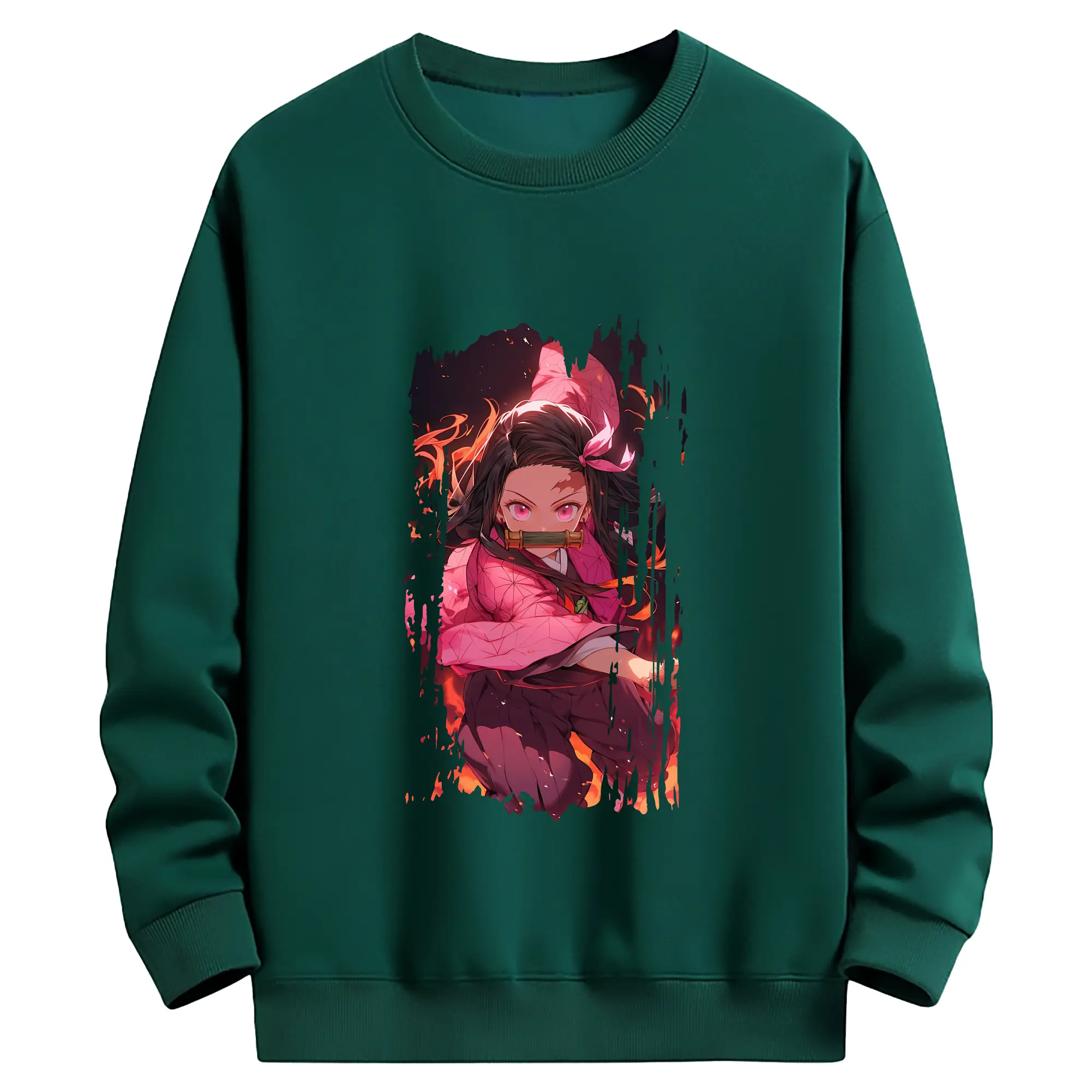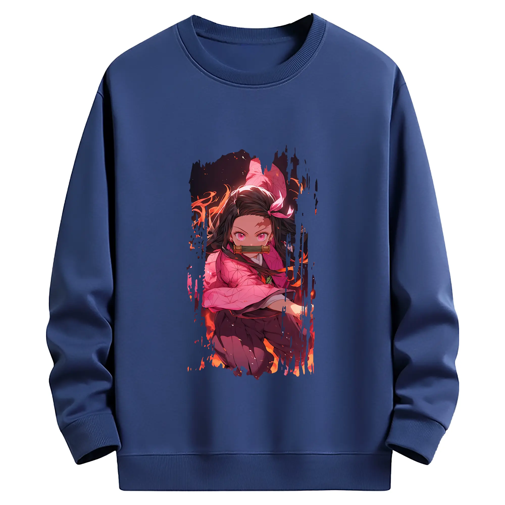 鬼滅の刃 グッズ,竈門 禰豆子 - 薄手 クルーネック スウェット 裏毛260g · ポリエステル 春秋向け カジュアル 男女兼用 · トレーナー デイリー スポーツ 散歩に最適