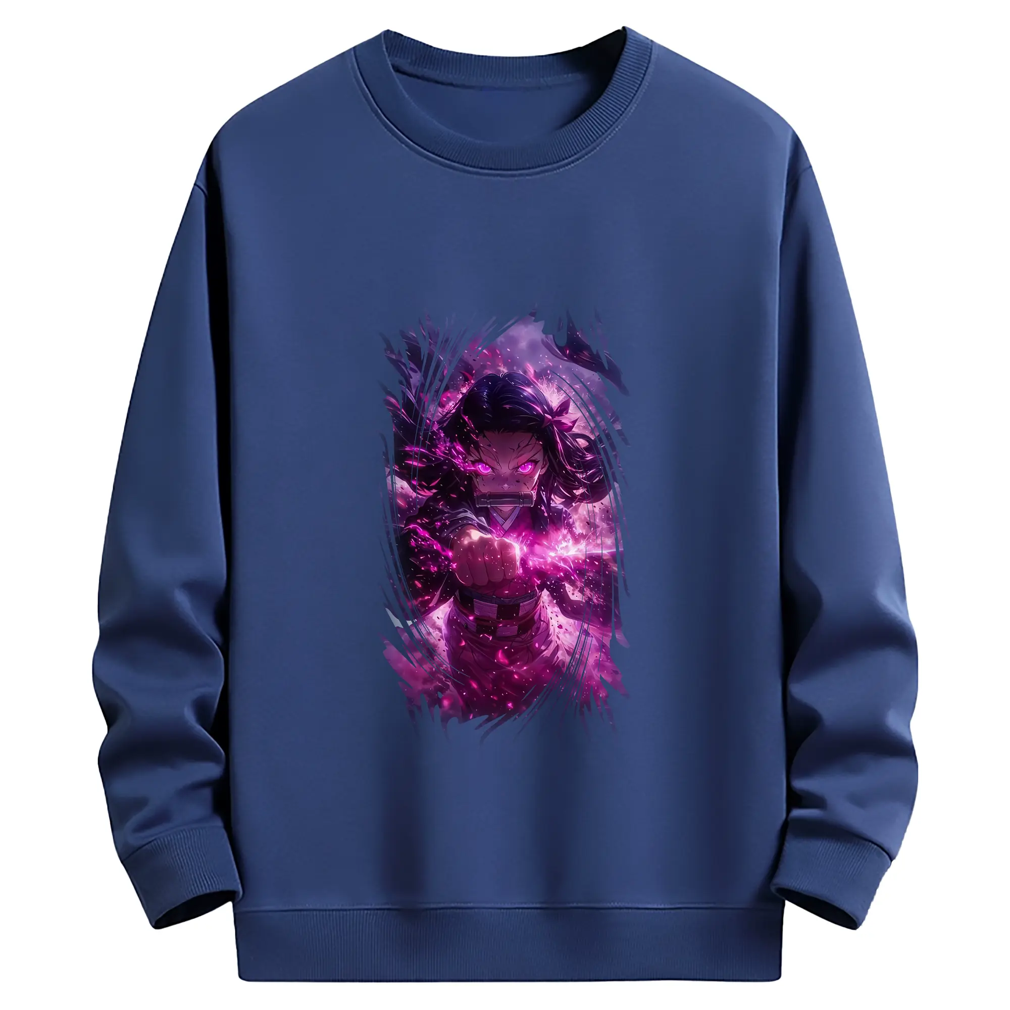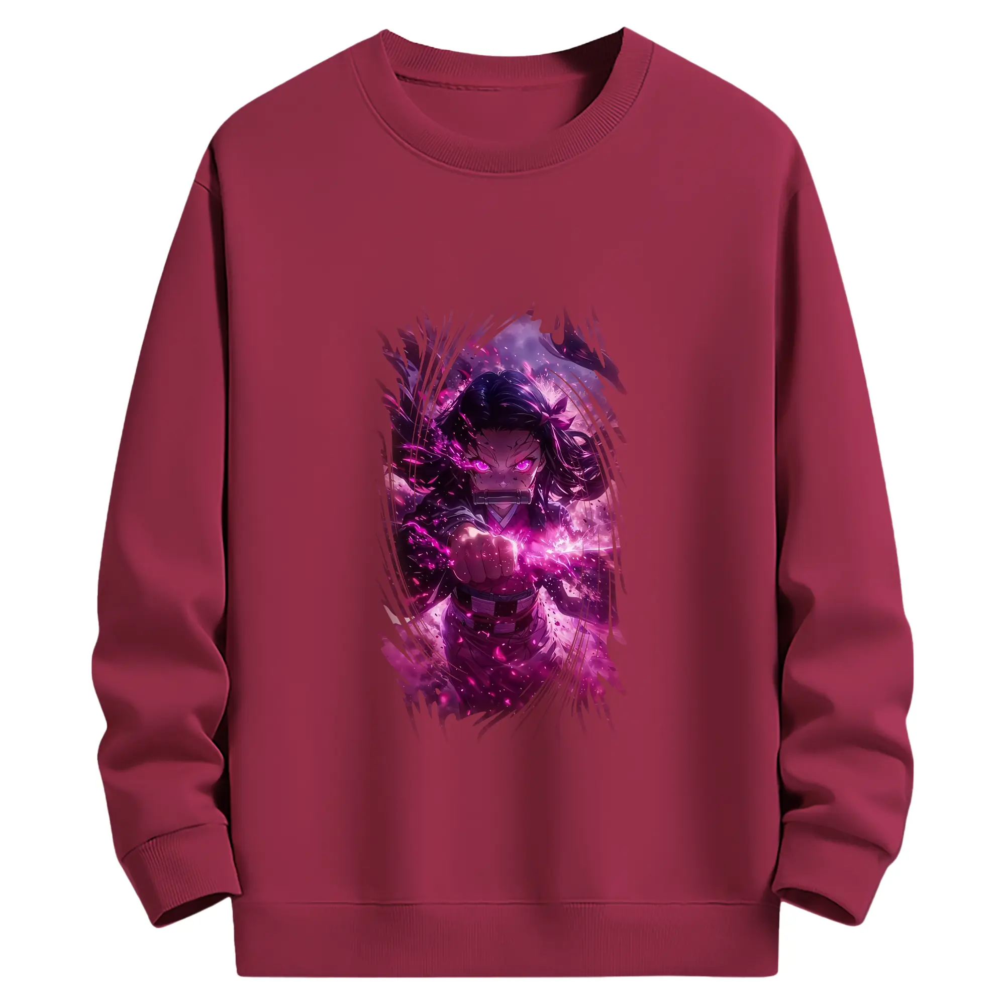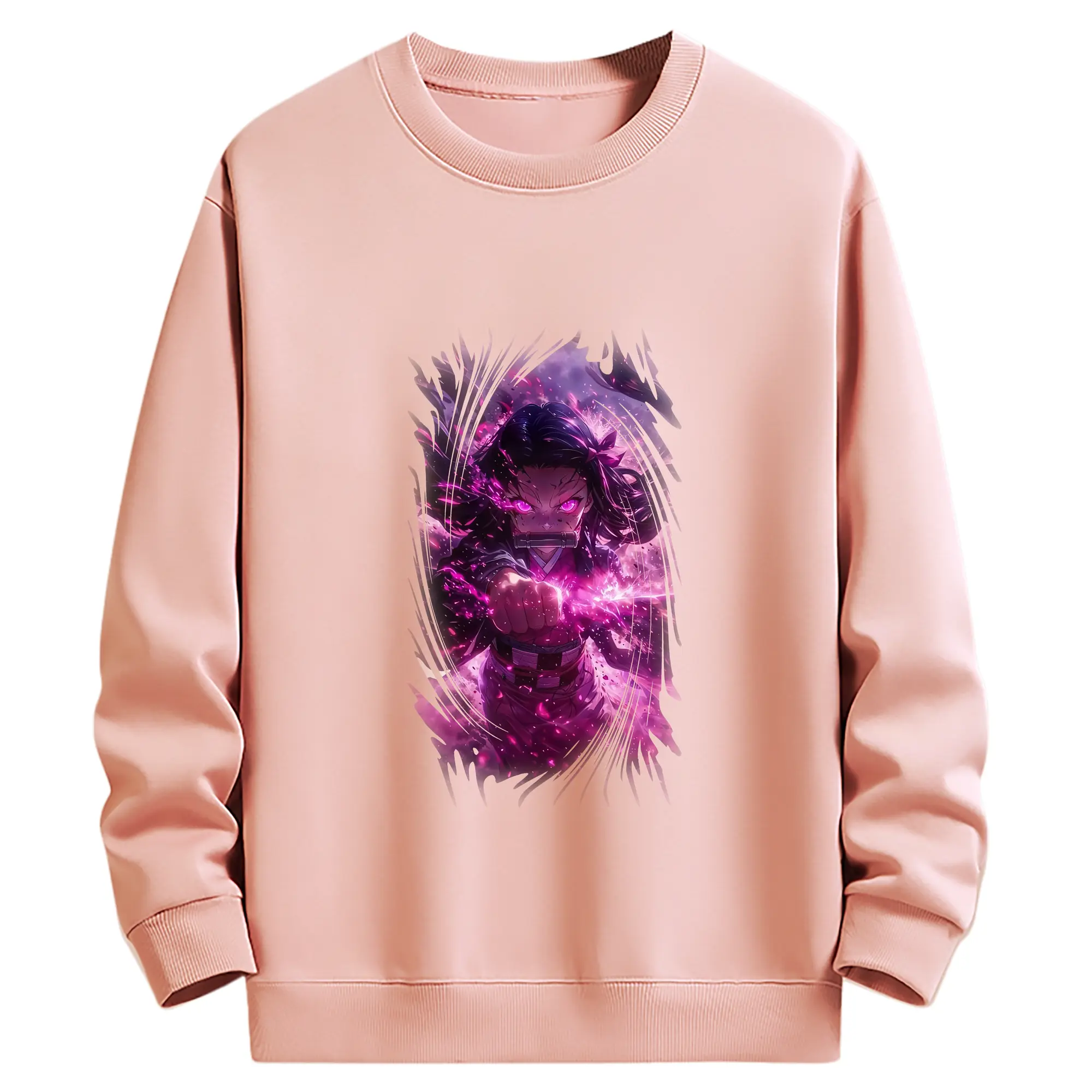 鬼滅の刃 グッズ,竈門 禰豆子 - 薄手 クルーネック スウェット 裏毛260g · ポリエステル 春秋向け カジュアル 男女兼用 · トレーナー デイリー スポーツ 散歩に最適