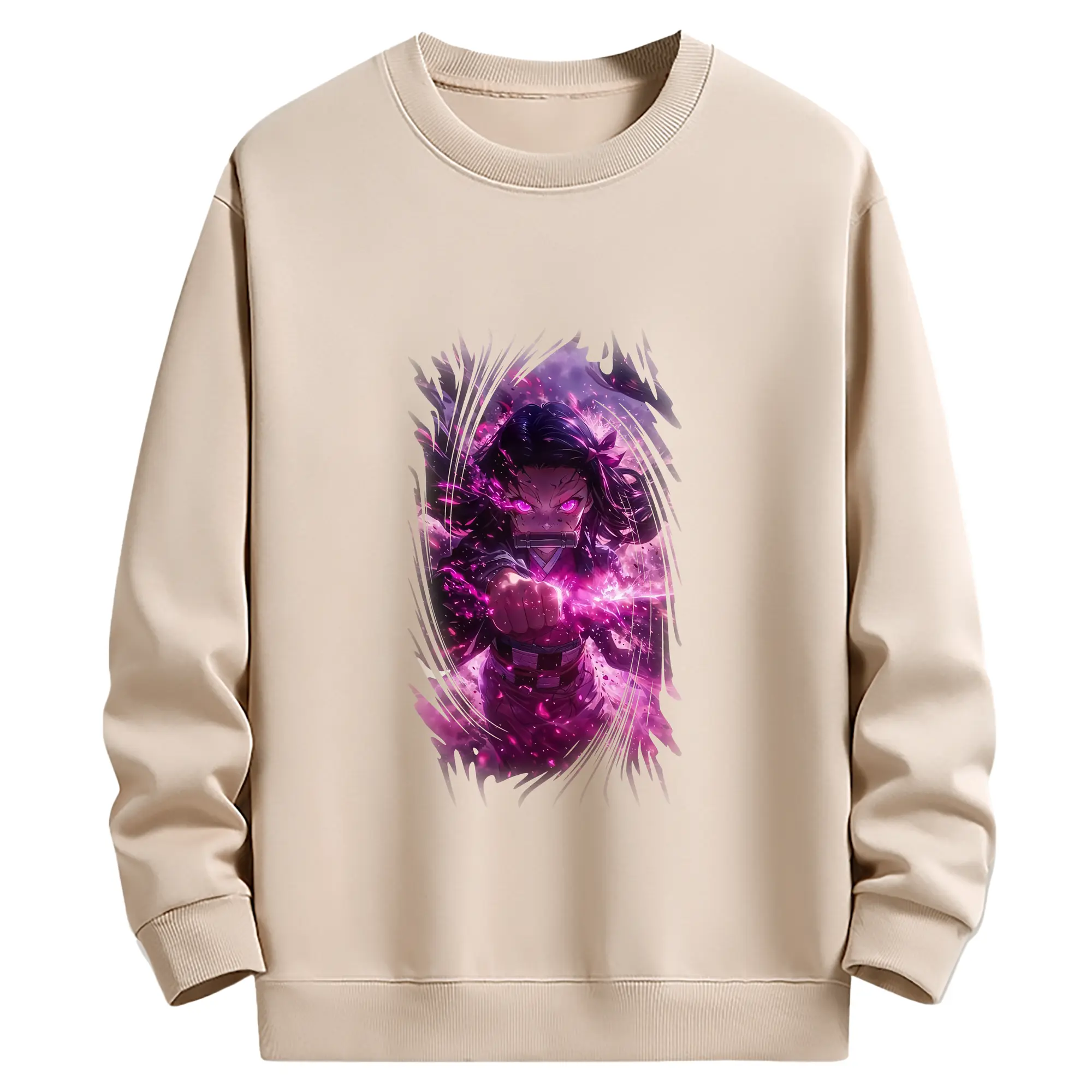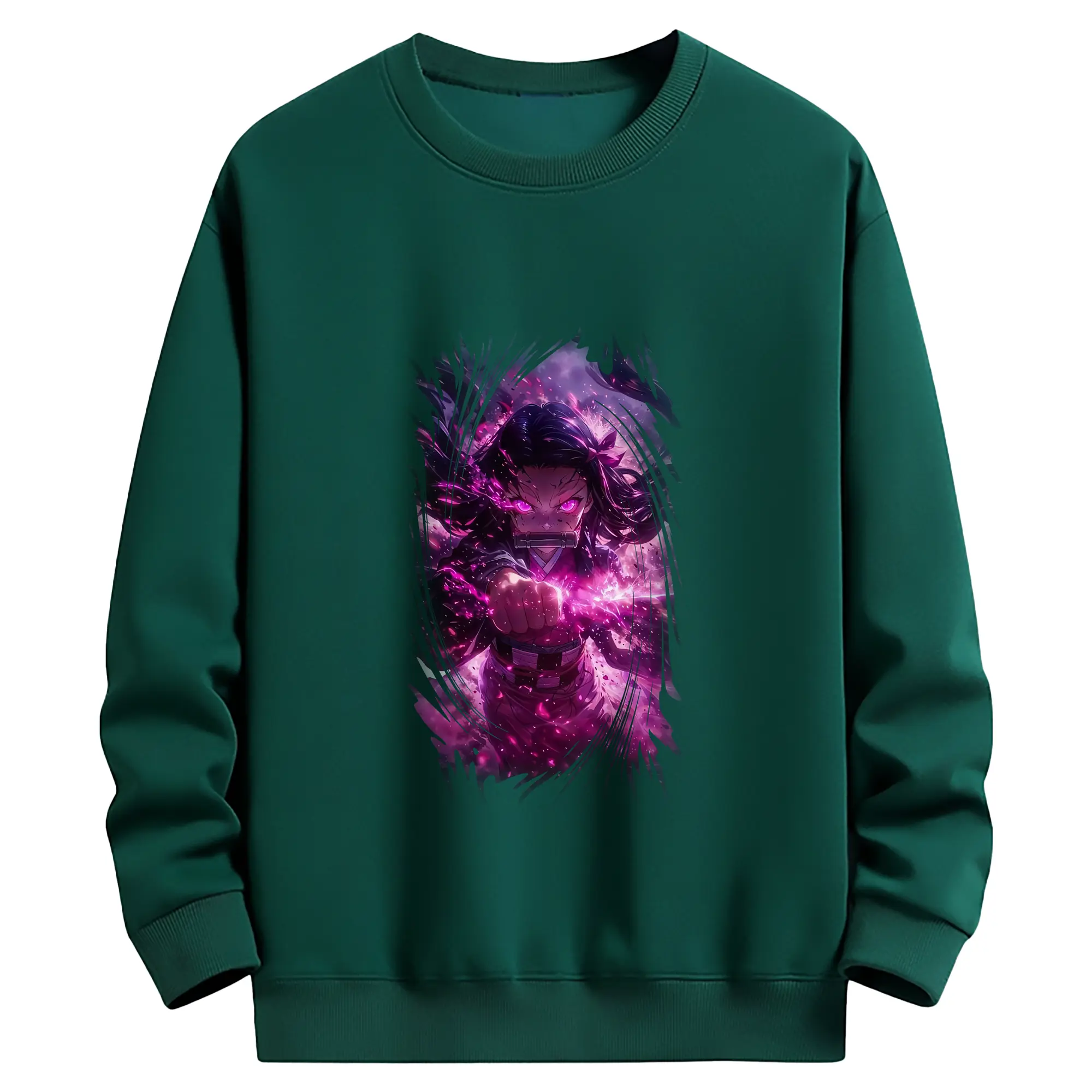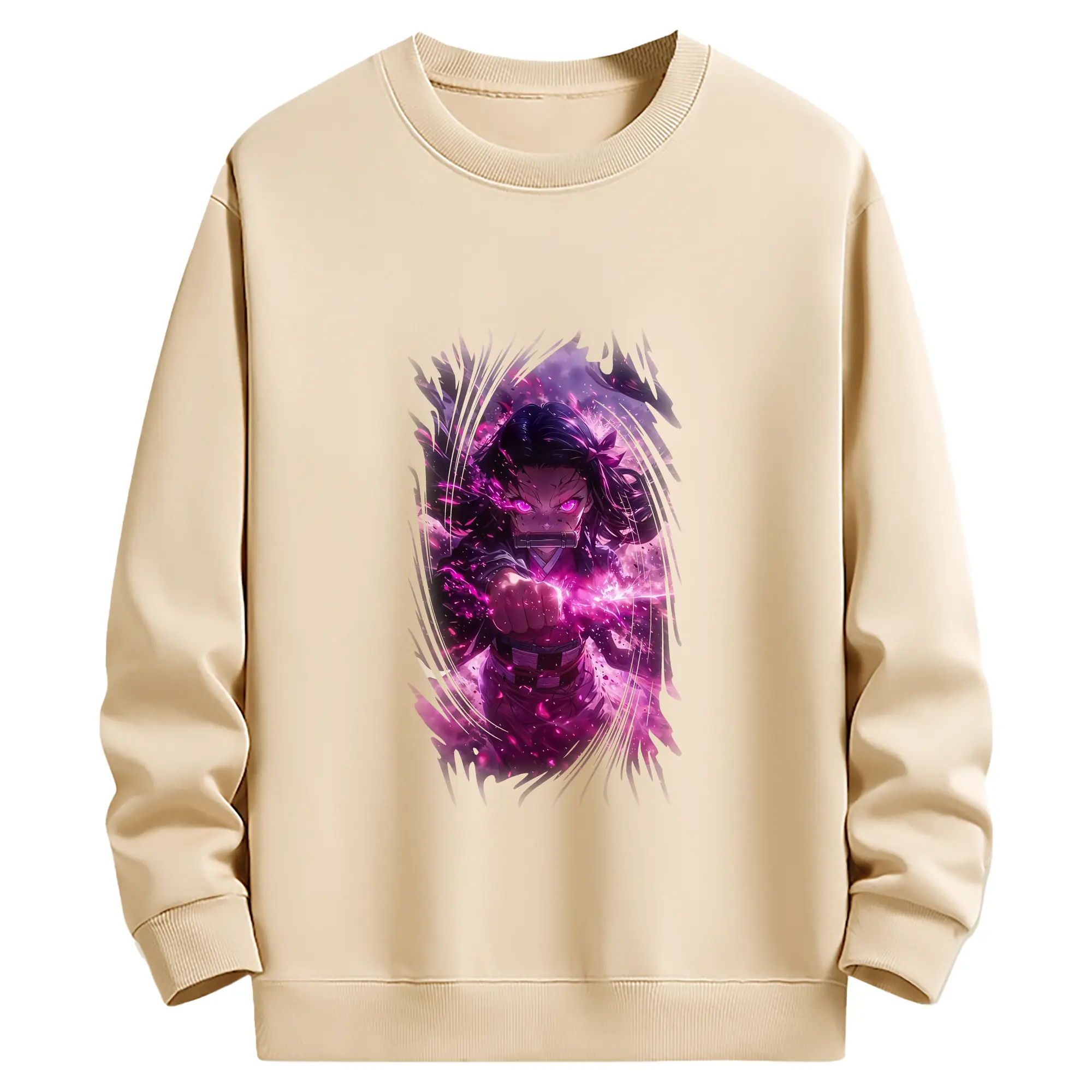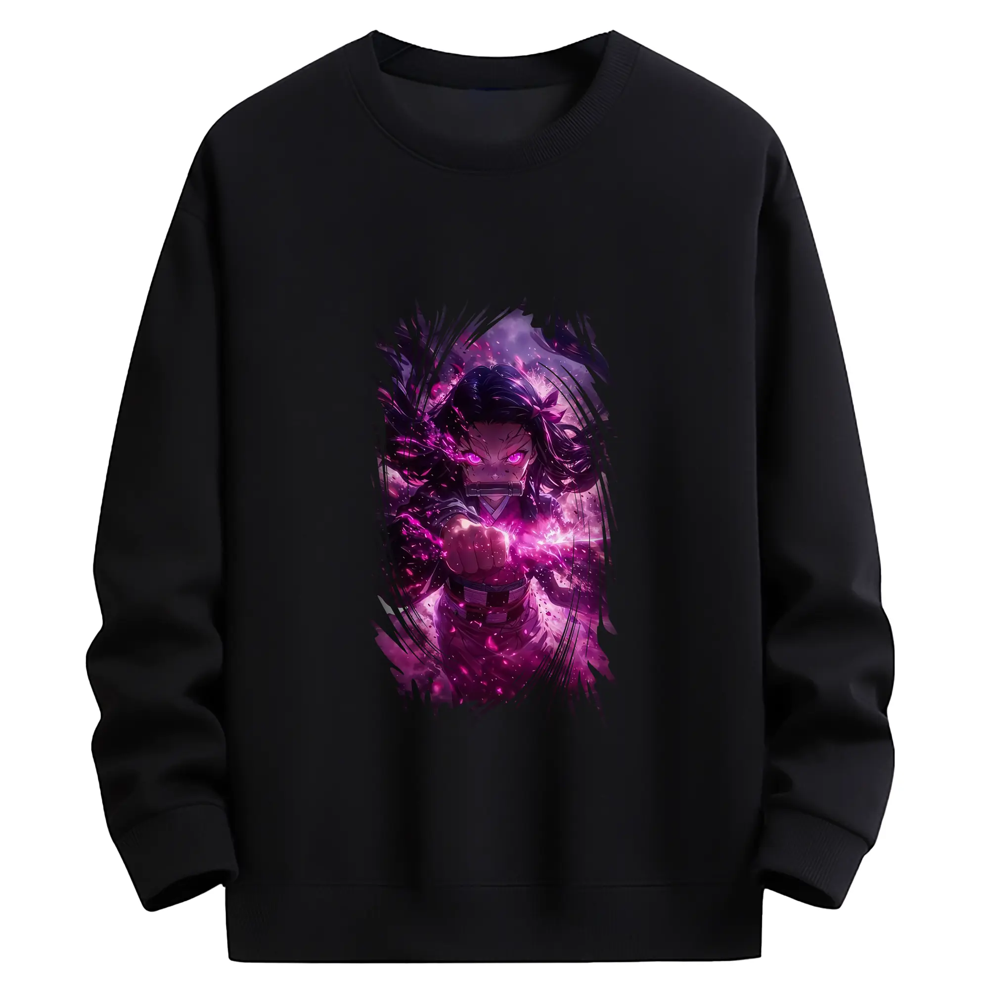 鬼滅の刃 グッズ,竈門 禰豆子 - 薄手 クルーネック スウェット 裏毛260g · ポリエステル 春秋向け カジュアル 男女兼用 · トレーナー デイリー スポーツ 散歩に最適