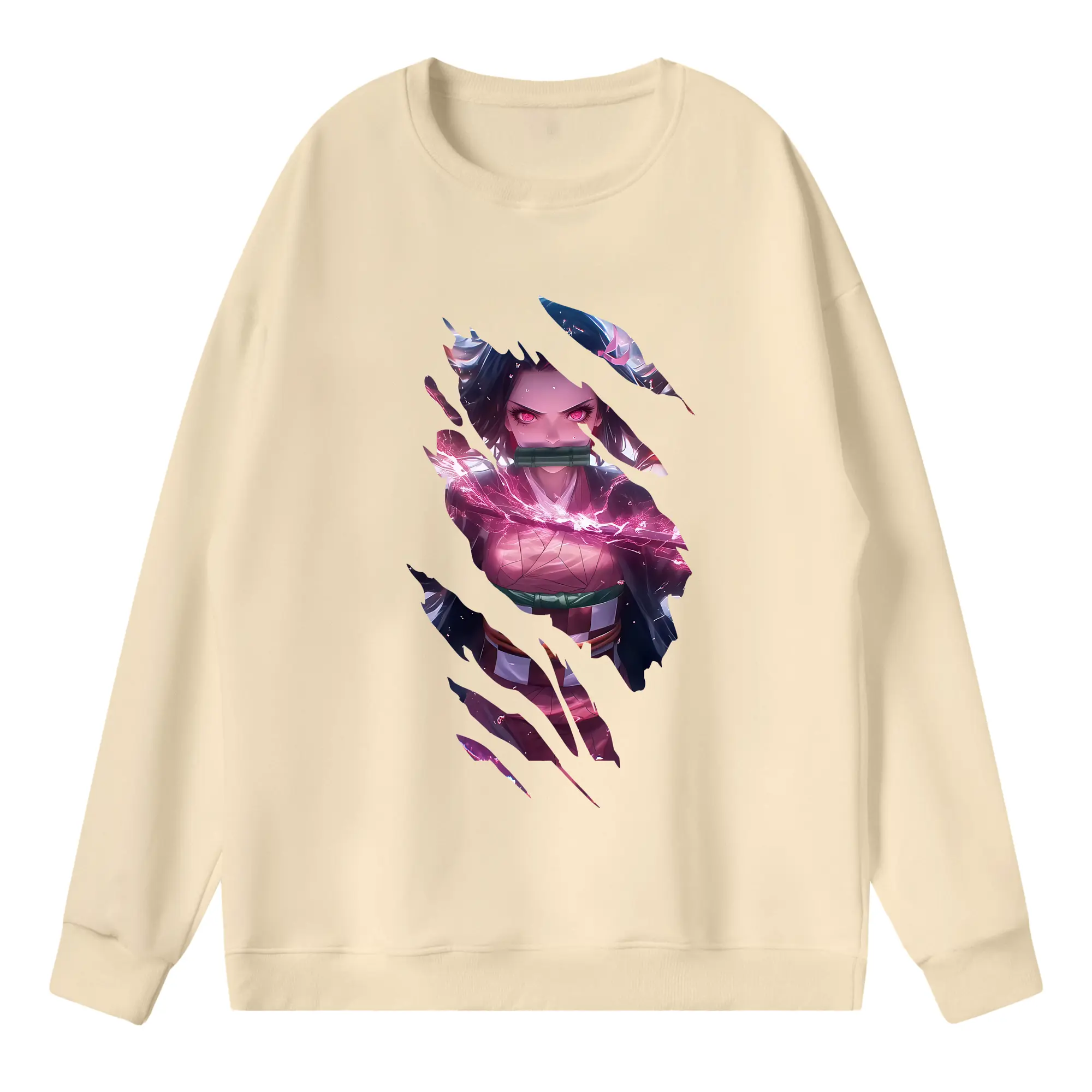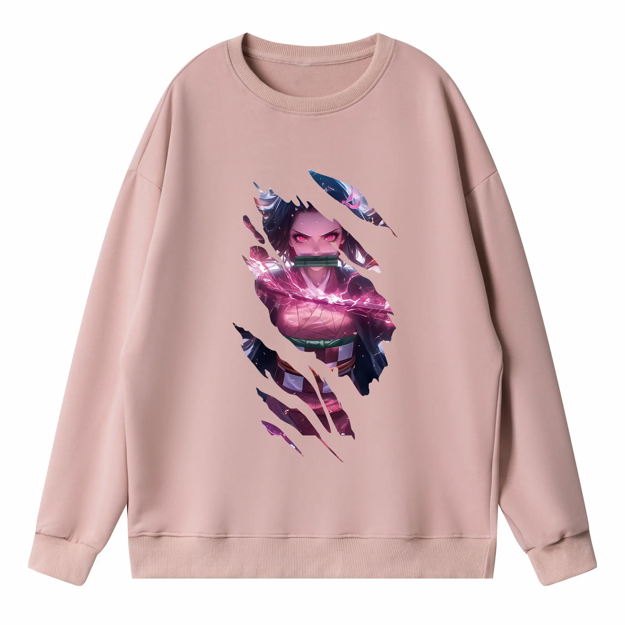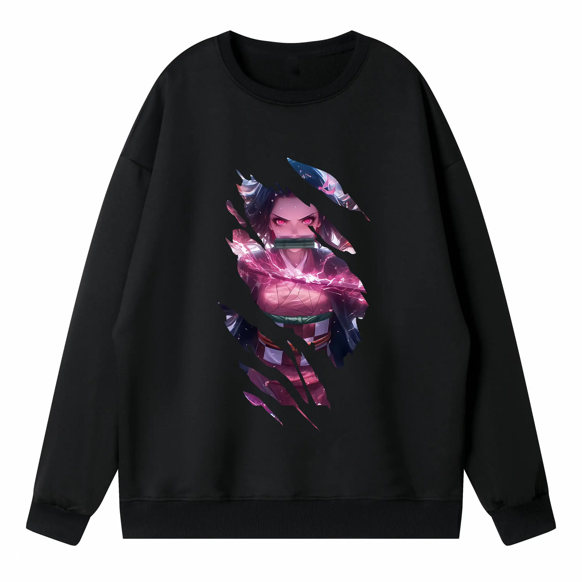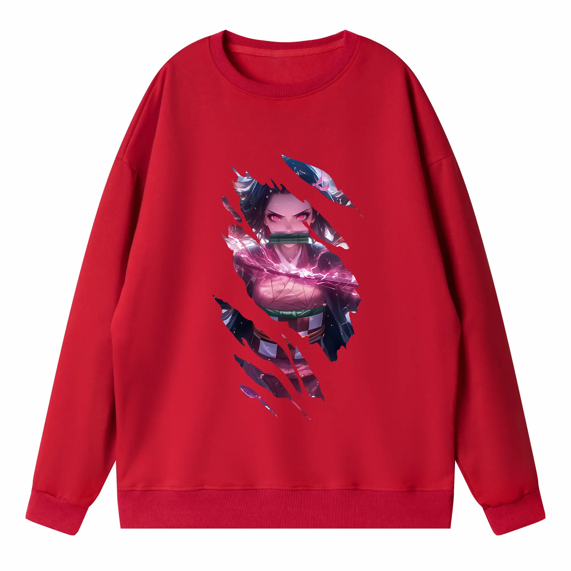 鬼滅の刃 グッズ,竈門 禰豆子 - 高品質 クルーネック スウェット ・ コットン59% ポリエステル41% ・ ユニセックス 長袖 トレーナー ・ カジュアル デイリー スポーツ 散歩用