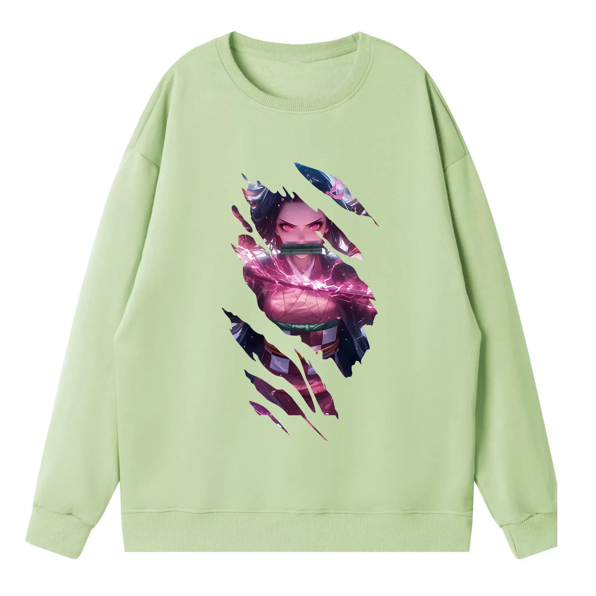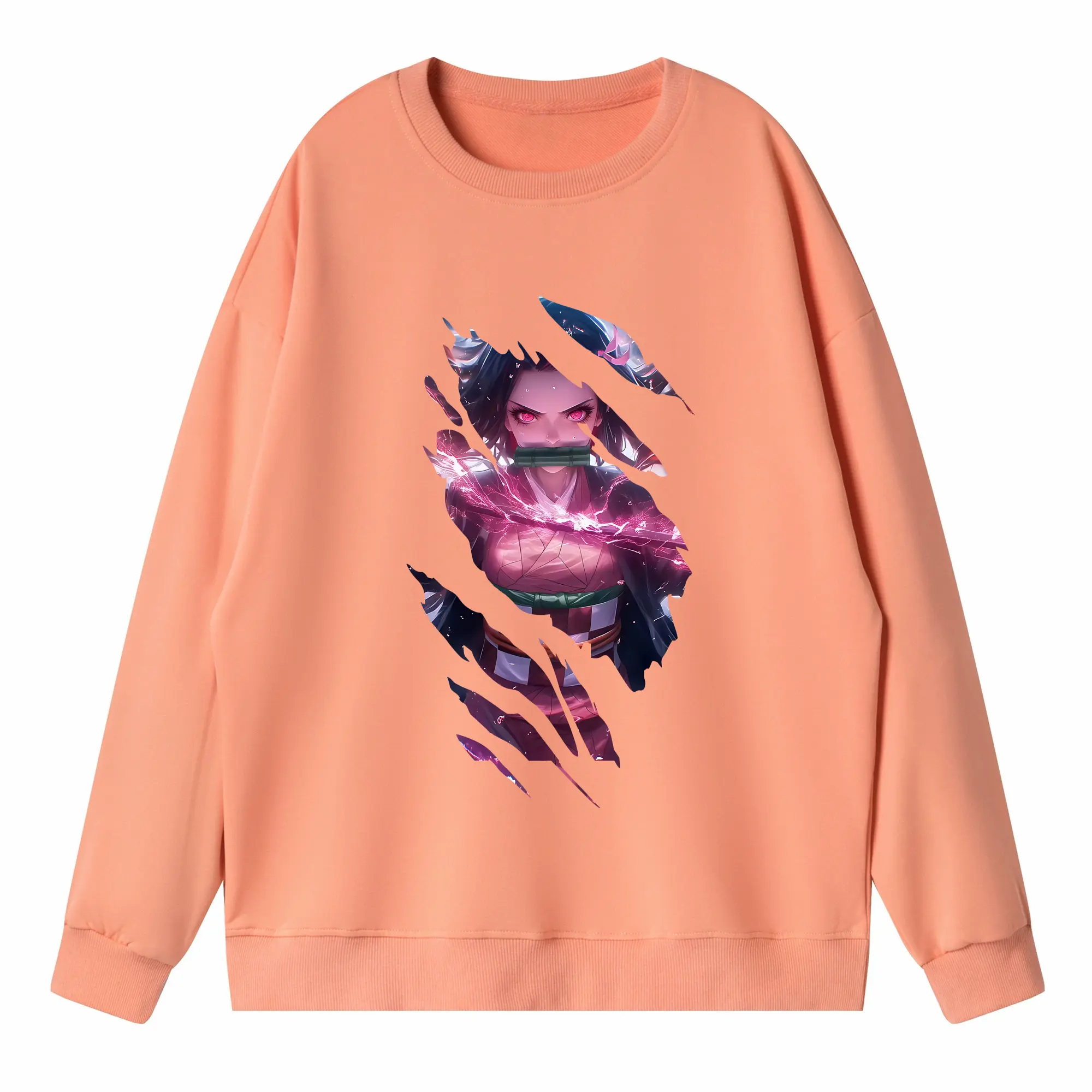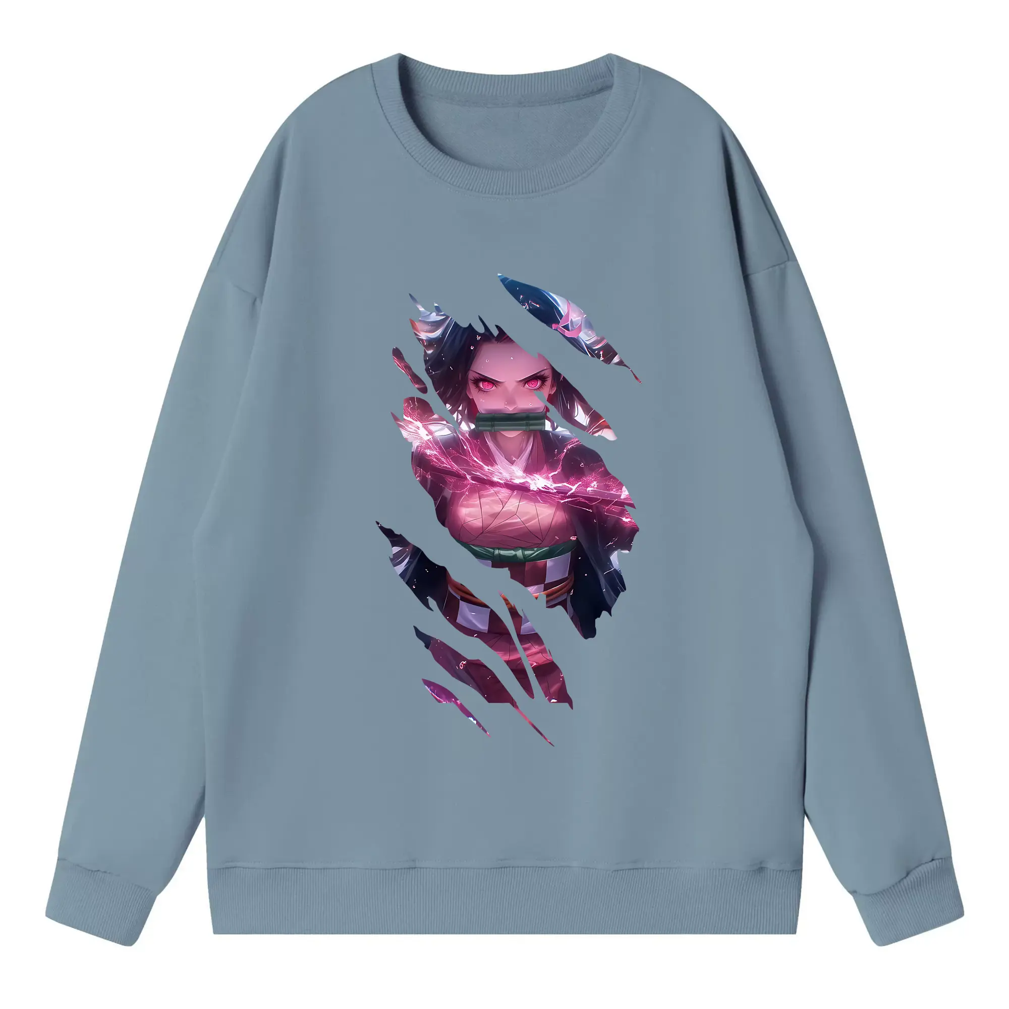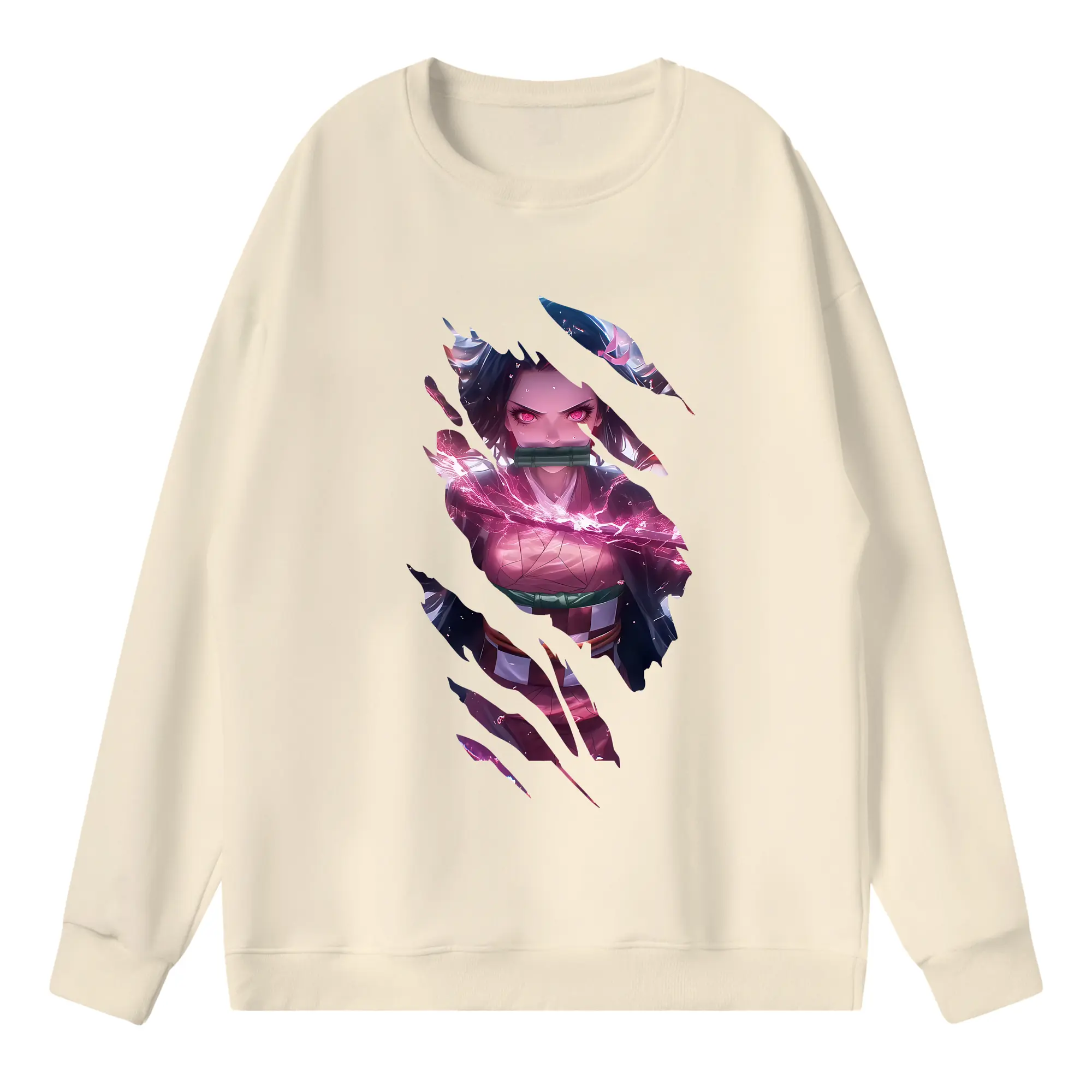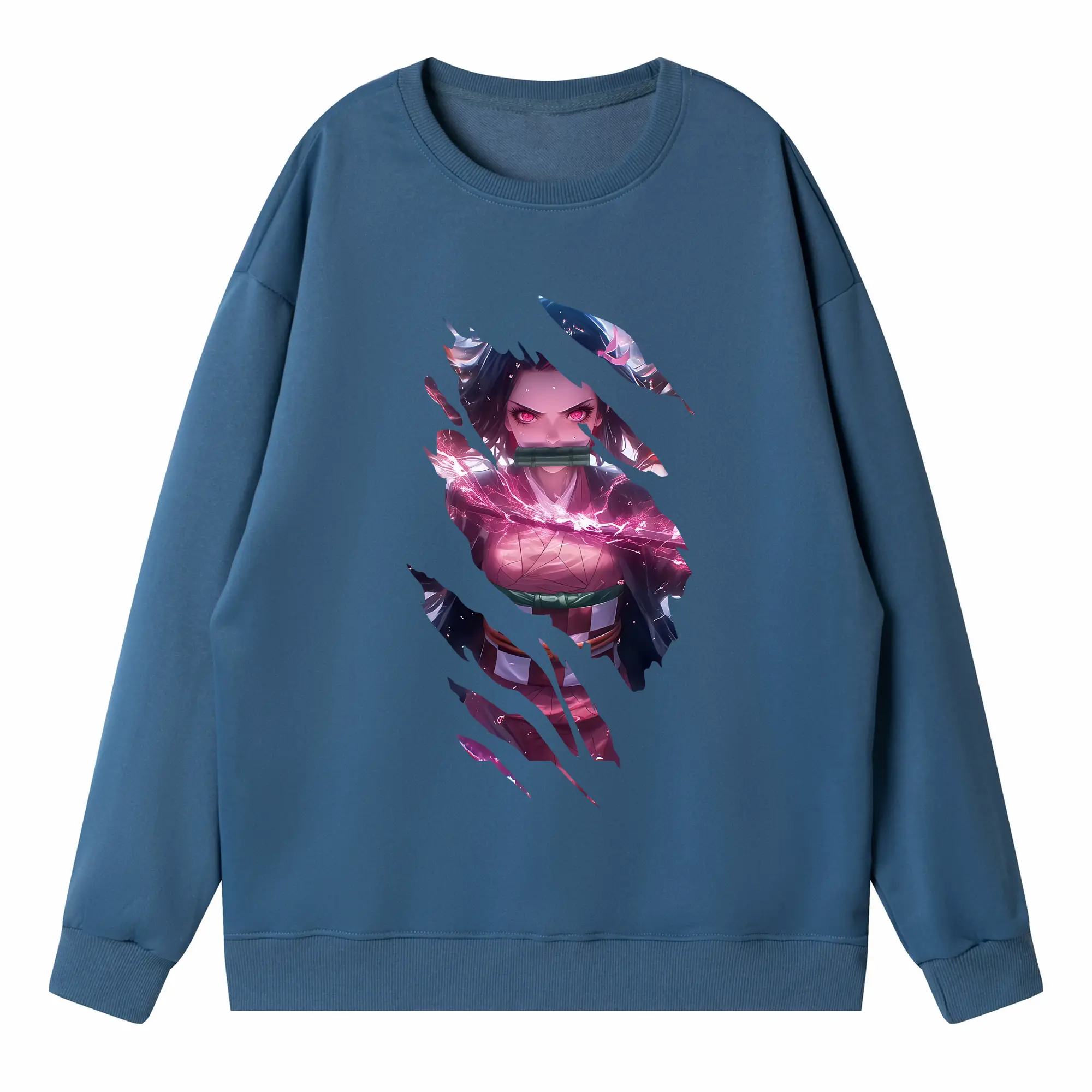 鬼滅の刃 グッズ,竈門 禰豆子 - 高品質 クルーネック スウェット ・ コットン59% ポリエステル41% ・ ユニセックス 長袖 トレーナー ・ カジュアル デイリー スポーツ 散歩用