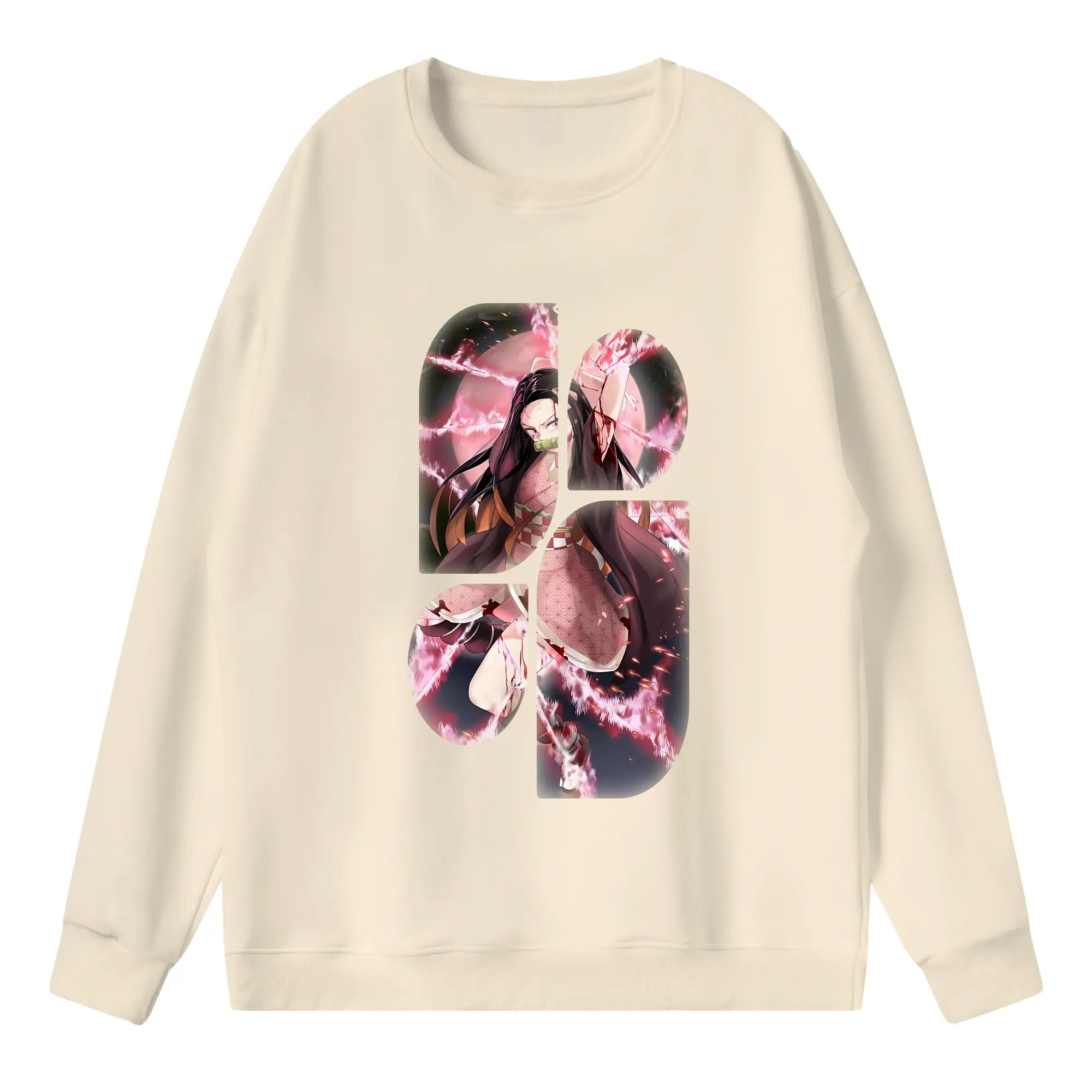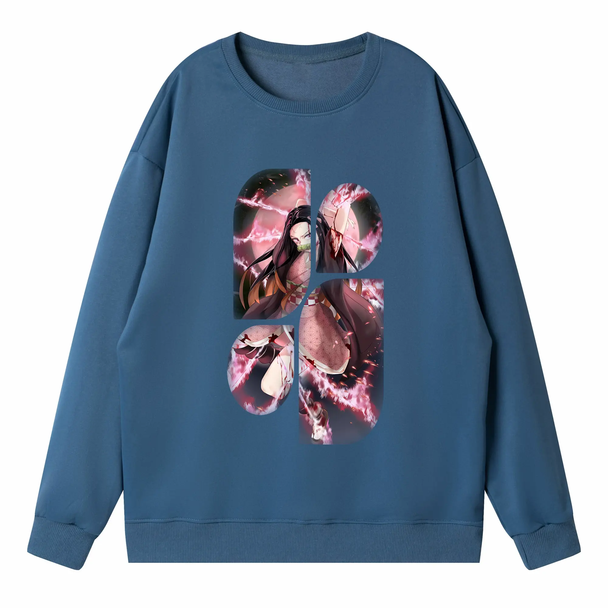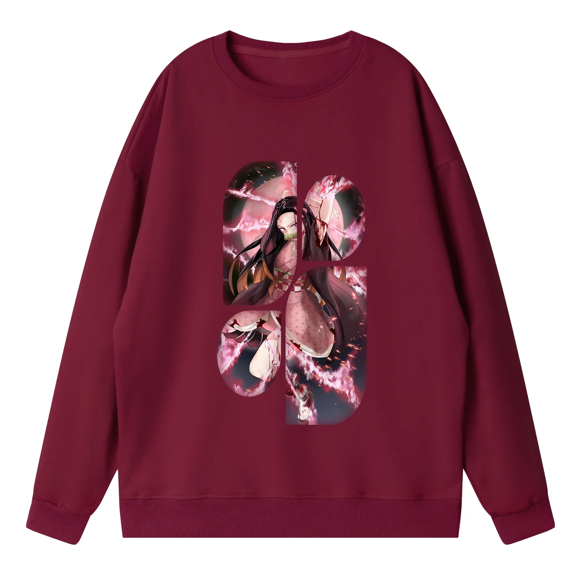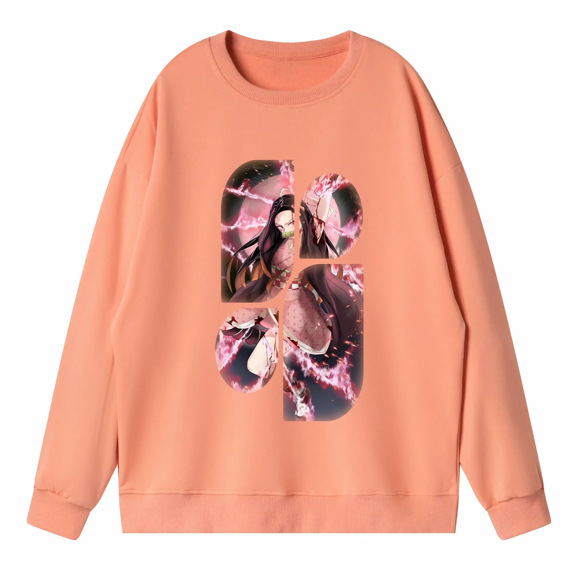 鬼滅の刃 グッズ,竈門 禰豆子 - 高品質 クルーネック スウェット ・ コットン59% ポリエステル41% ・ ユニセックス 長袖 トレーナー ・ カジュアル デイリー スポーツ 散歩用
