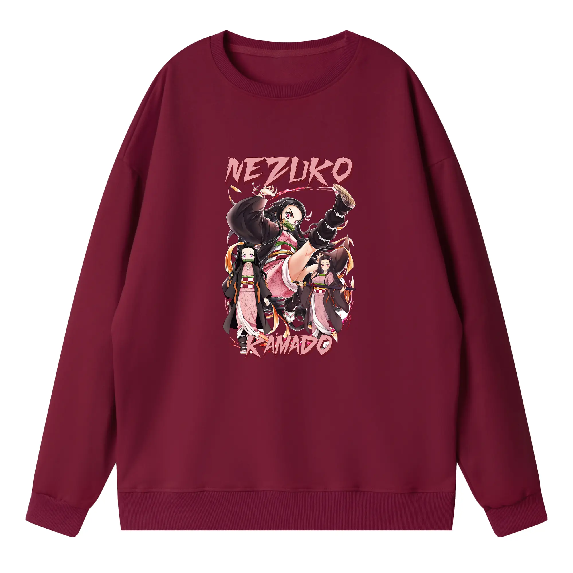 鬼滅の刃 グッズ,竈門 禰豆子 - 高品質 クルーネック スウェット ・ コットン59% ポリエステル41% ・ ユニセックス 長袖 トレーナー ・ カジュアル デイリー スポーツ 散歩用