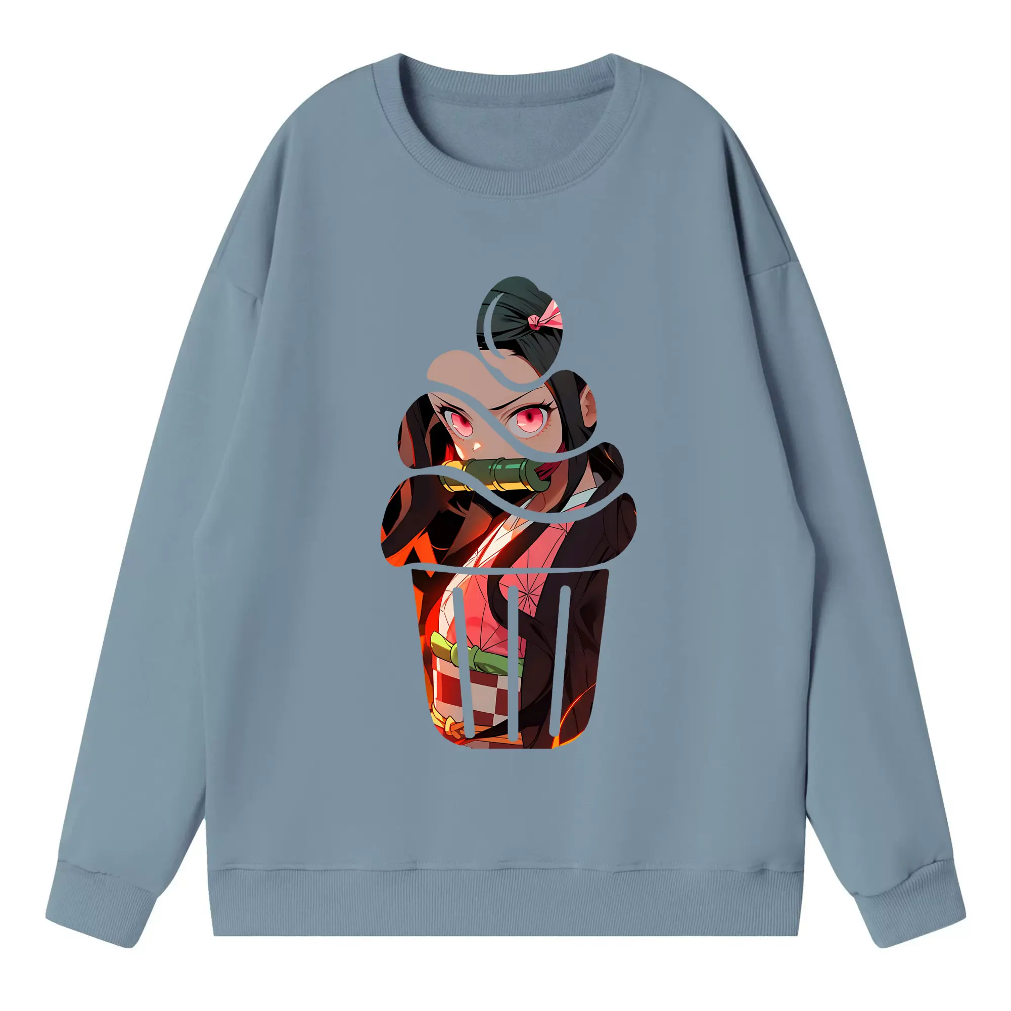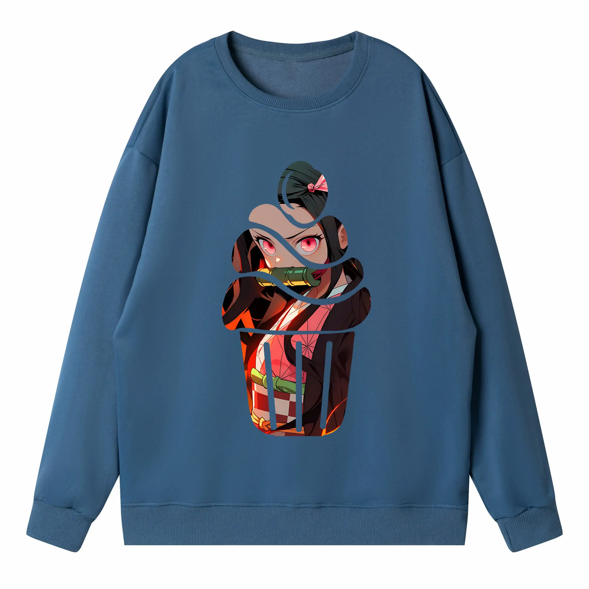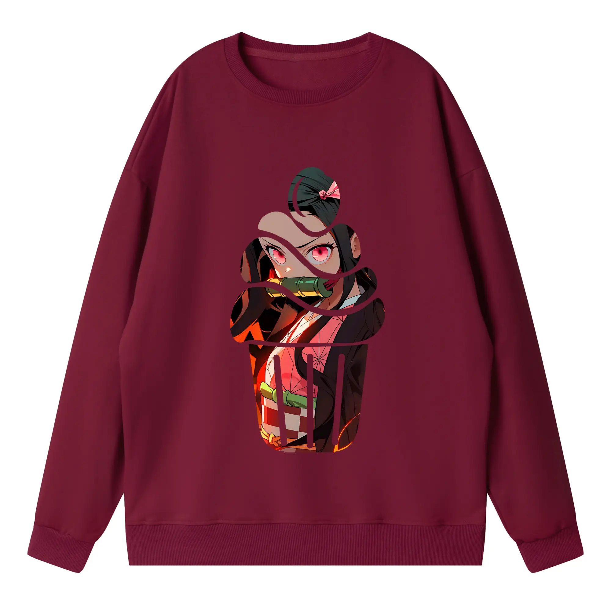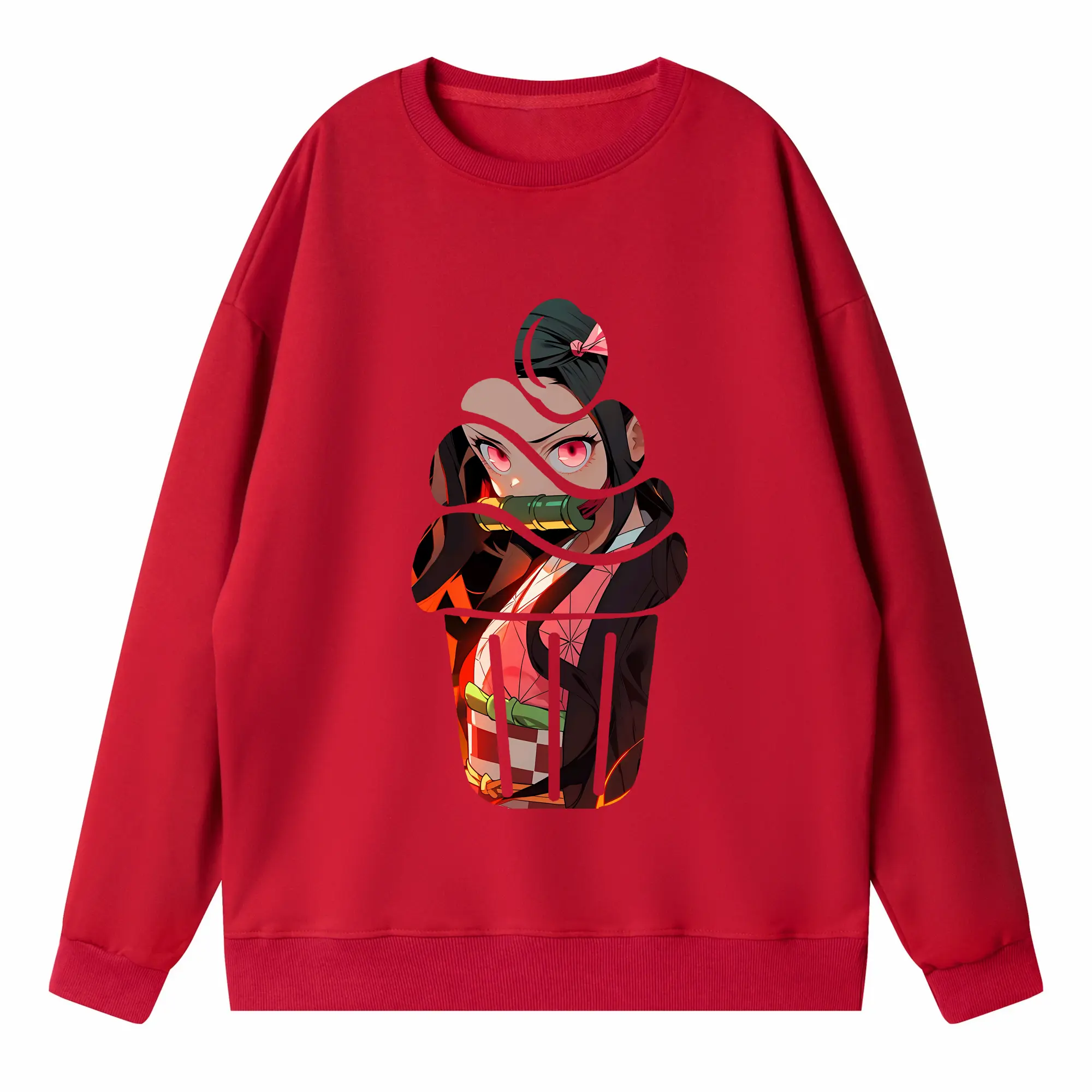 鬼滅の刃 グッズ,竈門 禰豆子 - 高品質 クルーネック スウェット ・ コットン59% ポリエステル41% ・ ユニセックス 長袖 トレーナー ・ カジュアル デイリー スポーツ 散歩用