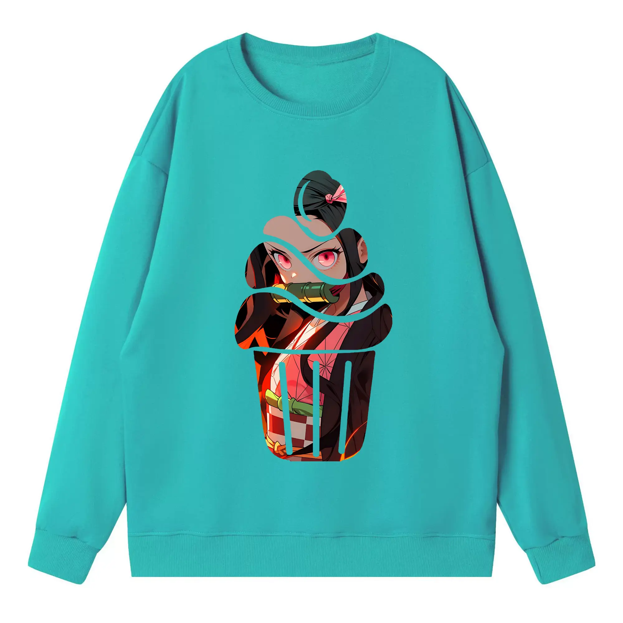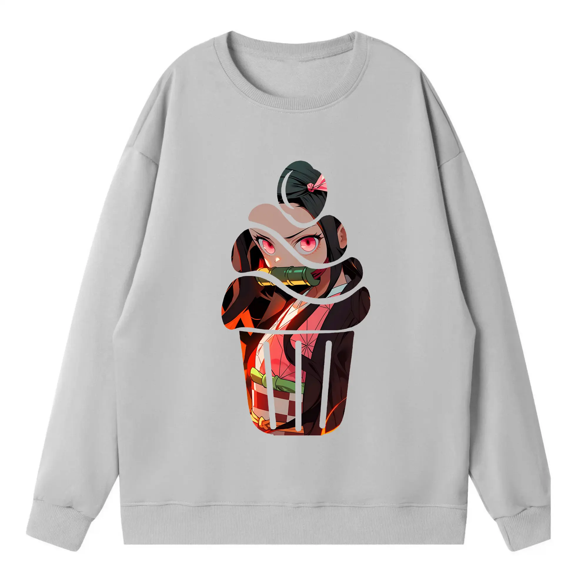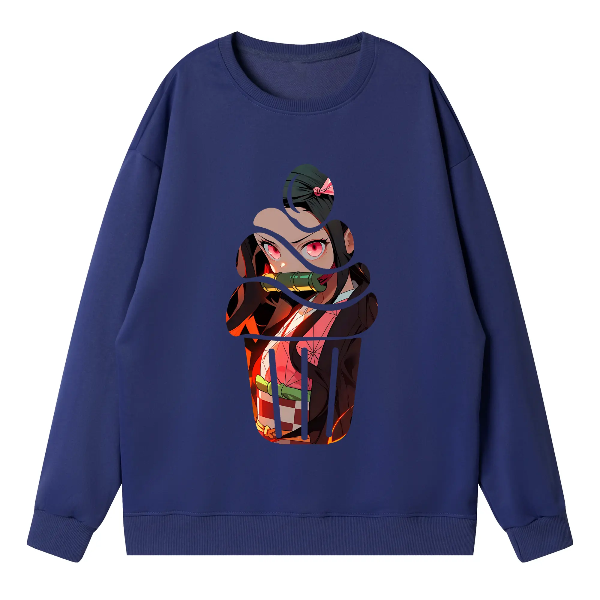 鬼滅の刃 グッズ,竈門 禰豆子 - 高品質 クルーネック スウェット ・ コットン59% ポリエステル41% ・ ユニセックス 長袖 トレーナー ・ カジュアル デイリー スポーツ 散歩用
