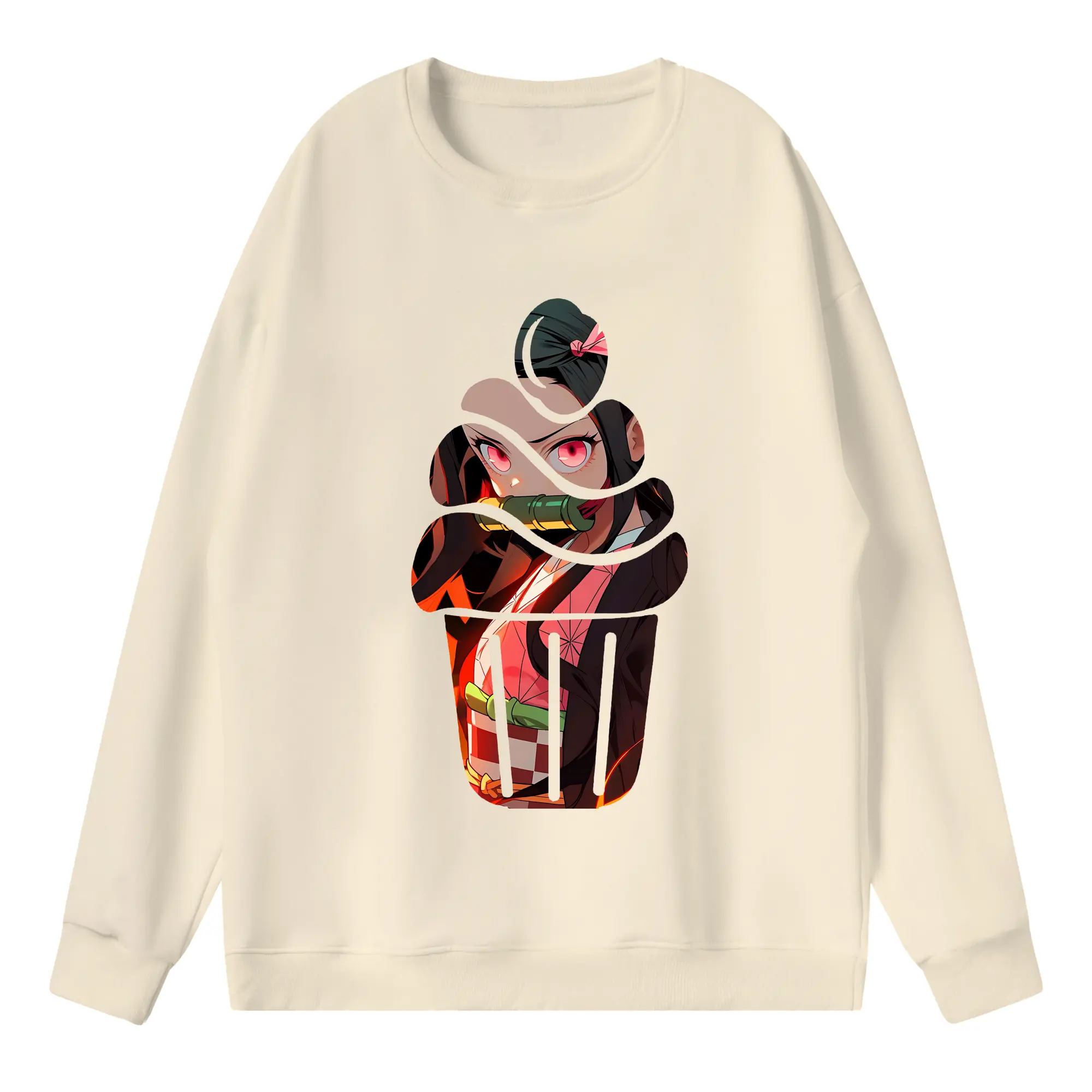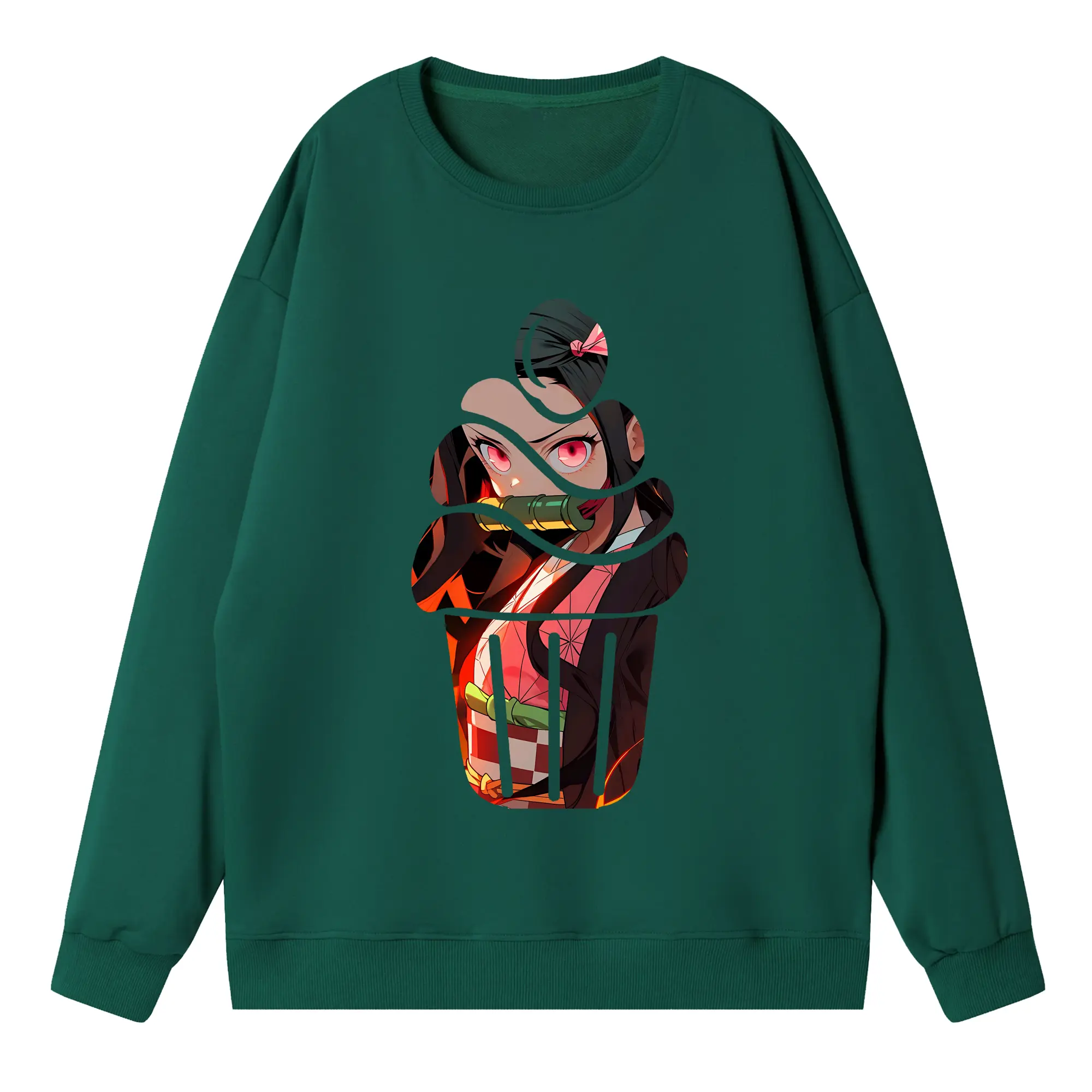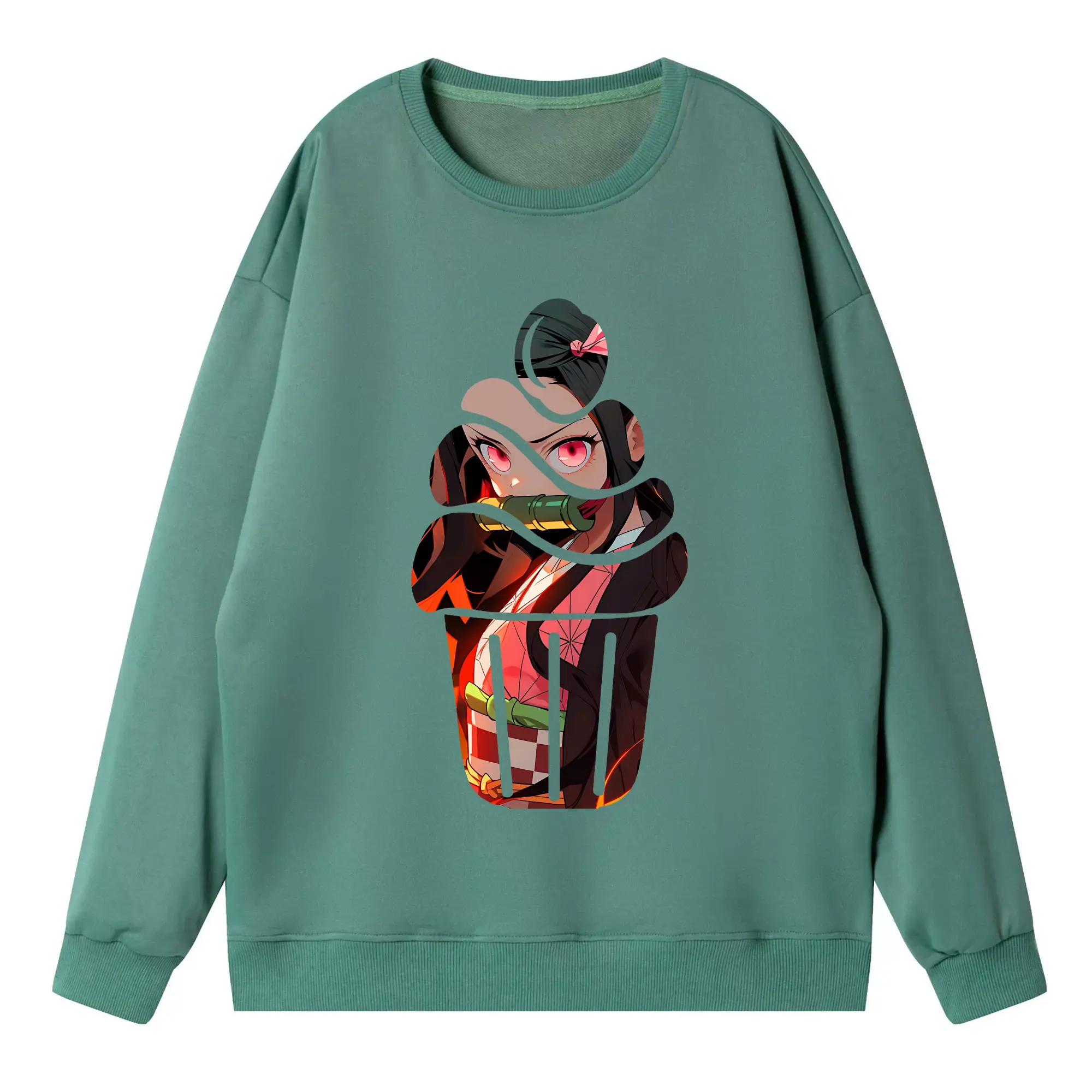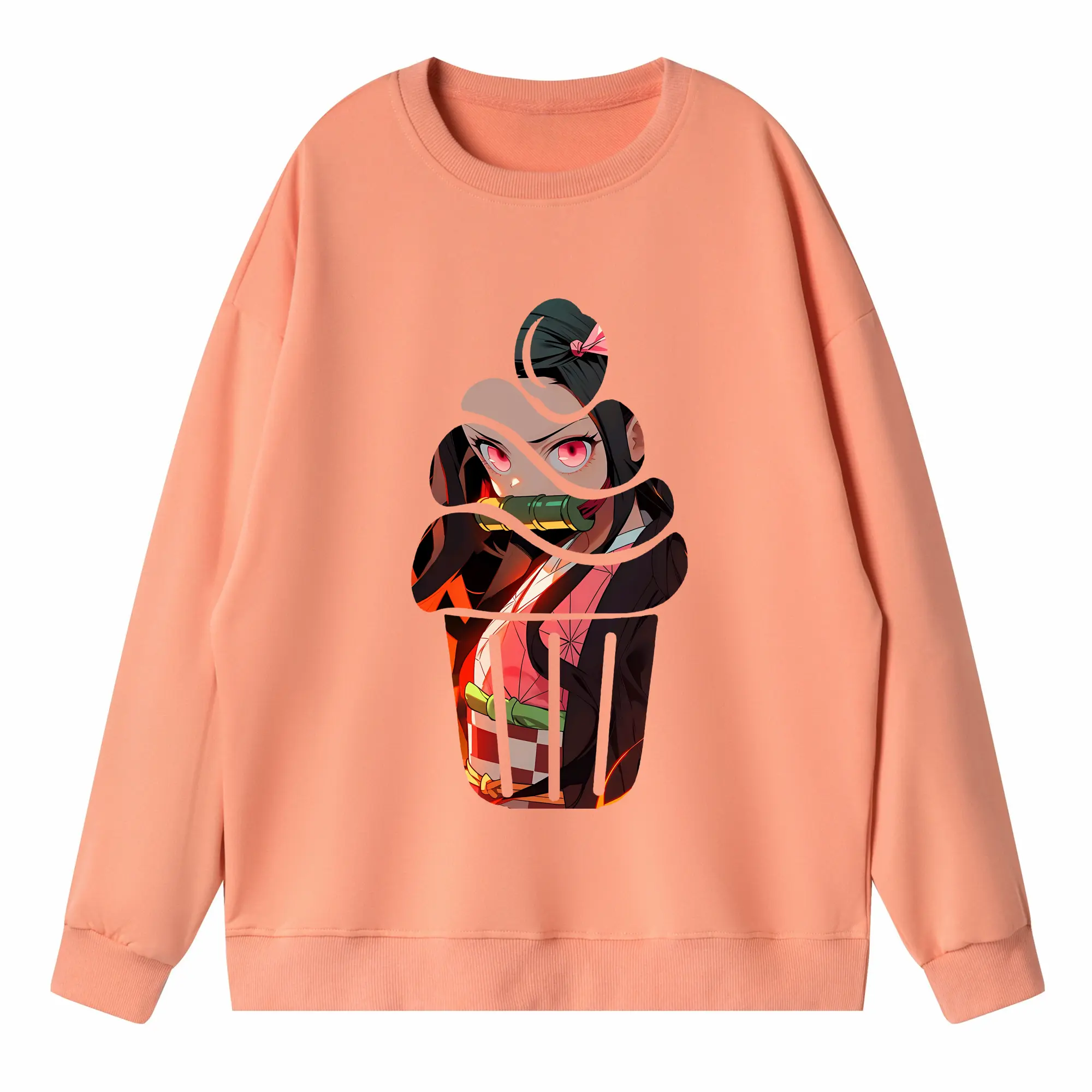 鬼滅の刃 グッズ,竈門 禰豆子 - 高品質 クルーネック スウェット ・ コットン59% ポリエステル41% ・ ユニセックス 長袖 トレーナー ・ カジュアル デイリー スポーツ 散歩用
