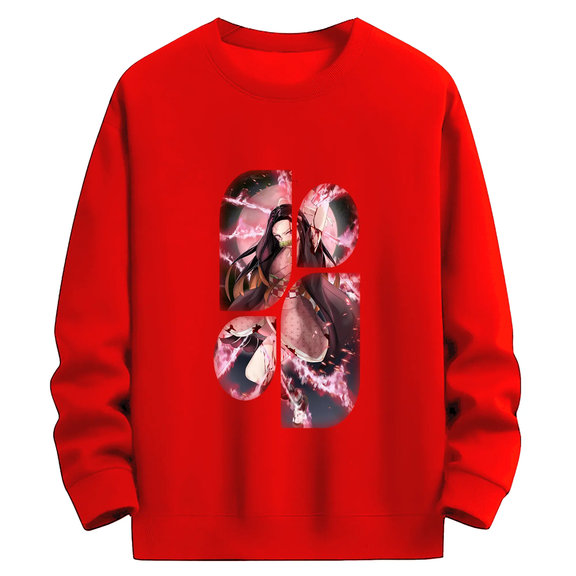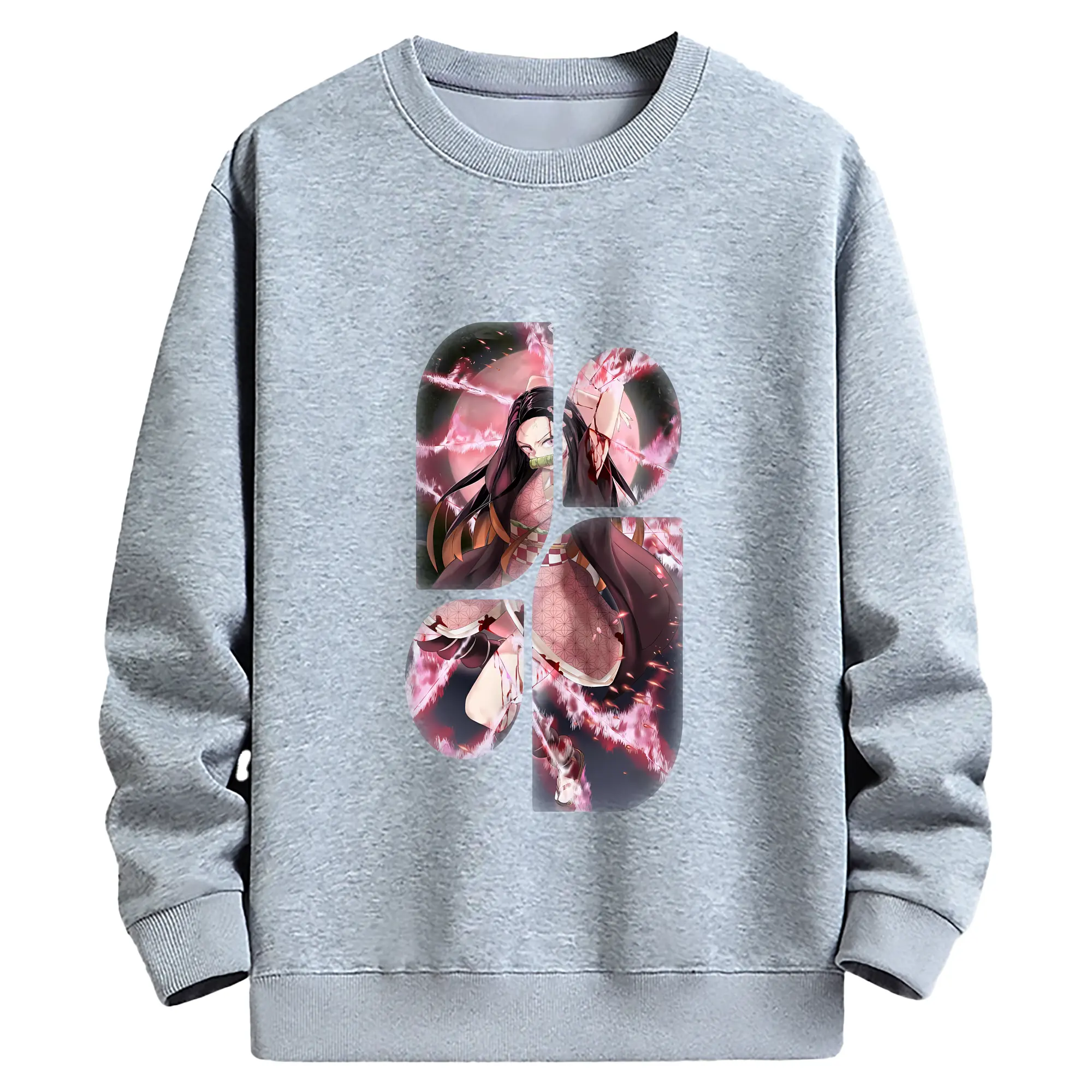 鬼滅の刃 グッズ,竈門 禰豆子 - 薄手 クルーネック スウェット 裏毛260g · ポリエステル 春秋向け カジュアル 男女兼用 · トレーナー デイリー スポーツ 散歩に最適