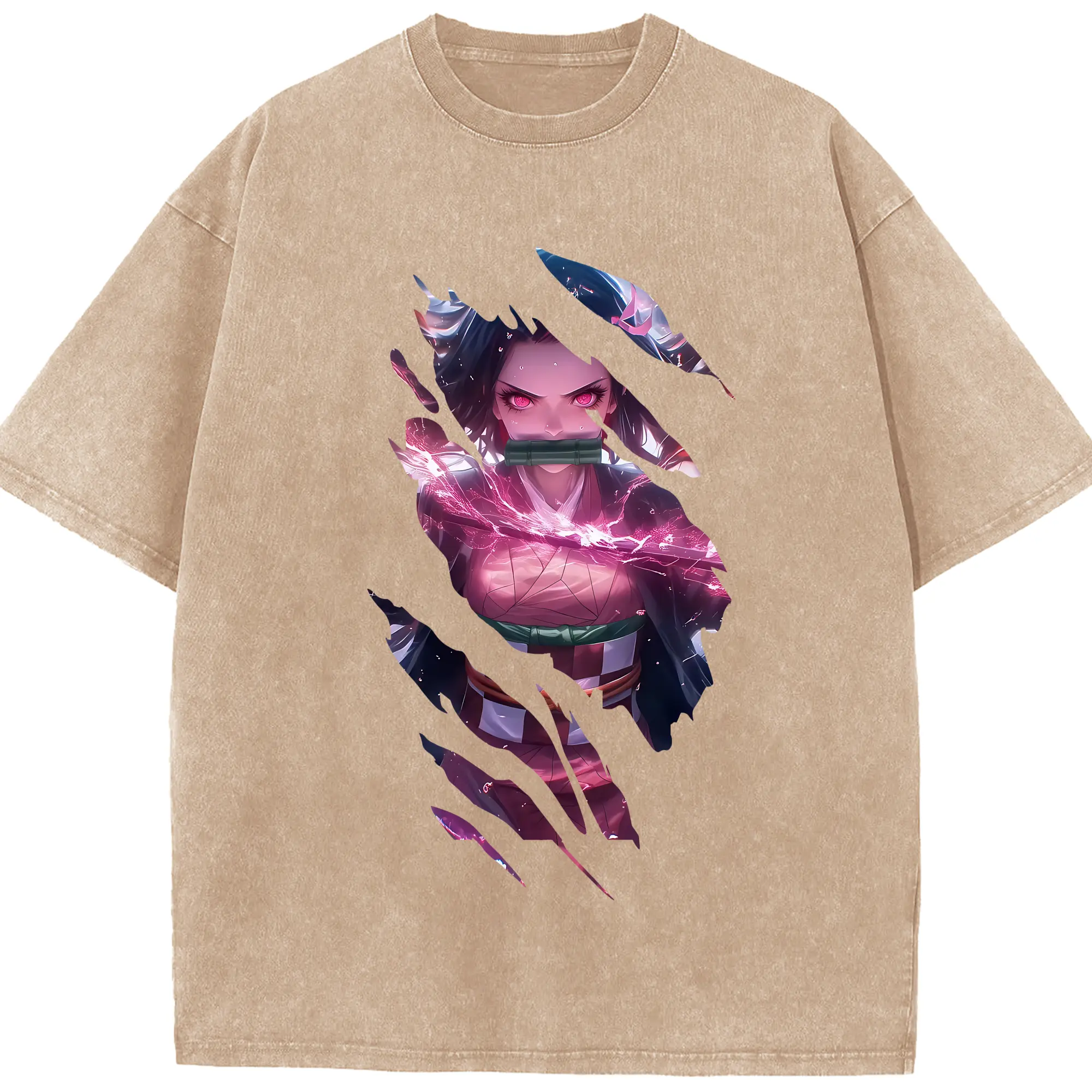 鬼滅の刃 グッズ,竈門 禰豆子 - 綿100% 半袖Tシャツ ・ バックプリント ・ 快適 通気性 ・ 日常使い 散歩 スポーツ用