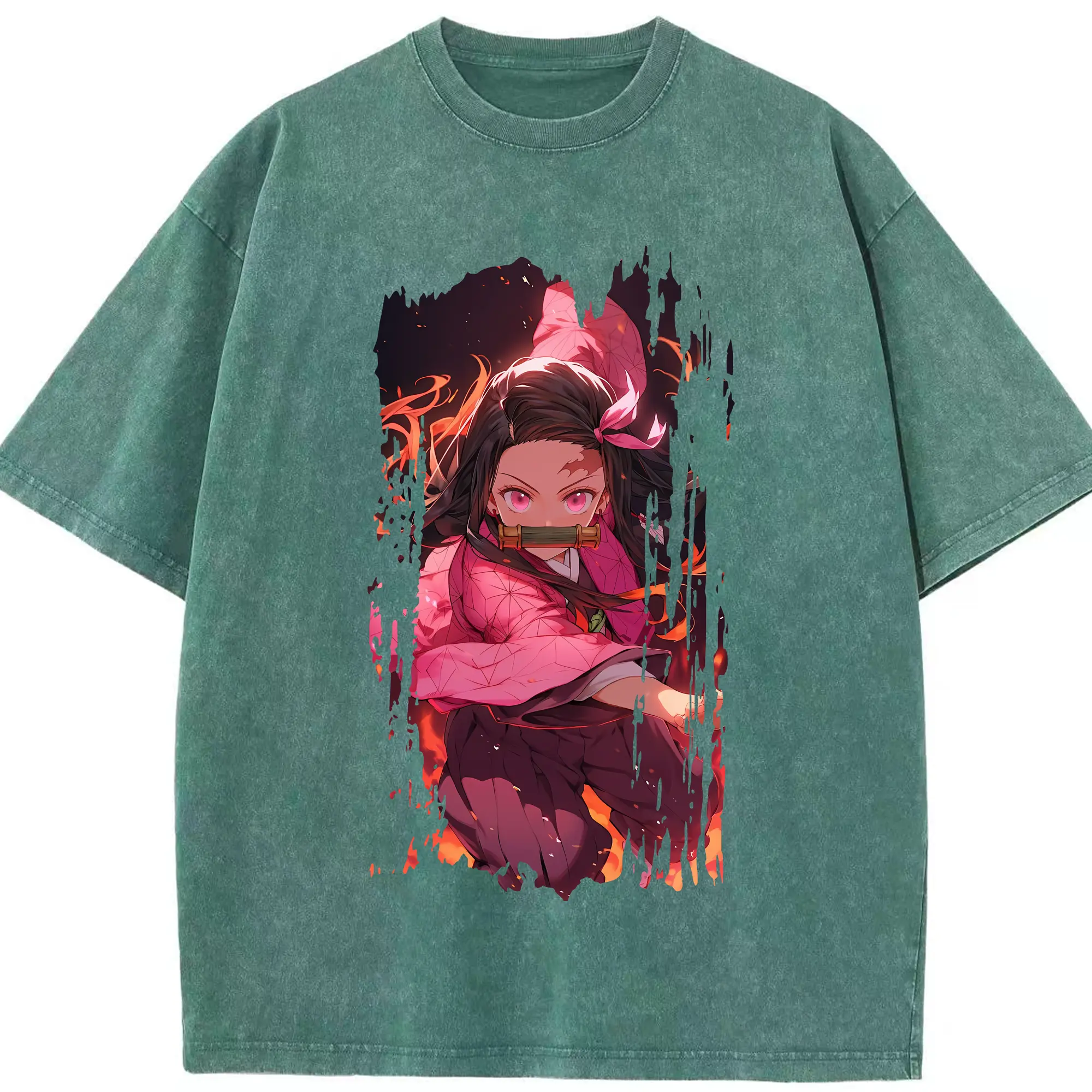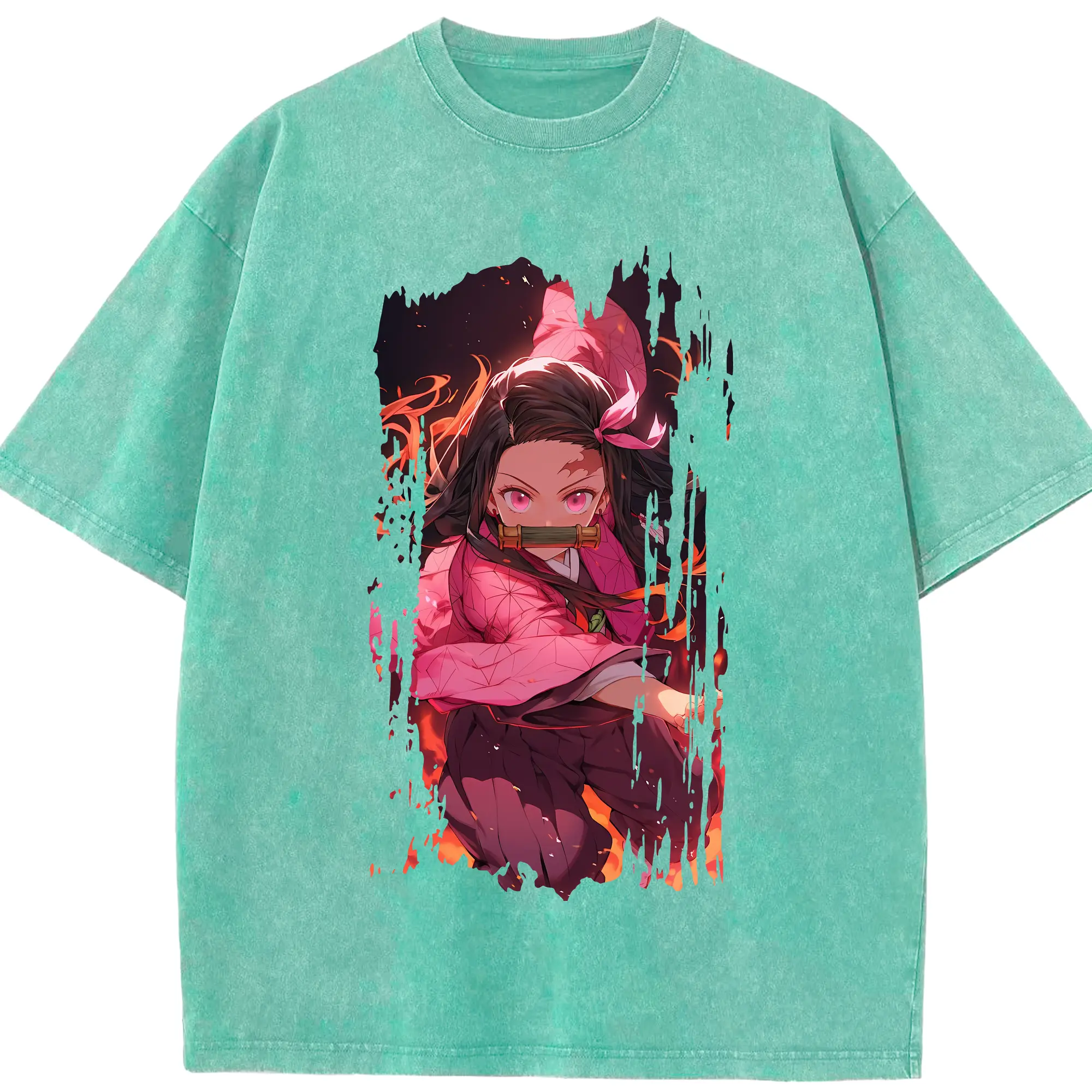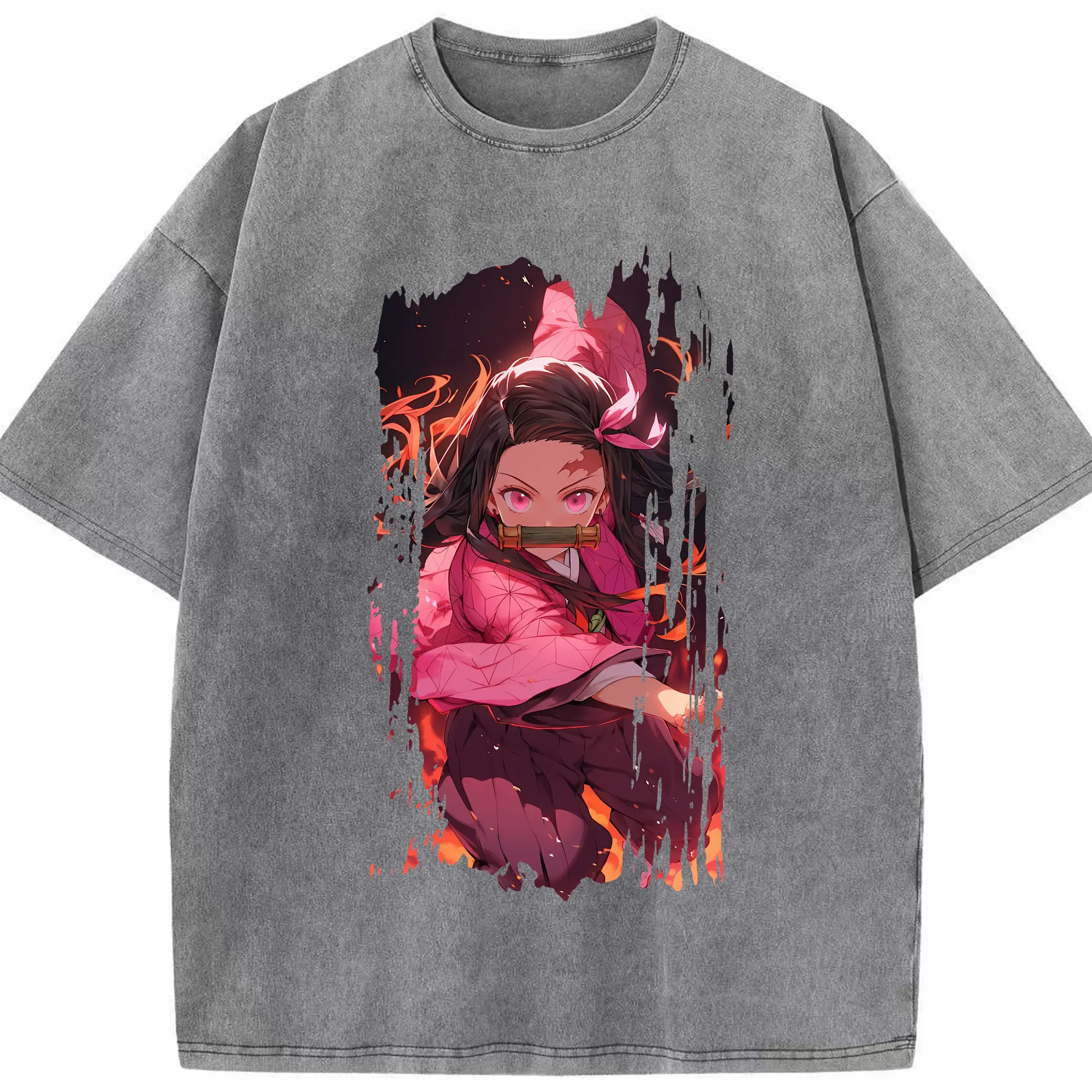 鬼滅の刃 グッズ,竈門 禰豆子 - 綿100% 半袖Tシャツ ・ フロントプリント ・ 快適 通気性 ・ 日常使い 散歩 スポーツ用
