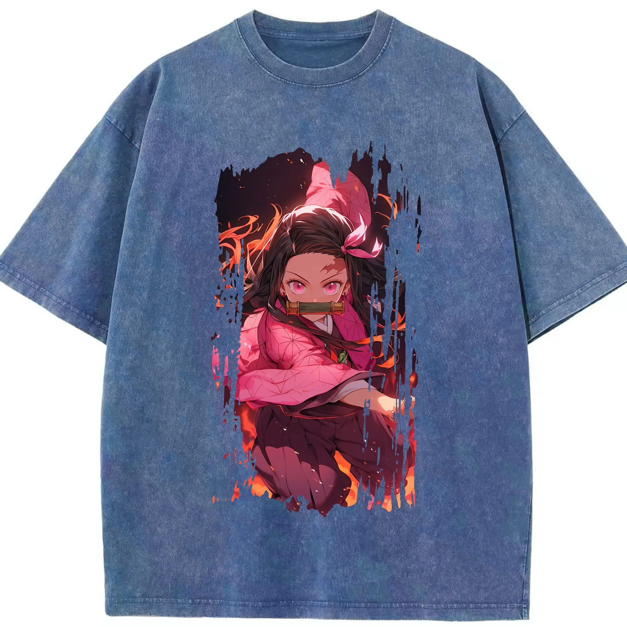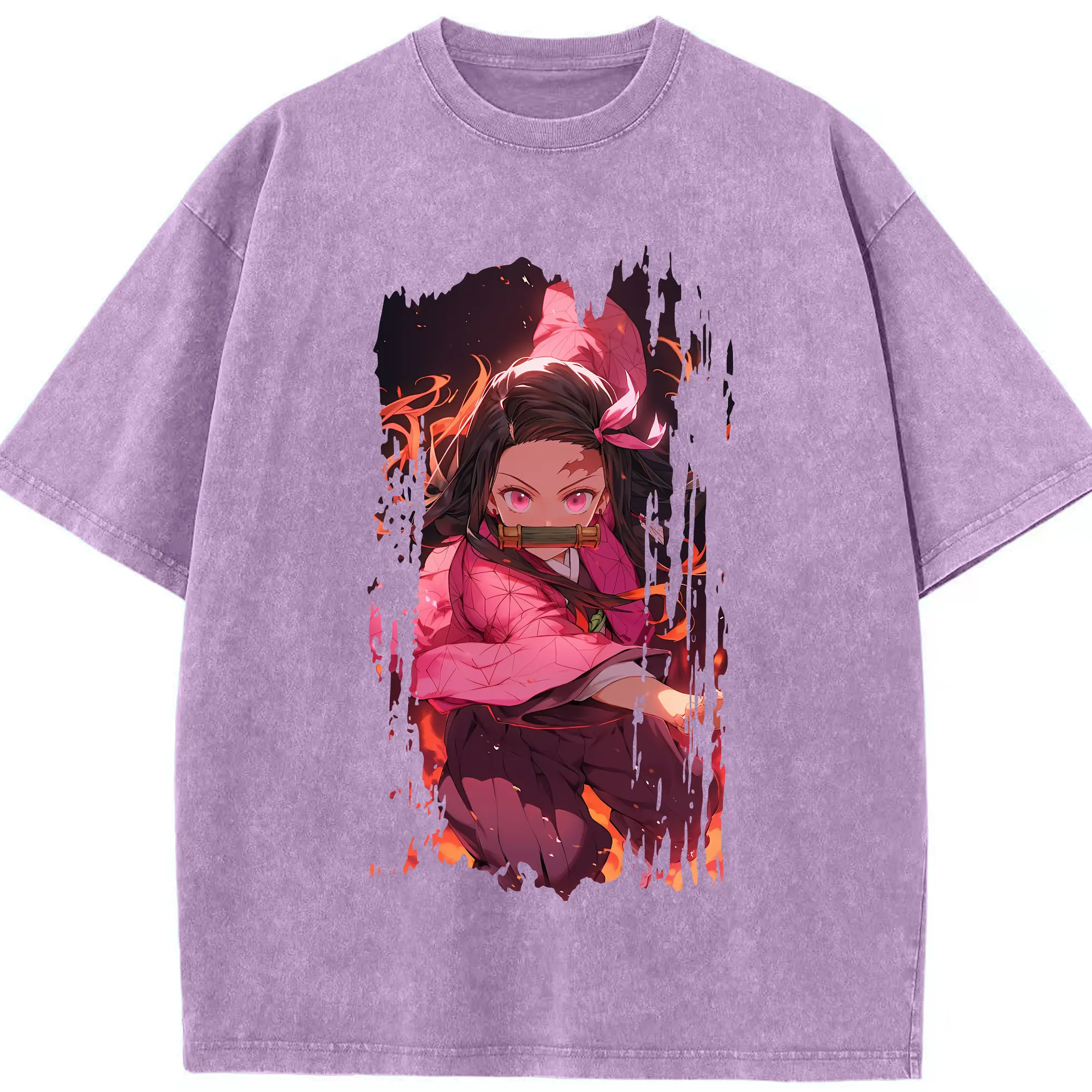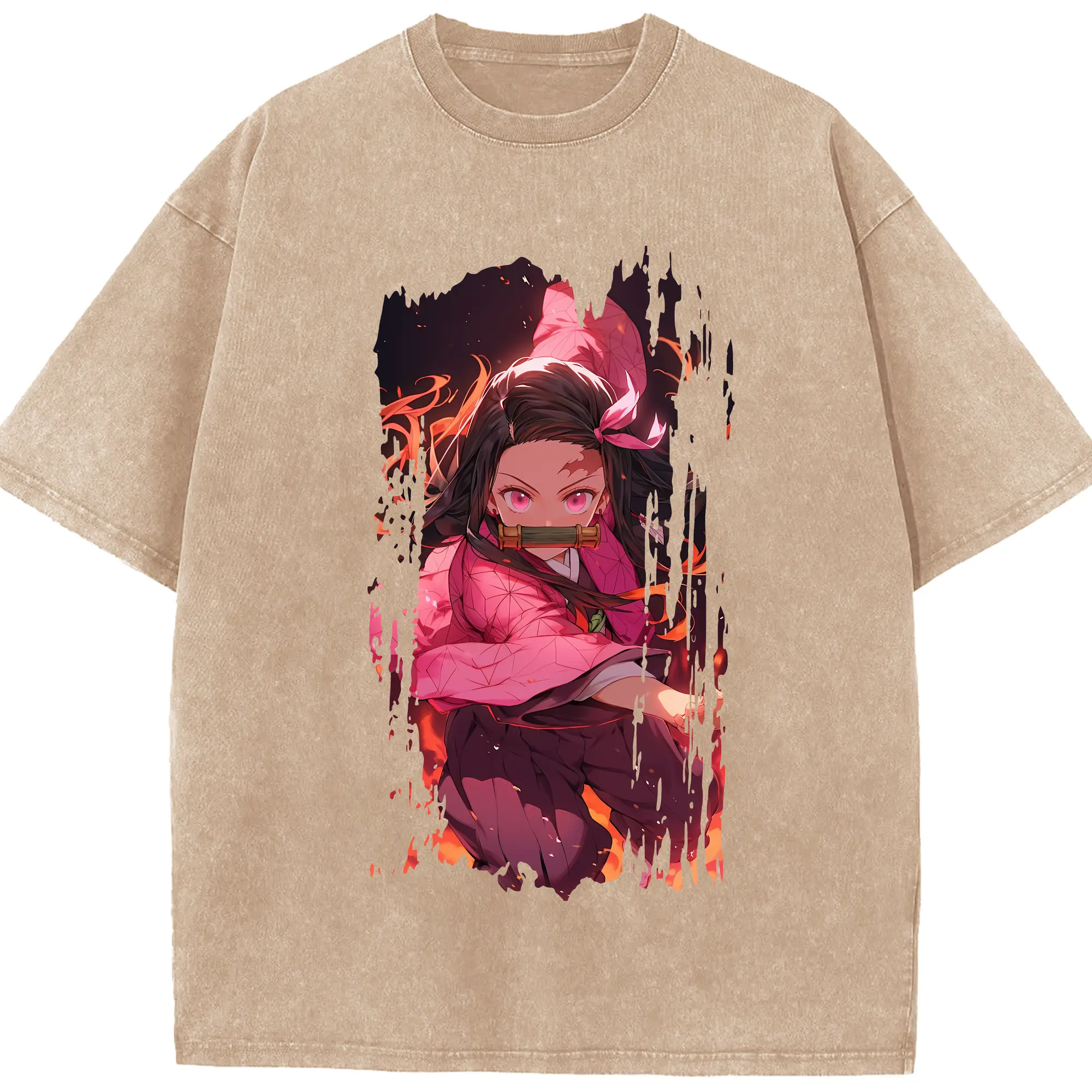 鬼滅の刃 グッズ,竈門 禰豆子 - 綿100% 半袖Tシャツ ・ フロントプリント ・ 快適 通気性 ・ 日常使い 散歩 スポーツ用