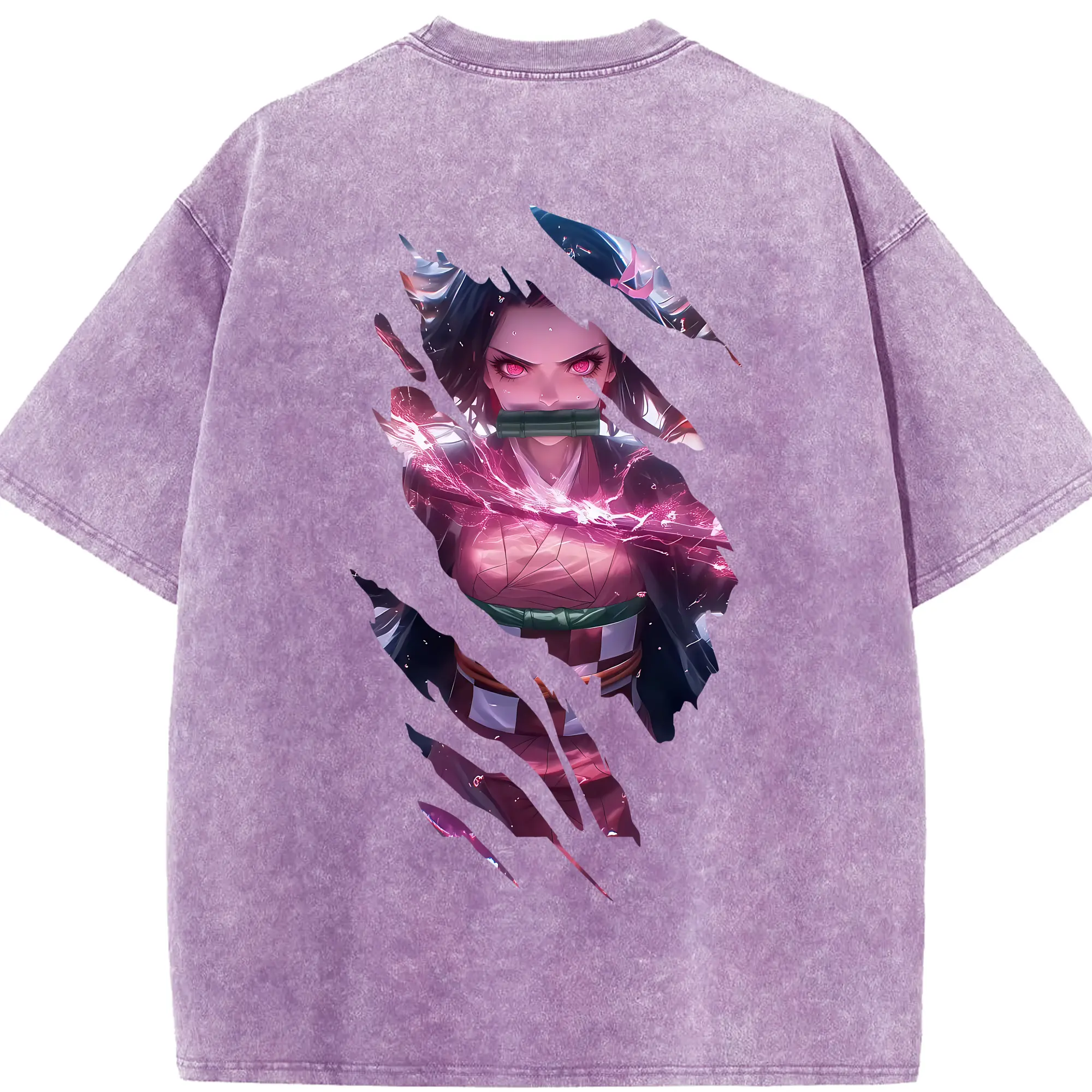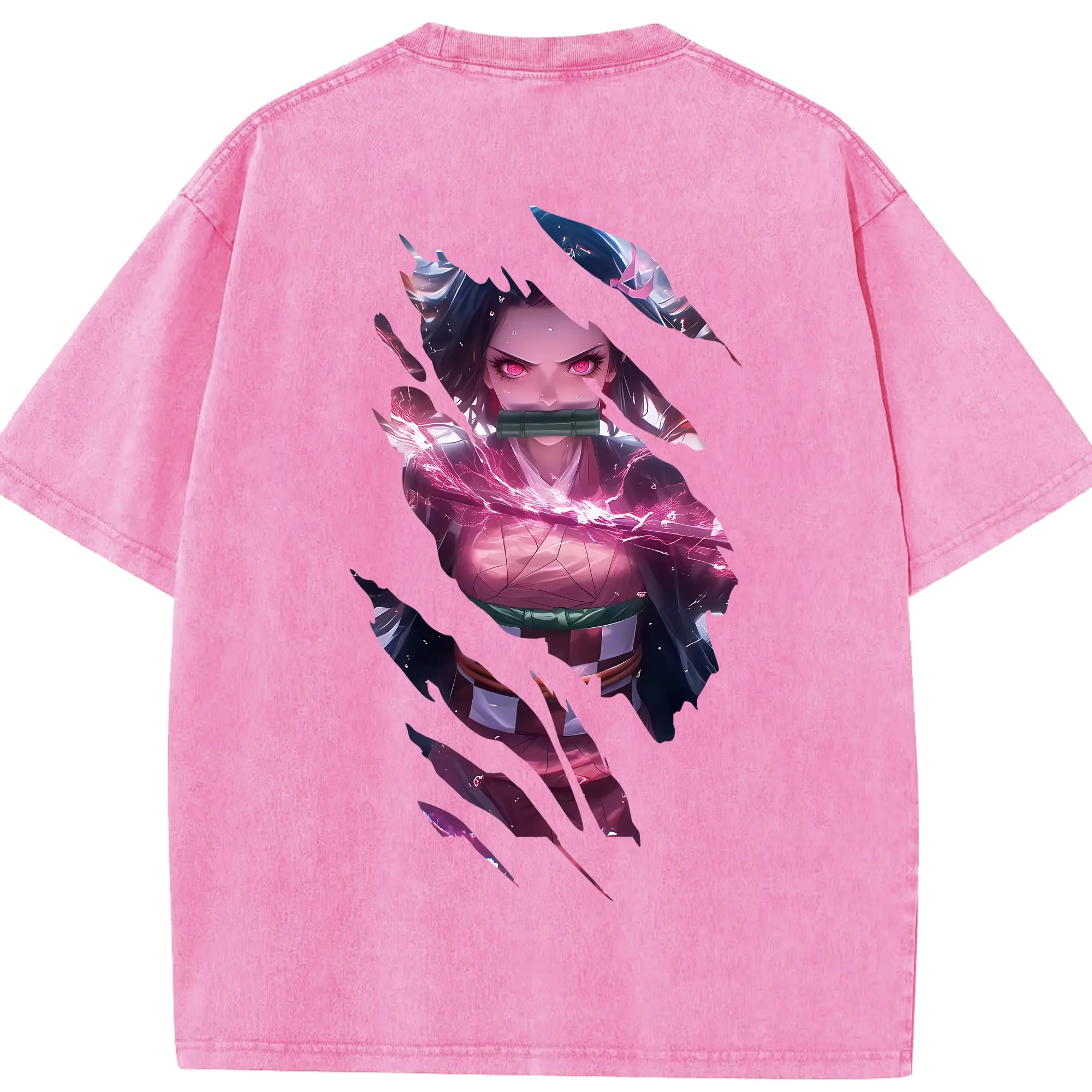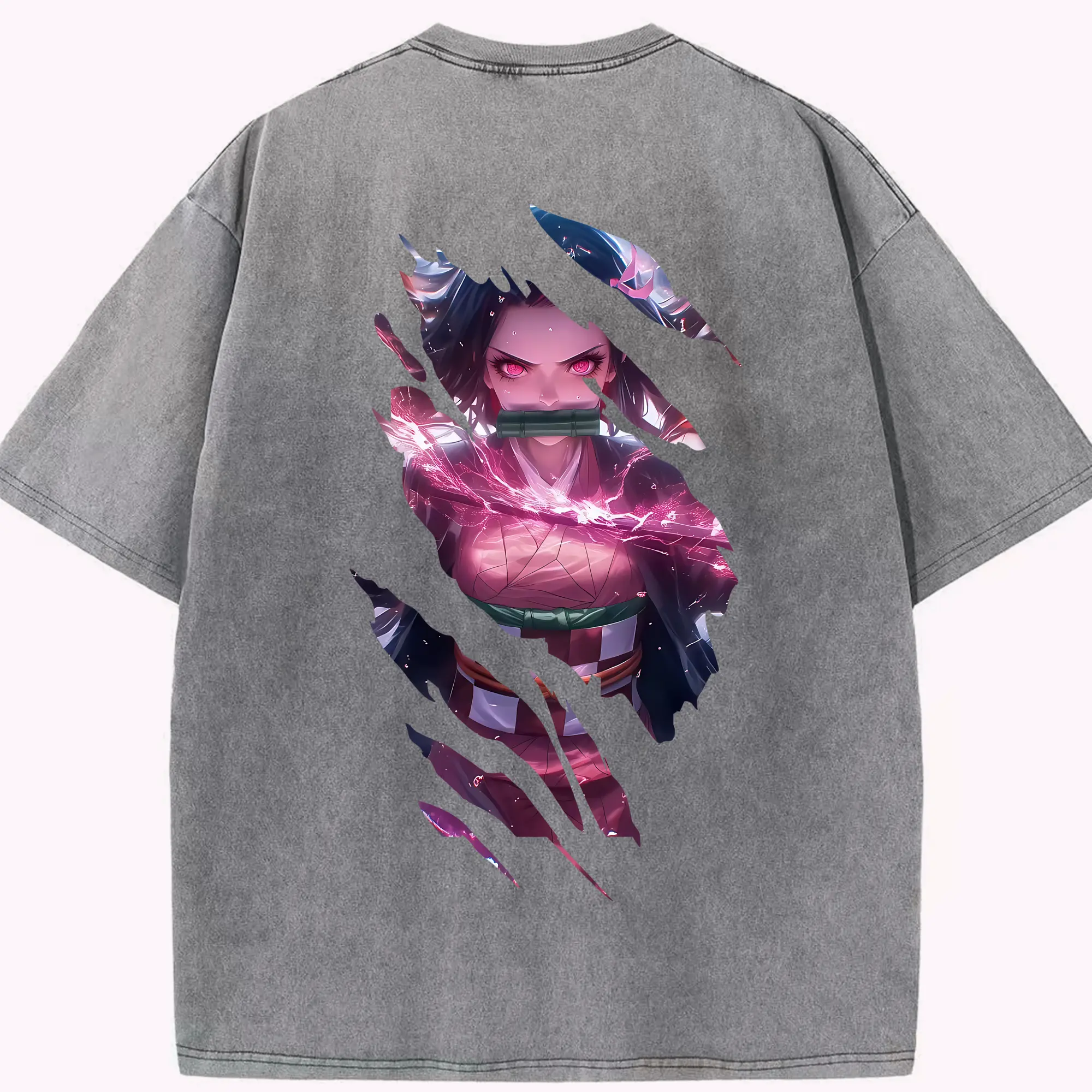 鬼滅の刃 グッズ,竈門 禰豆子 - 綿100% 半袖Tシャツ ・ バックプリント ・ 快適 通気性 ・ 日常使い 散歩 スポーツ用