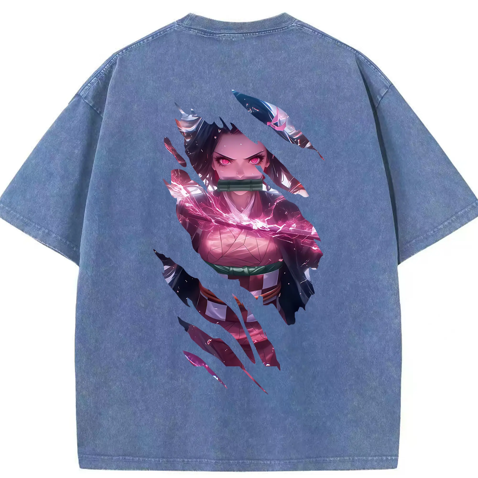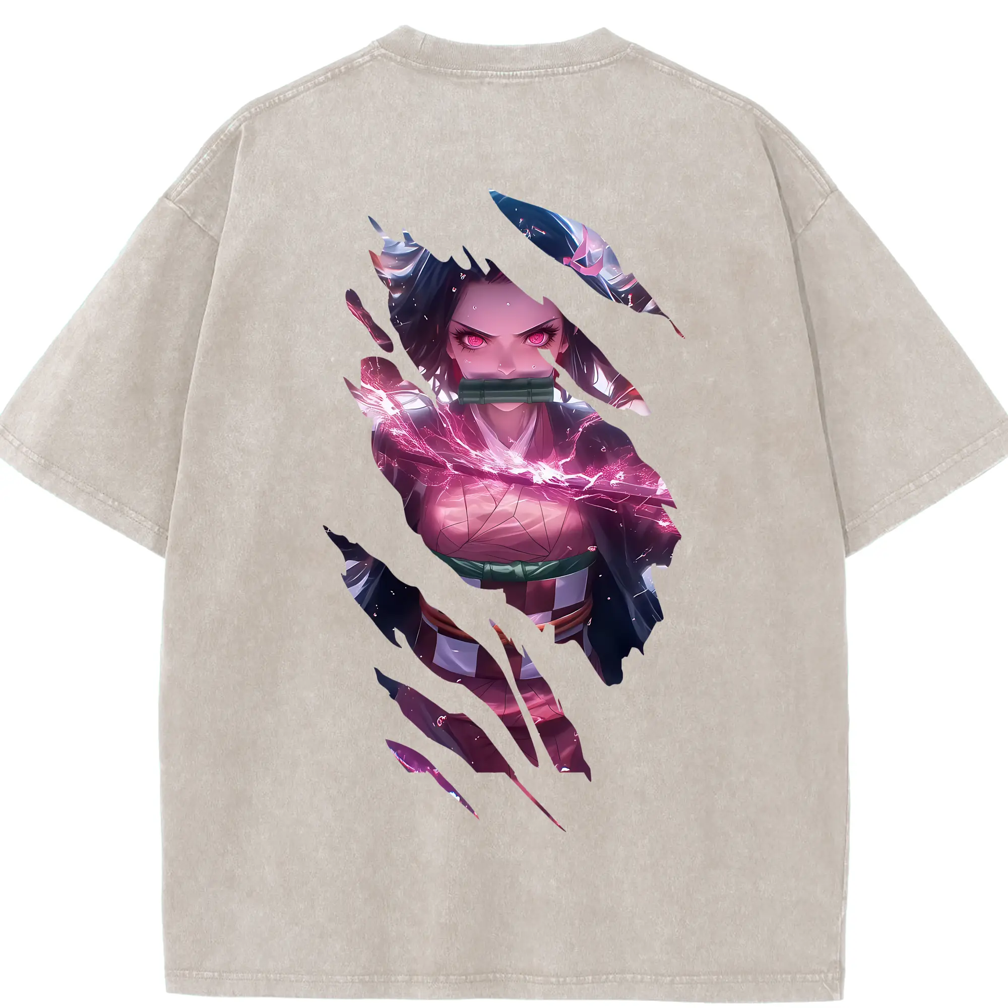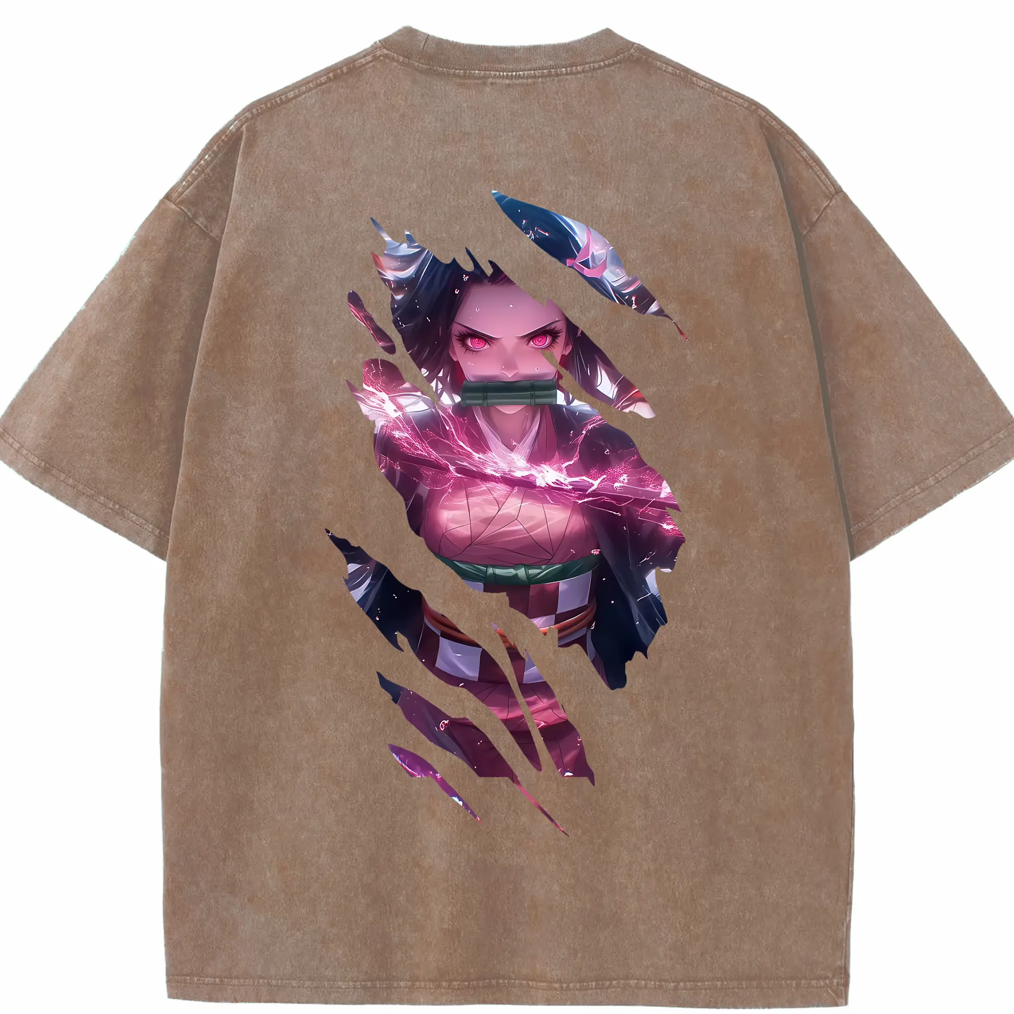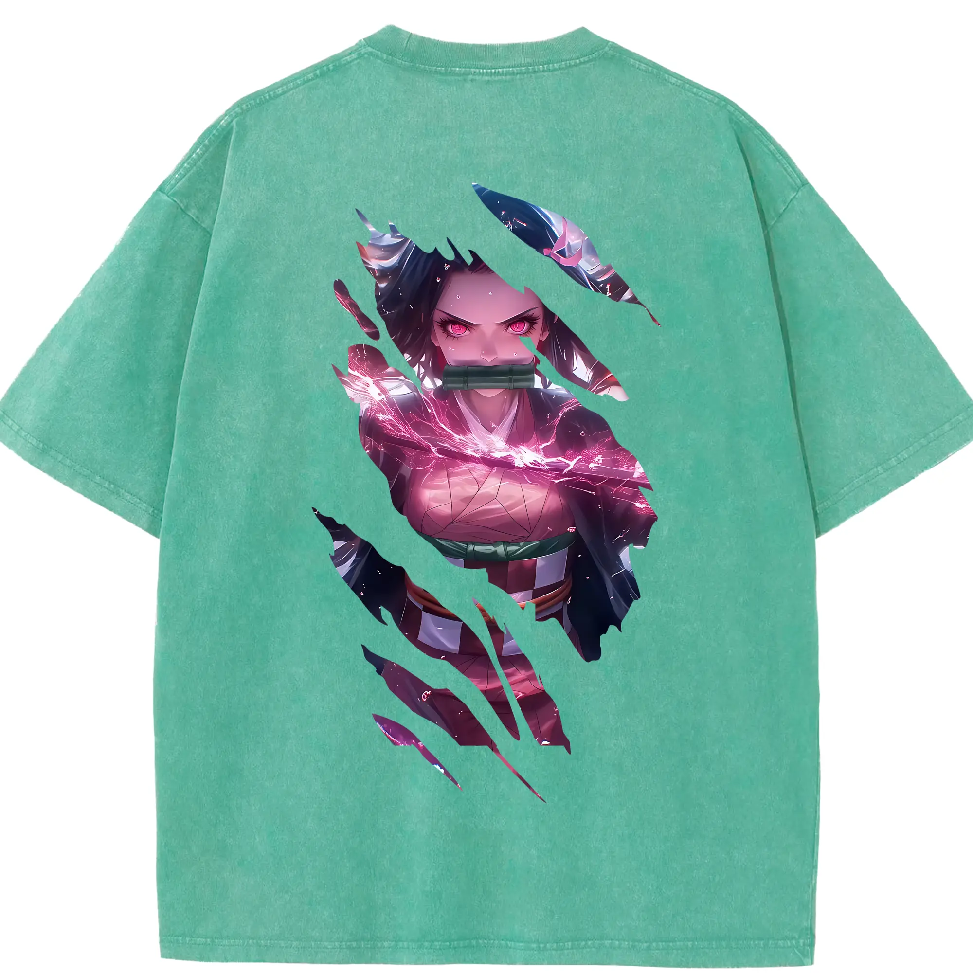鬼滅の刃 グッズ,竈門 禰豆子 - 綿100% 半袖Tシャツ ・ バックプリント ・ 快適 通気性 ・ 日常使い 散歩 スポーツ用