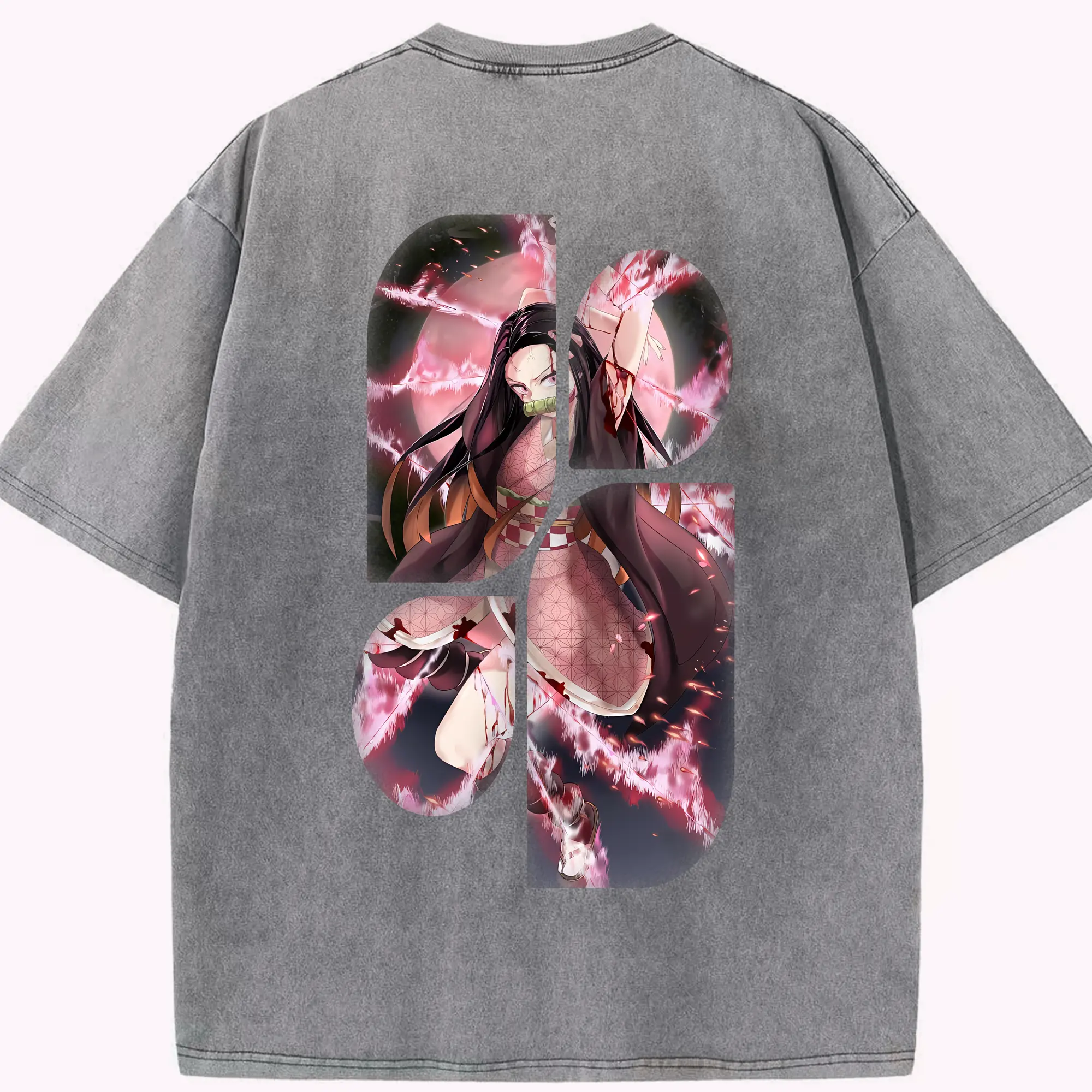 鬼滅の刃 グッズ,竈門 禰豆子 - 綿100% 半袖Tシャツ ・ バックプリント ・ 快適 通気性 ・ 日常使い 散歩 スポーツ用