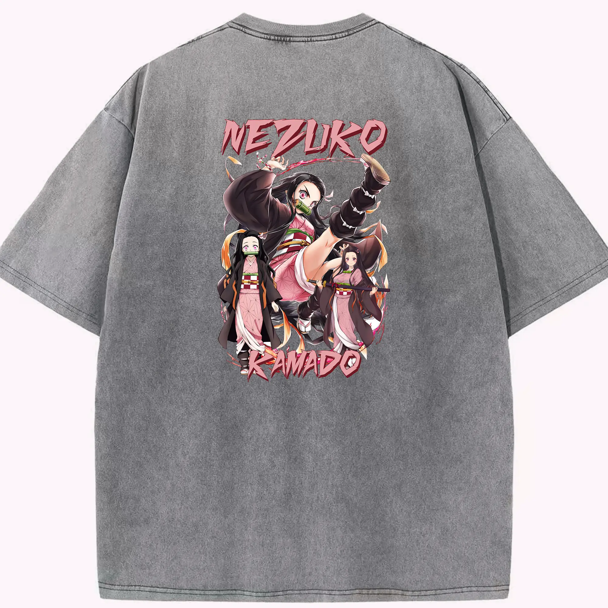 鬼滅の刃 グッズ,竈門 禰豆子 - 綿100% 半袖Tシャツ ・ バックプリント ・ 快適 通気性 ・ 日常使い 散歩 スポーツ用