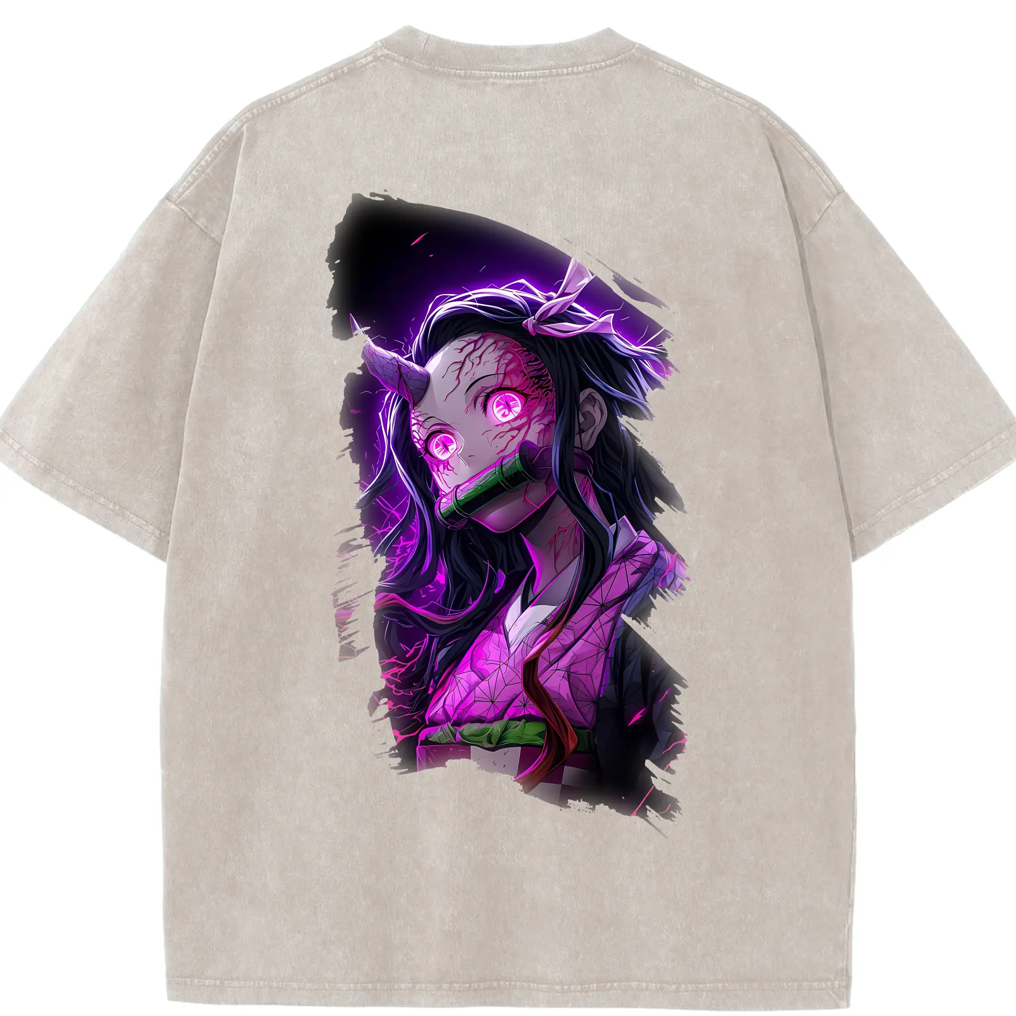 鬼滅の刃 グッズ,我妻 善逸 - 綿100% ヴィンテージ風 半袖Tシャツ ・ 背面プリント ・ 柔らか肌触り ・ 通気性 快適 ・ スポーツ カジュアル 外出用