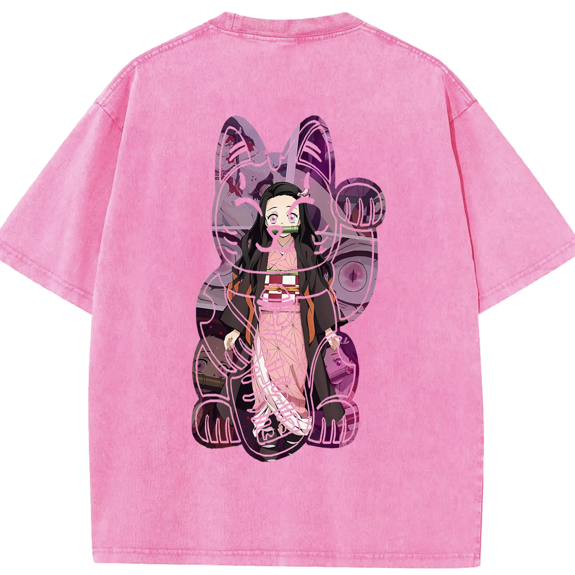 鬼滅の刃 グッズ,竈門 禰豆子 - 綿100% 半袖Tシャツ ・ バックプリント ・ 快適 通気性 ・ 日常使い 散歩 スポーツ用