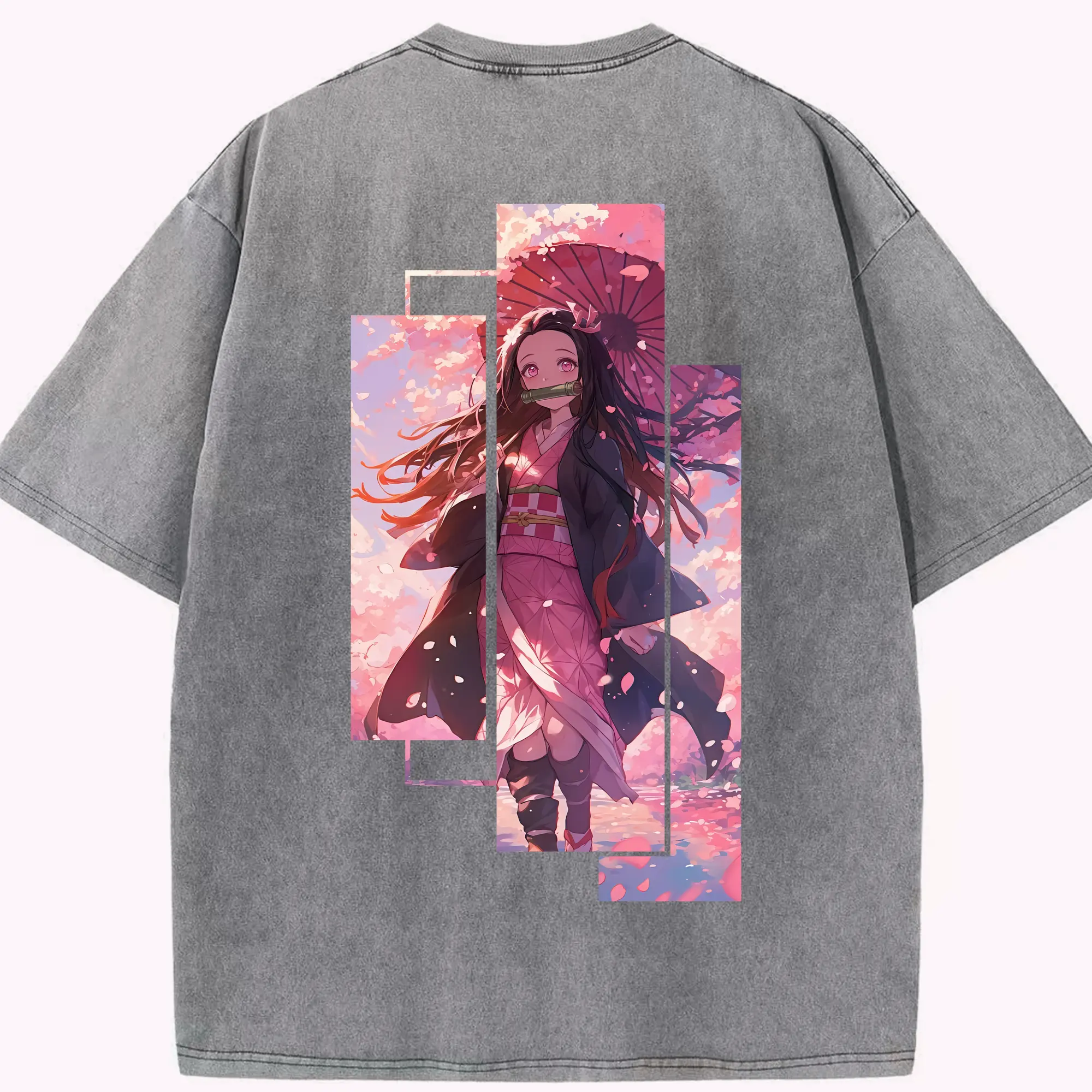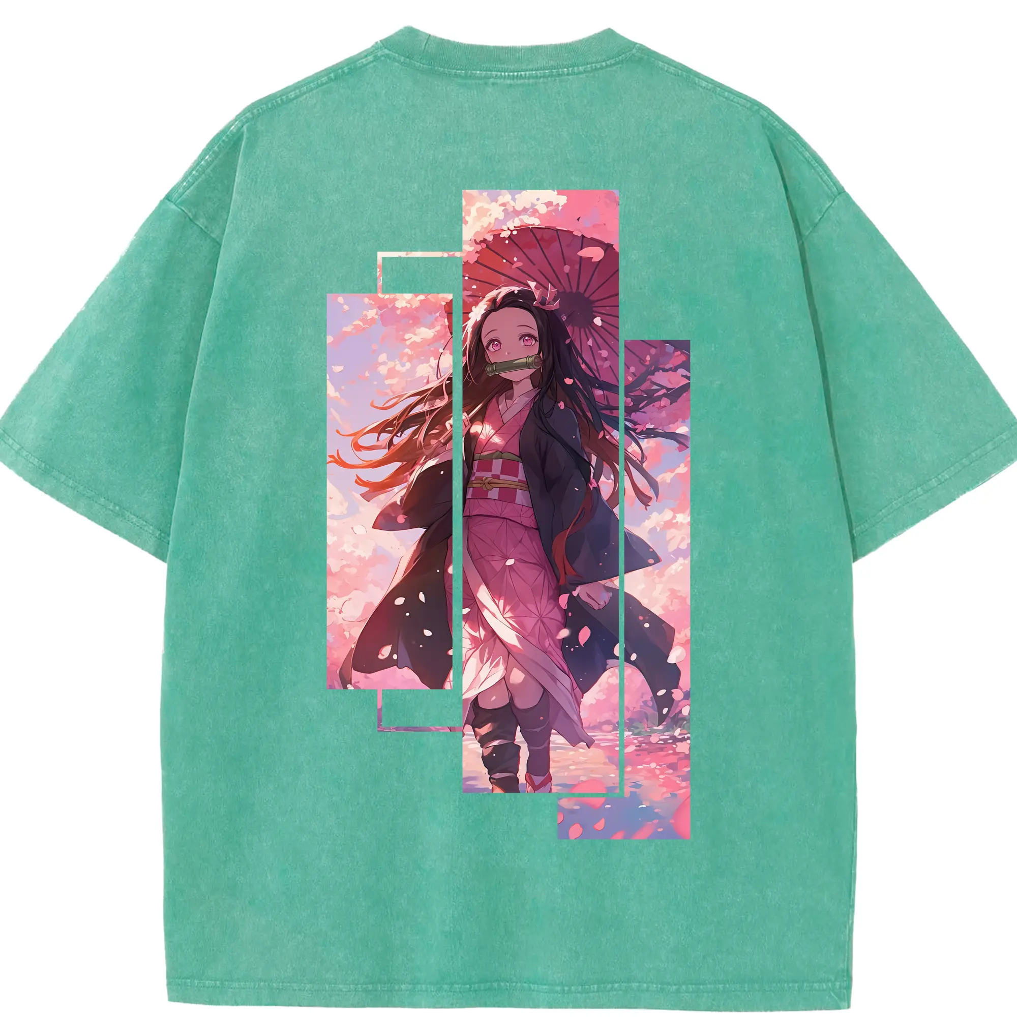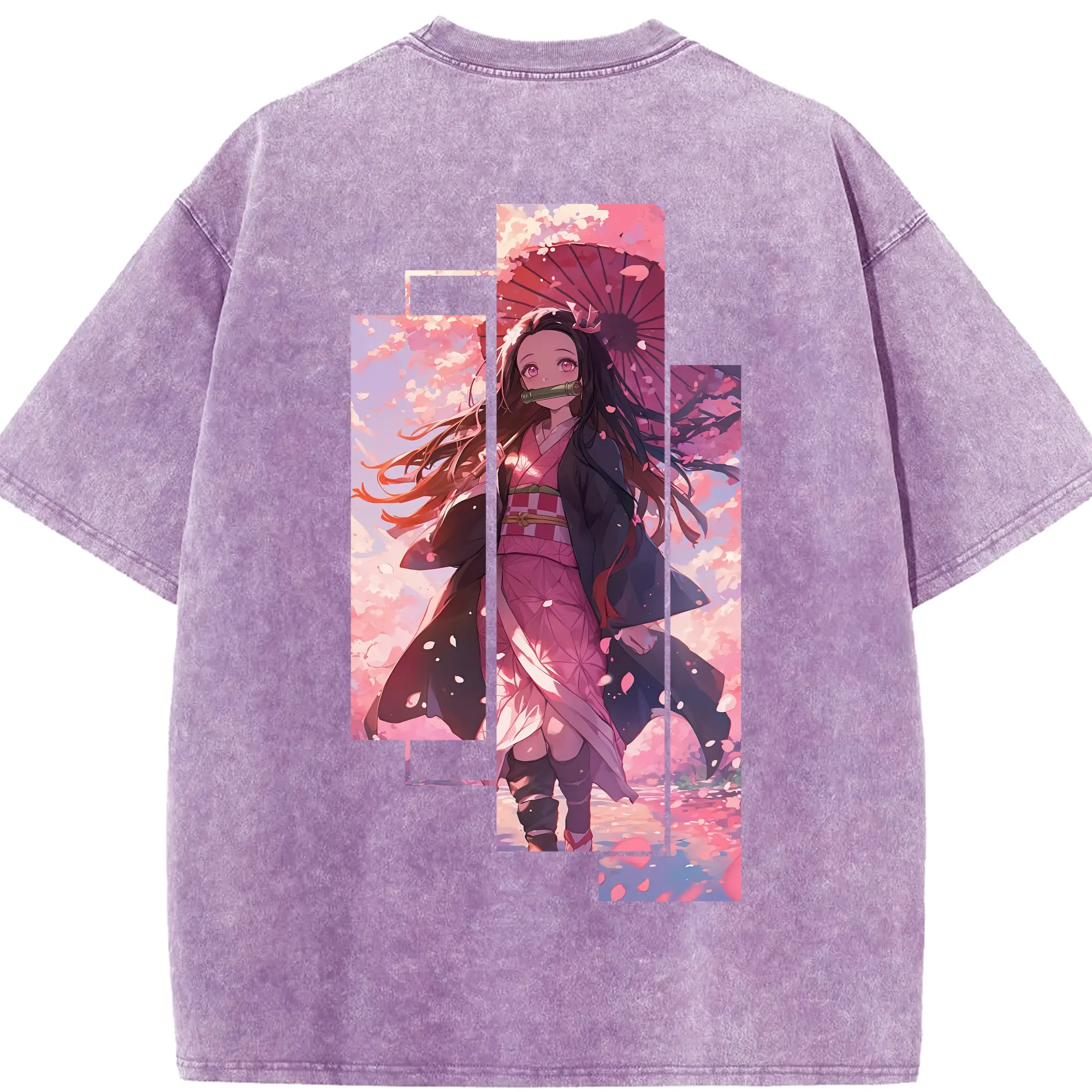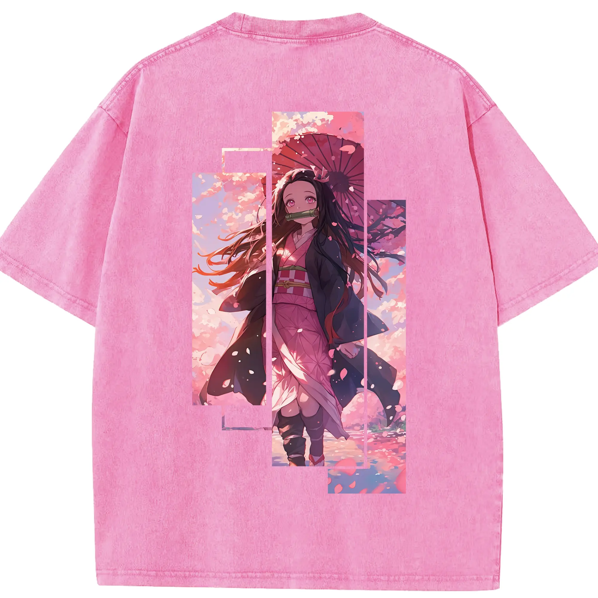 鬼滅の刃 グッズ,甘露寺 蜜璃 - 綿100% ヴィンテージ風 半袖Tシャツ ・ 背面プリント ・ 柔らか肌触り ・ 通気性 快適 ・ スポーツ カジュアル 外出用