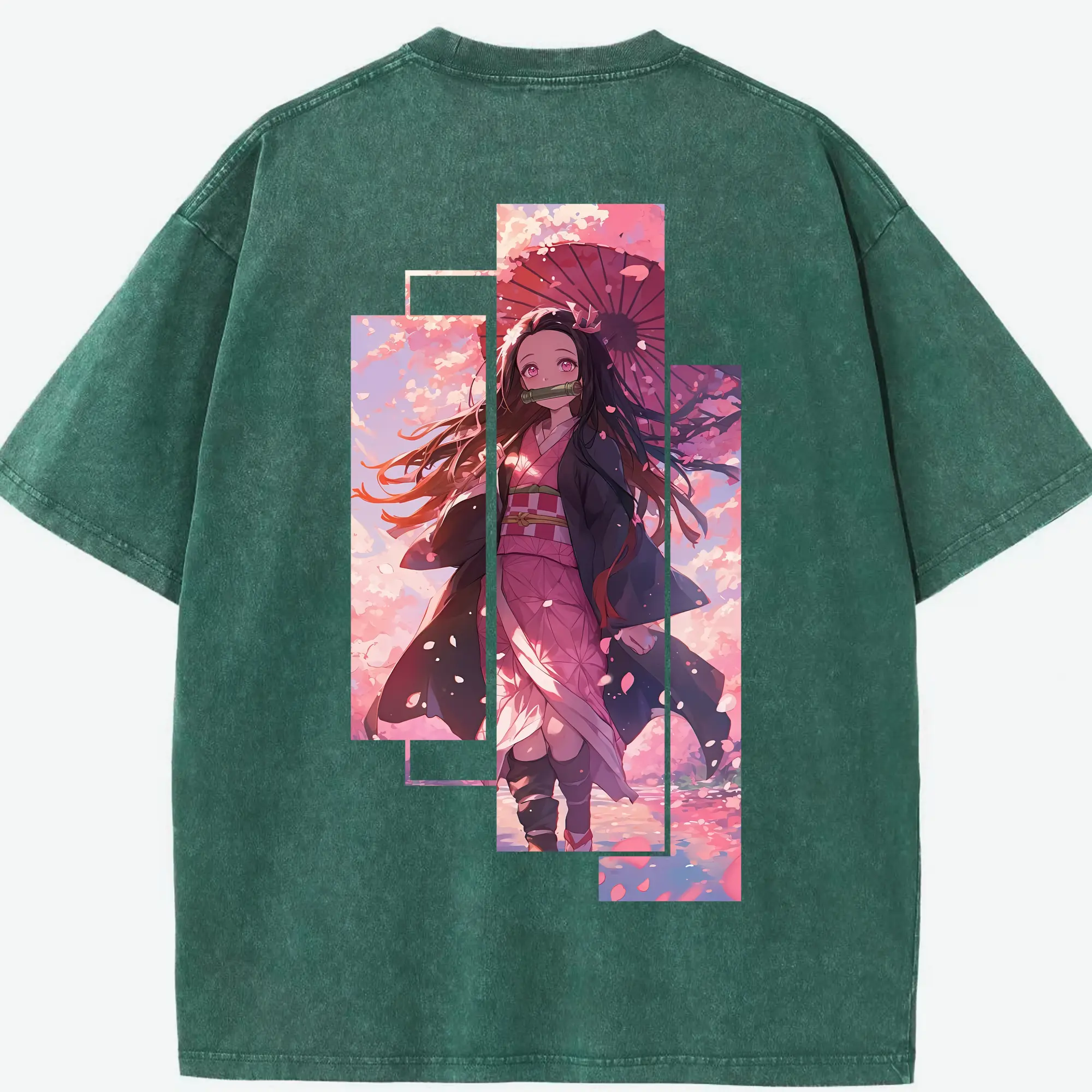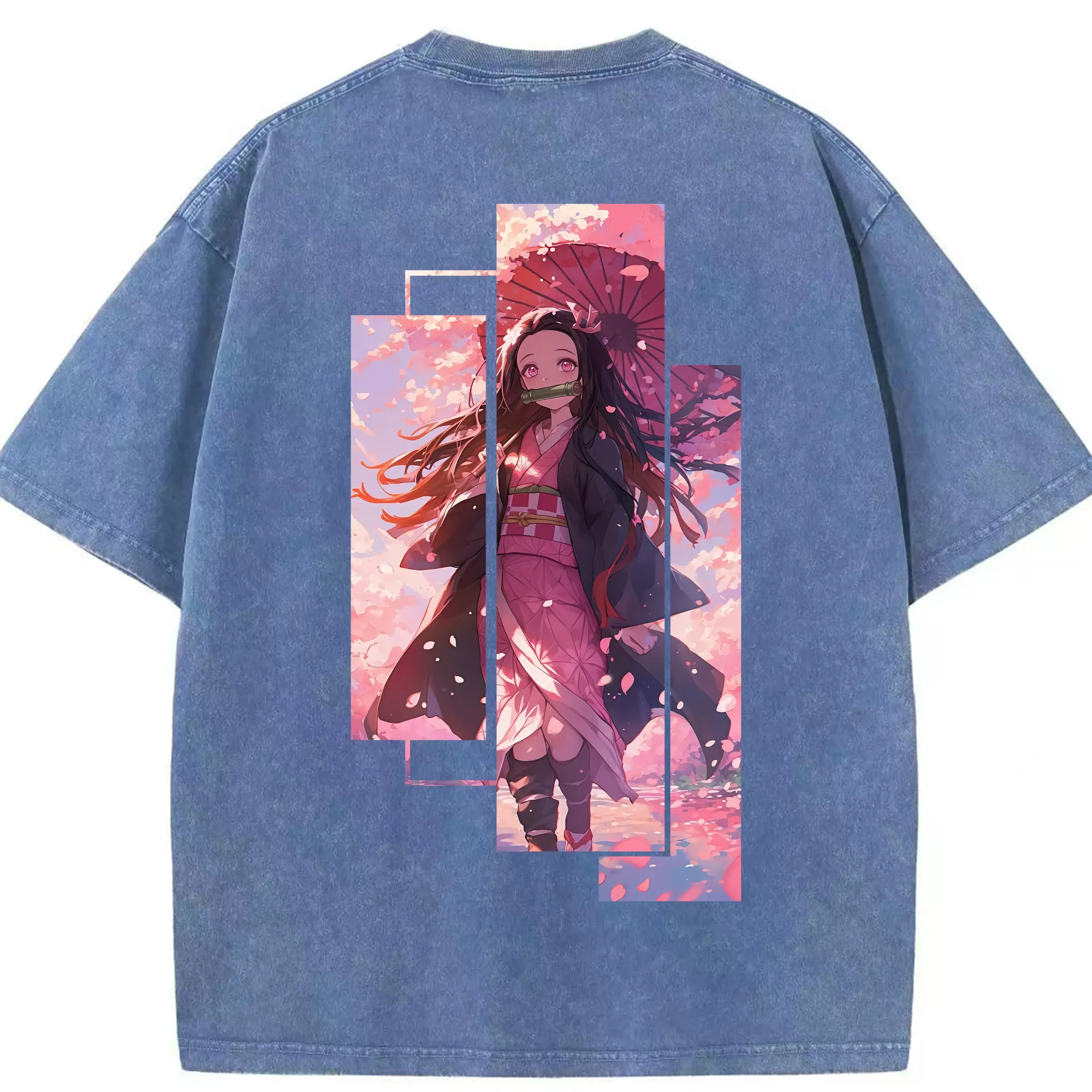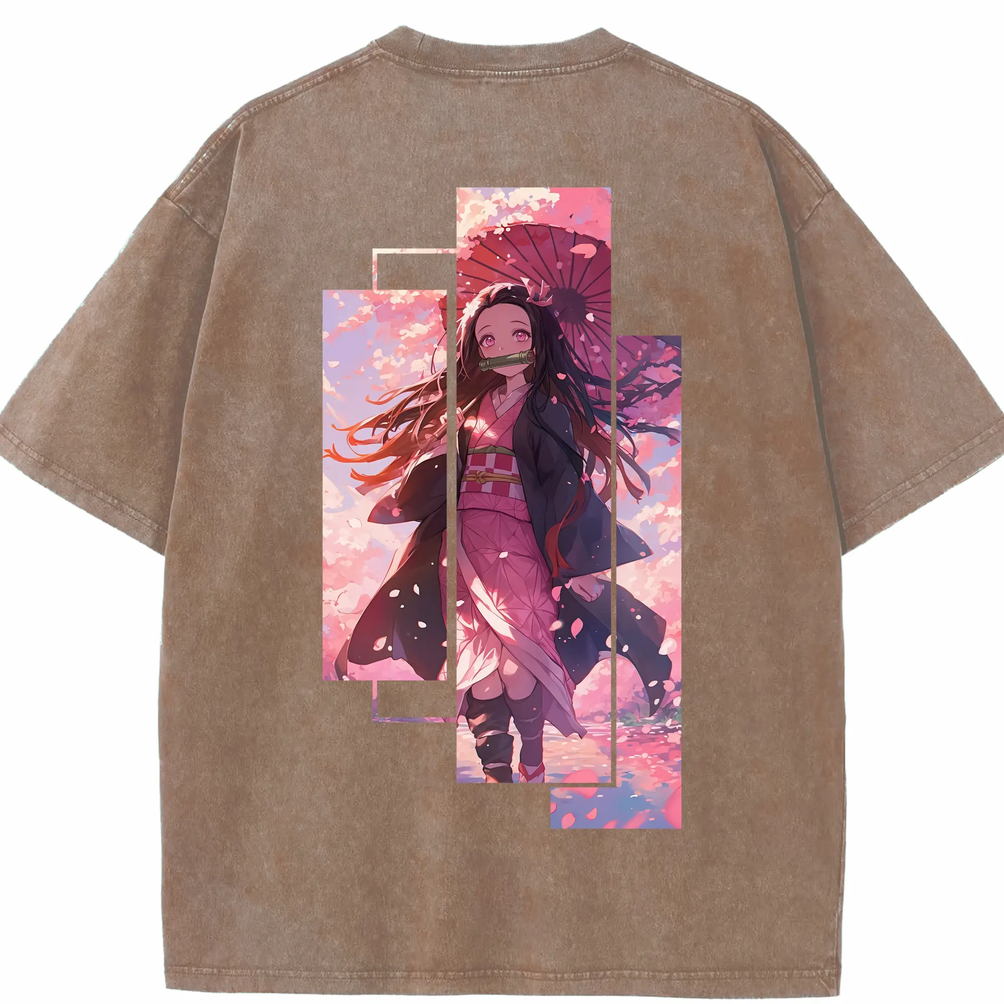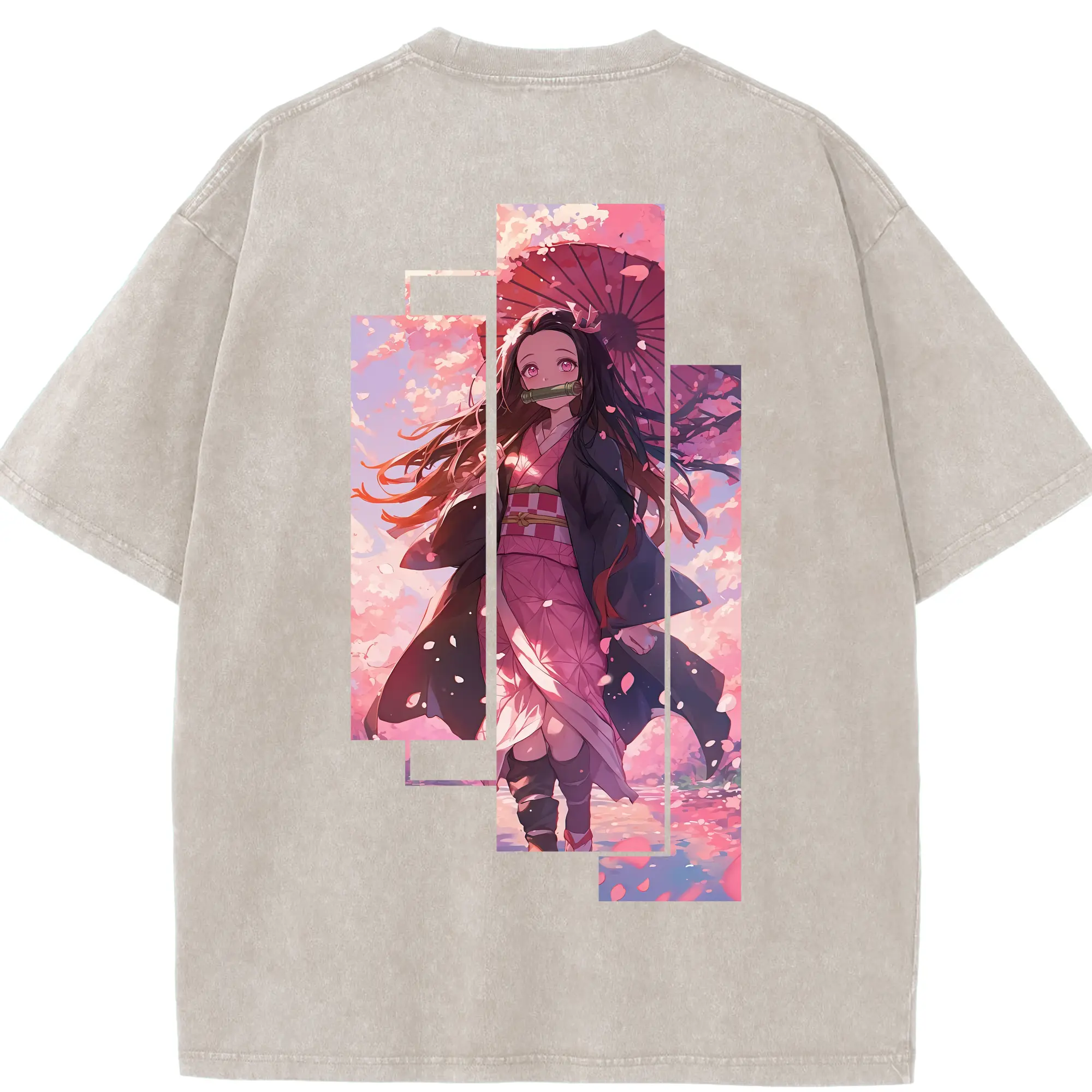鬼滅の刃 グッズ,甘露寺 蜜璃 - 綿100% ヴィンテージ風 半袖Tシャツ ・ 背面プリント ・ 柔らか肌触り ・ 通気性 快適 ・ スポーツ カジュアル 外出用