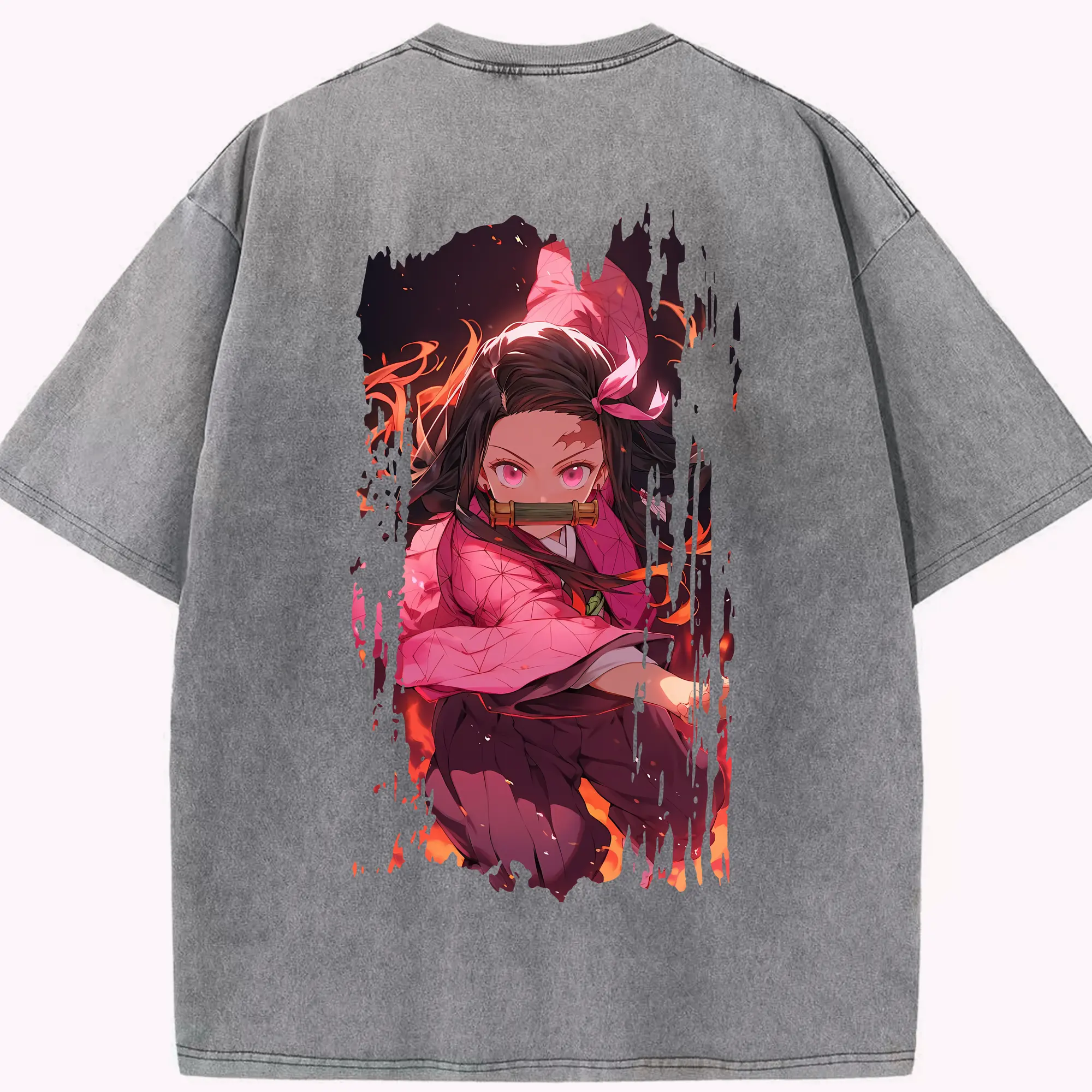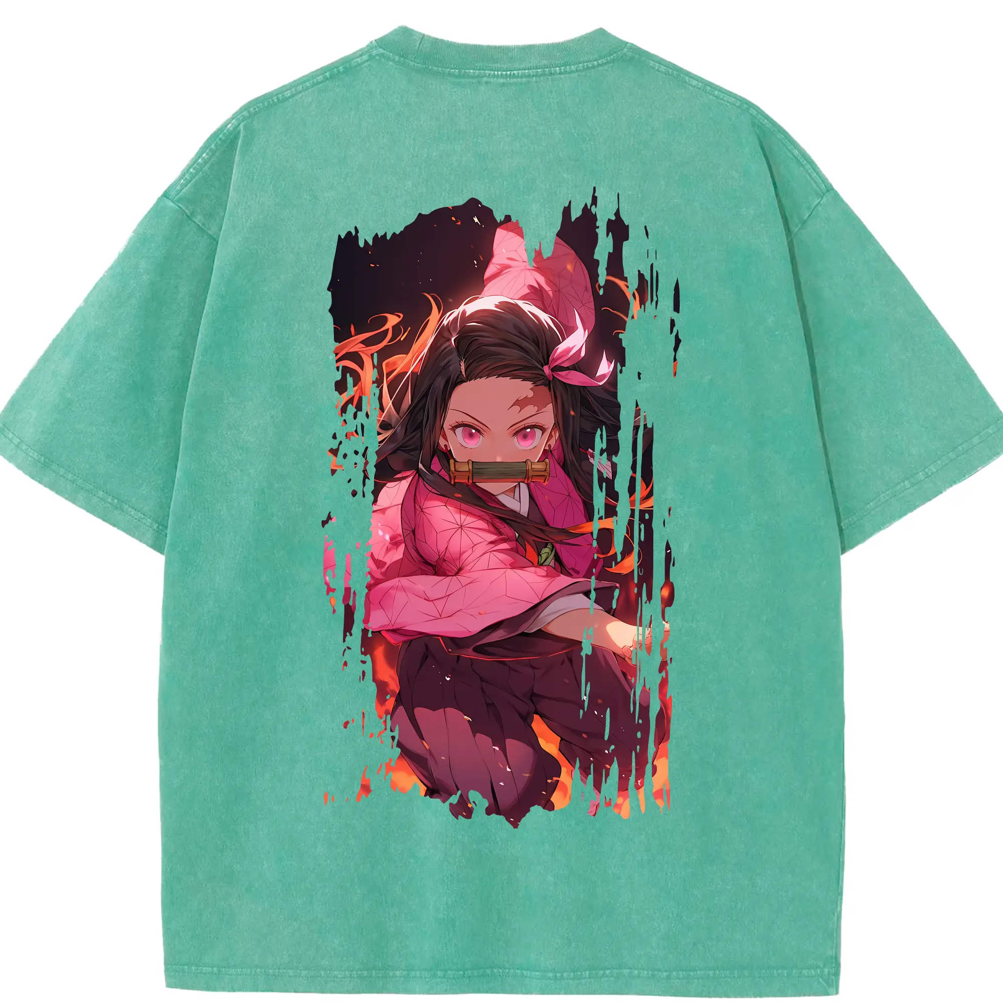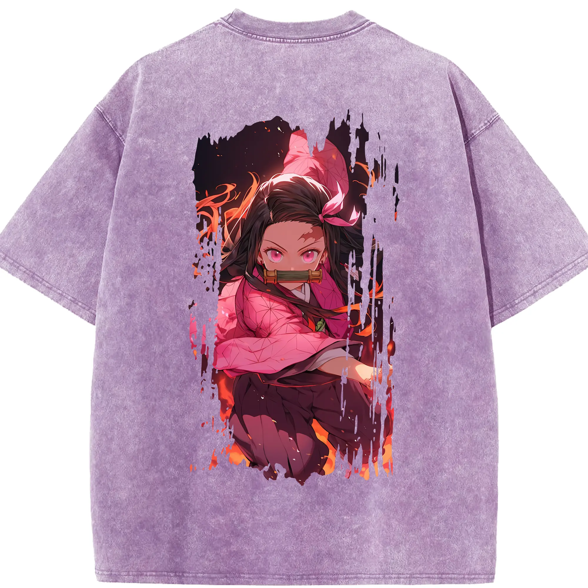 鬼滅の刃 グッズ,竈門 禰豆子 - 綿100% 半袖Tシャツ ・ バックプリント ・ 快適 通気性 ・ 日常使い 散歩 スポーツ用