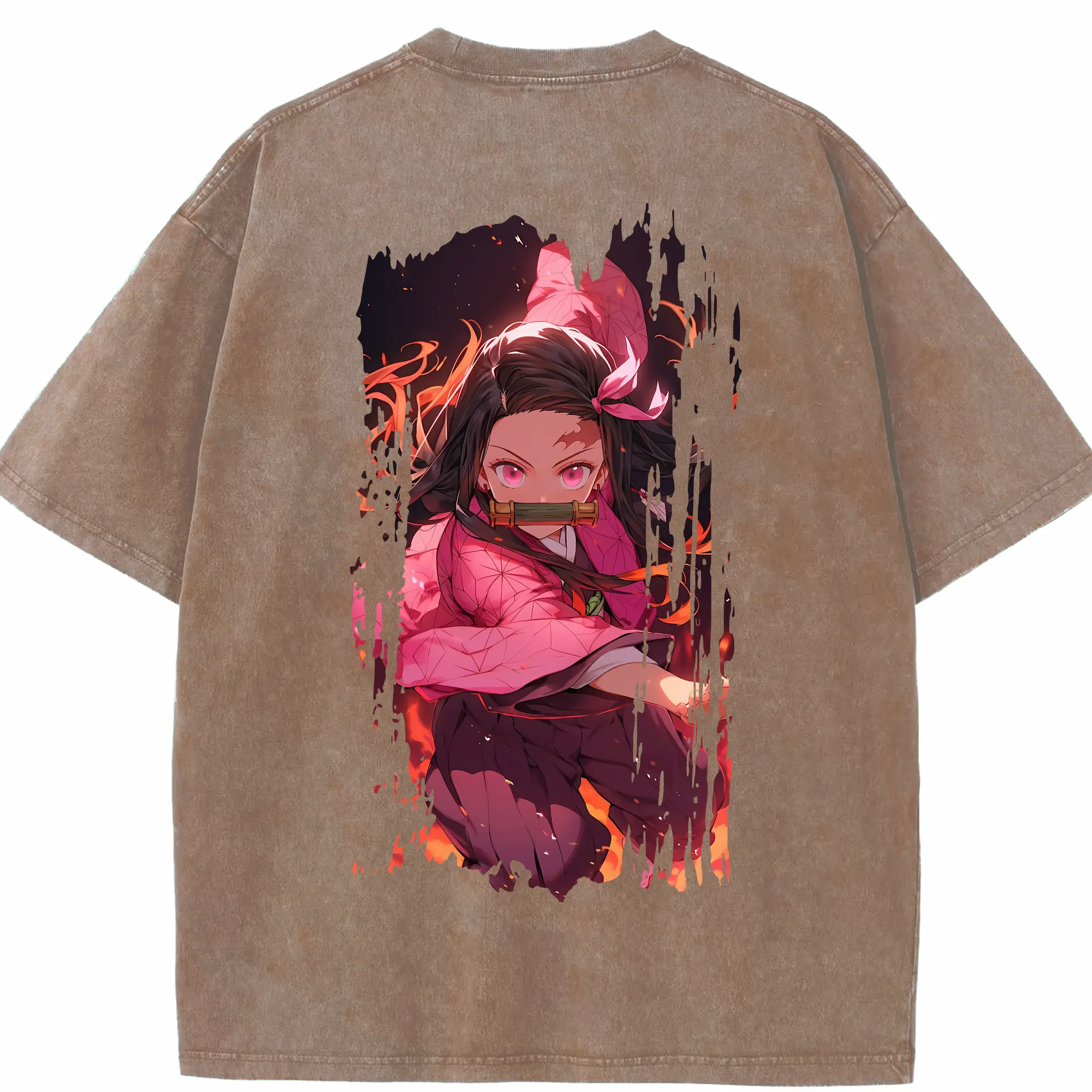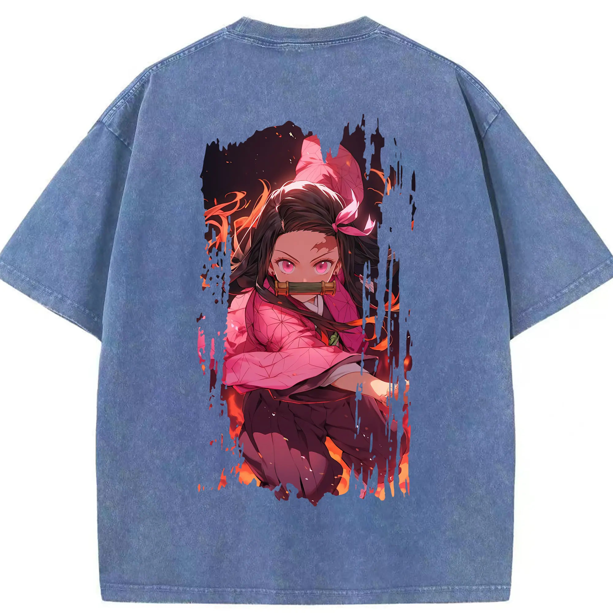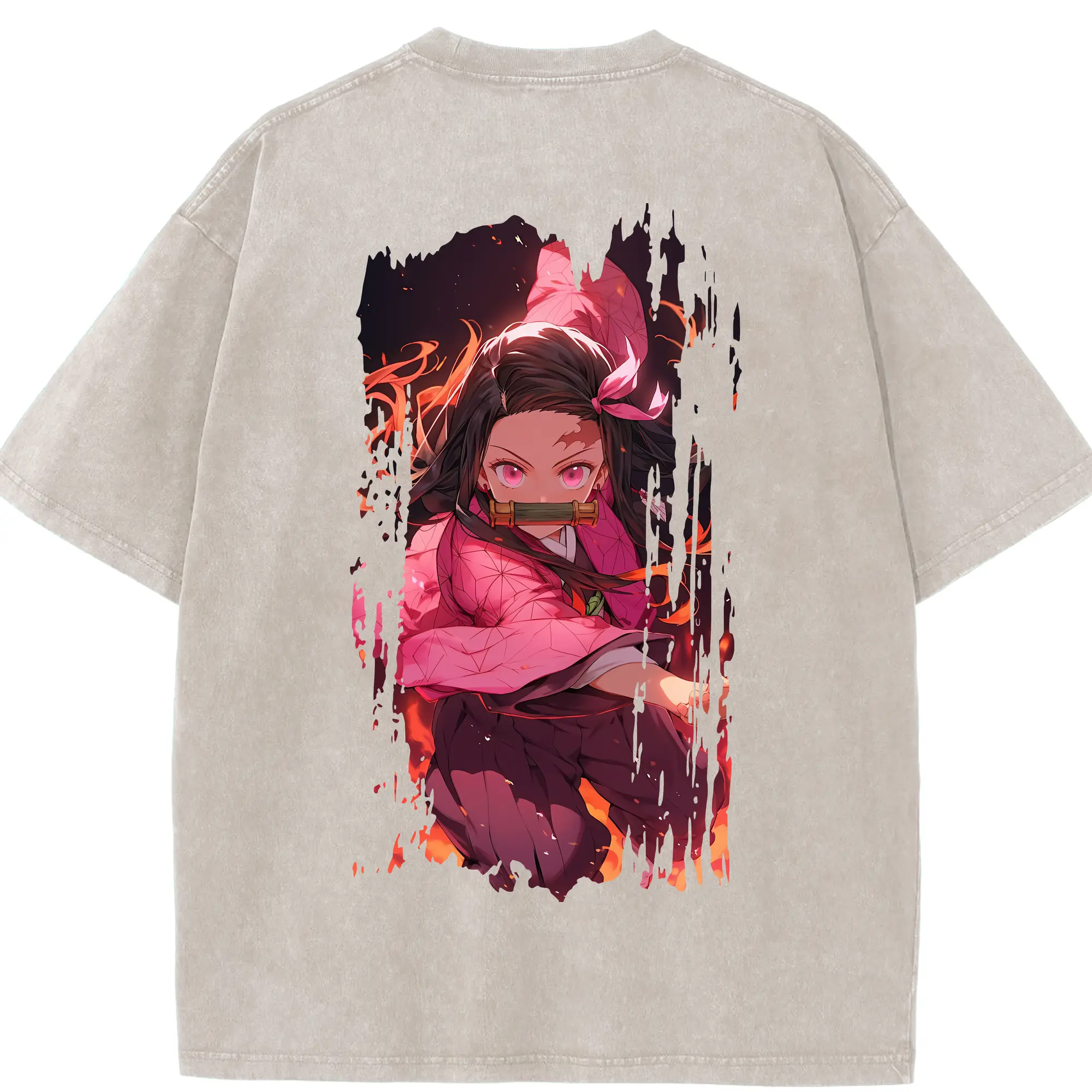 鬼滅の刃 グッズ,竈門 禰豆子 - 綿100% 半袖Tシャツ ・ バックプリント ・ 快適 通気性 ・ 日常使い 散歩 スポーツ用
