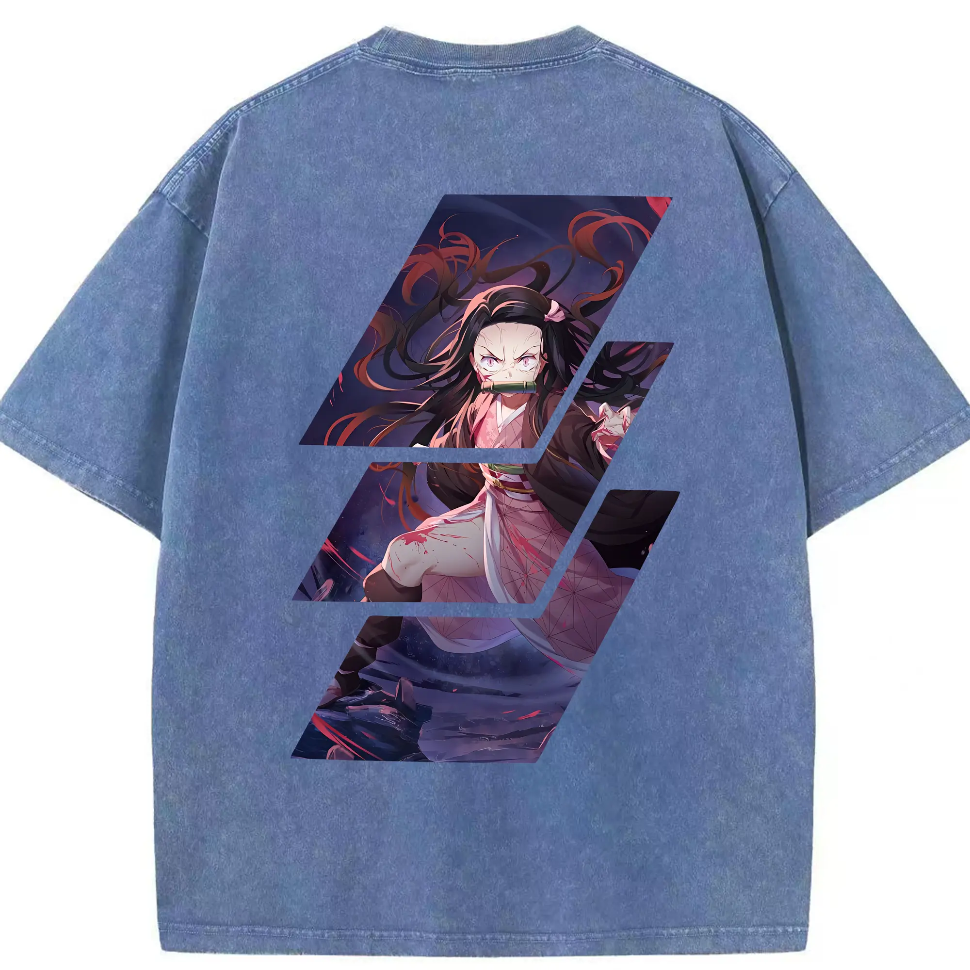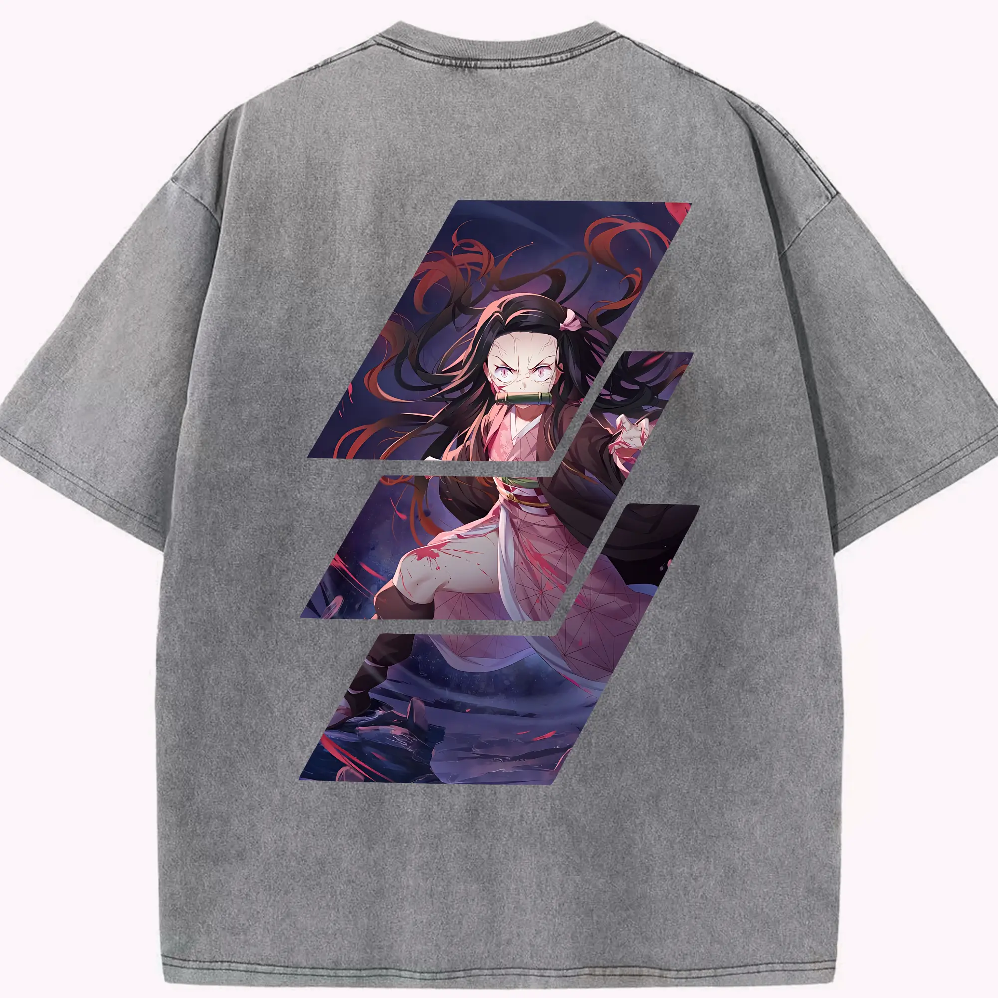鬼滅の刃 グッズ,竈門 禰豆子 - 綿100% 半袖Tシャツ ・ バックプリント ・ 快適 通気性 ・ 日常使い 散歩 スポーツ用