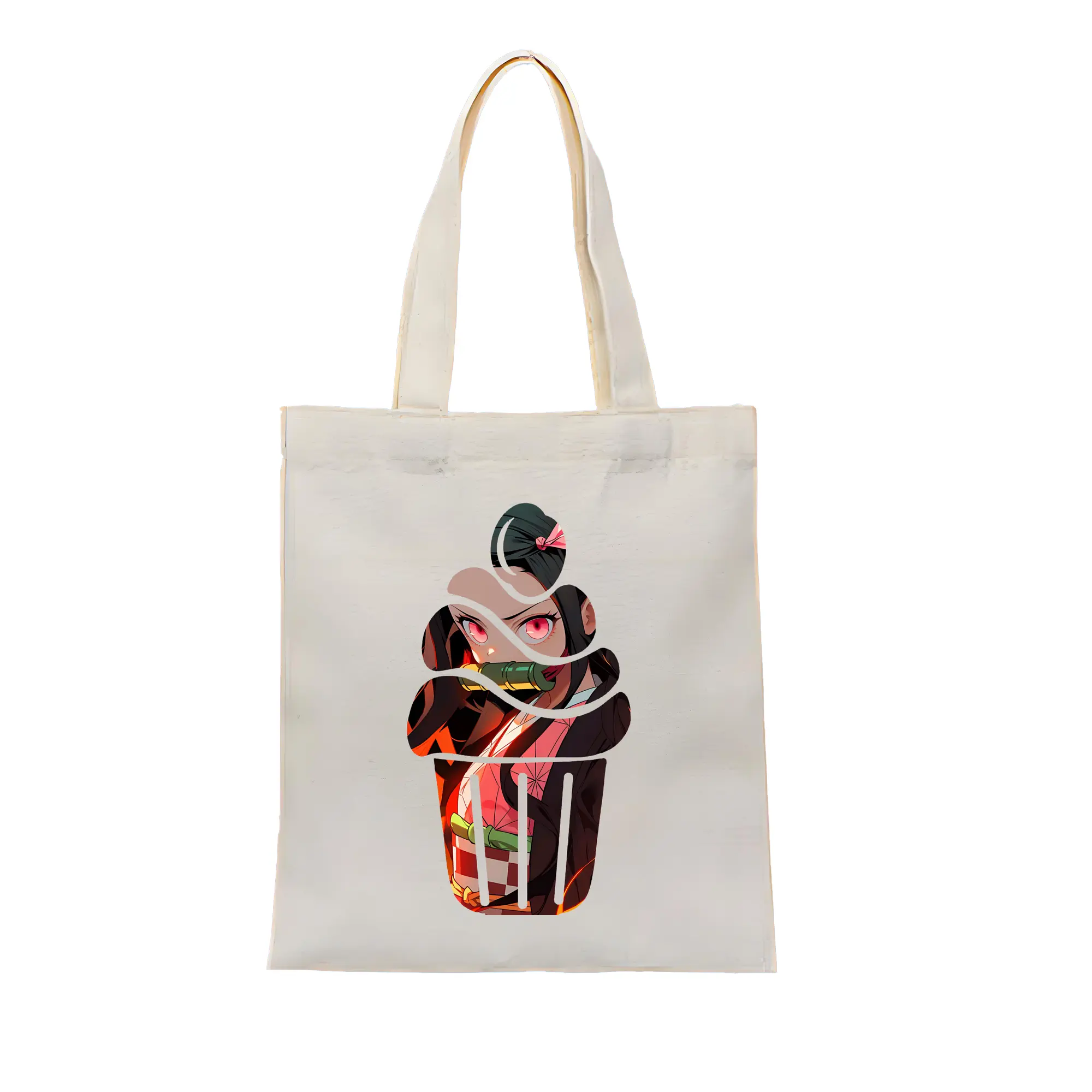 鬼滅の刃 グッズ,竈門 禰豆子 - 縦型キャンバス手提げバッグ(トートバッグ) ・ キャンバス素材 ・ ショッピング用 ・ 軽量 丈夫 お手入れ簡単