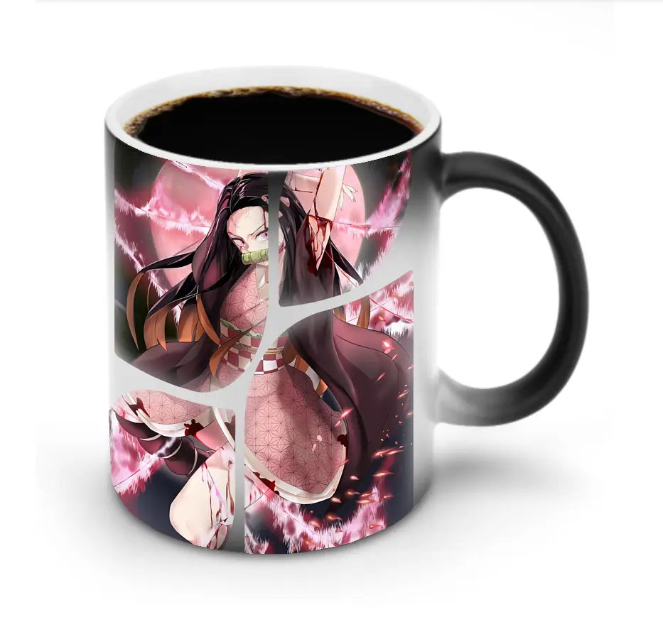 鬼滅の刃 グッズ,竈門 禰豆子 - 変色マグカップ ・ セラミック ・ 熱転写プリント ・ 耐久性 高品質 ・ ギフト・自宅用 コーヒー お茶