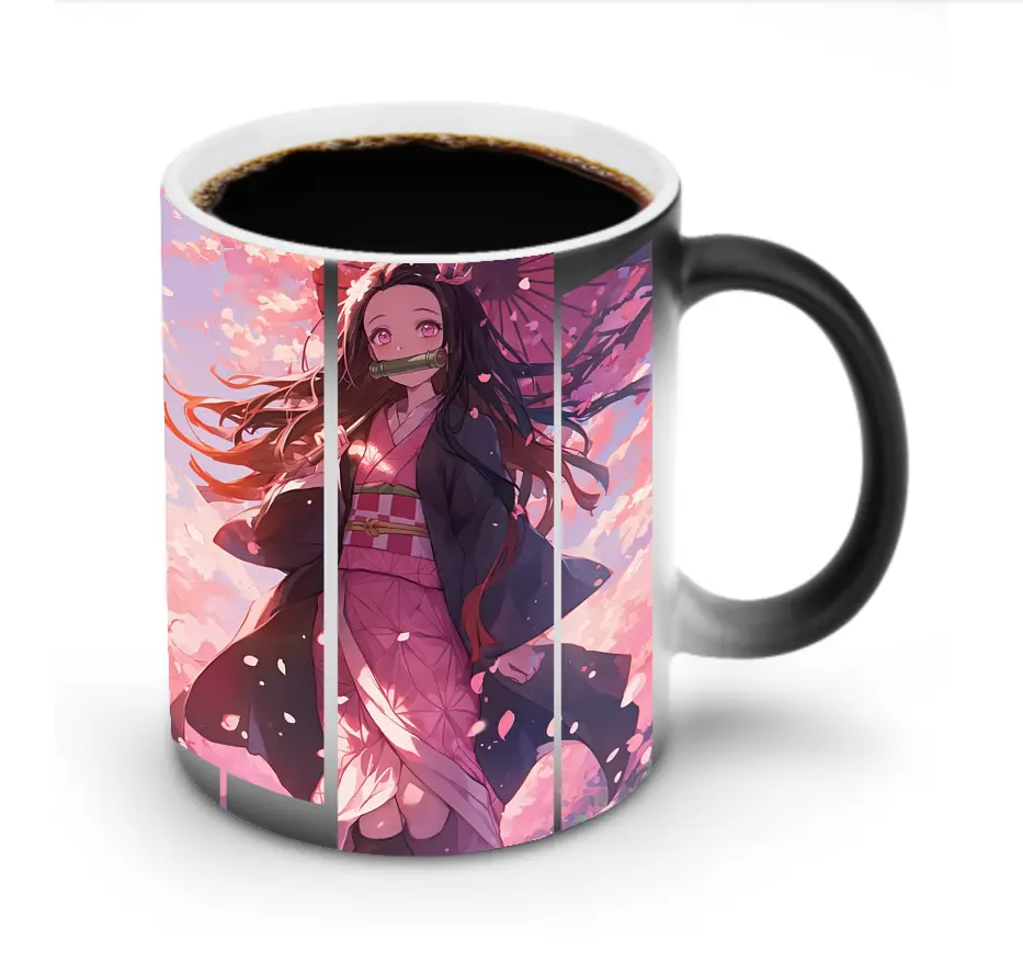 鬼滅の刃 グッズ,竈門 禰豆子 - 変色マグカップ ・ セラミック ・ 熱転写プリント ・ 耐久性 高品質 ・ ギフト・自宅用 コーヒー お茶