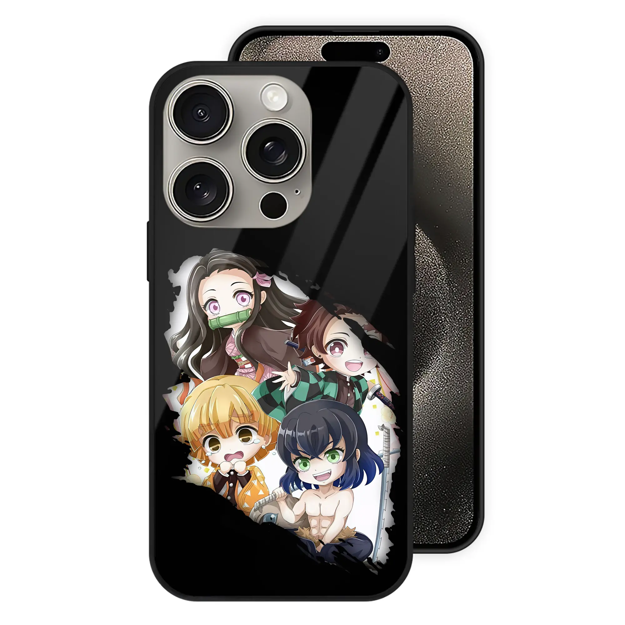 鬼滅の刃 グッズ,竈門 禰豆子 - IPhone15Pro対応 ・ スマホケース ・ 背面ガラス ・ TPU+強化ガラス ・ 耐衝撃 ・ 黄変防止 ・ ワイヤレス充電対応 ・ 3D立体ボタン
